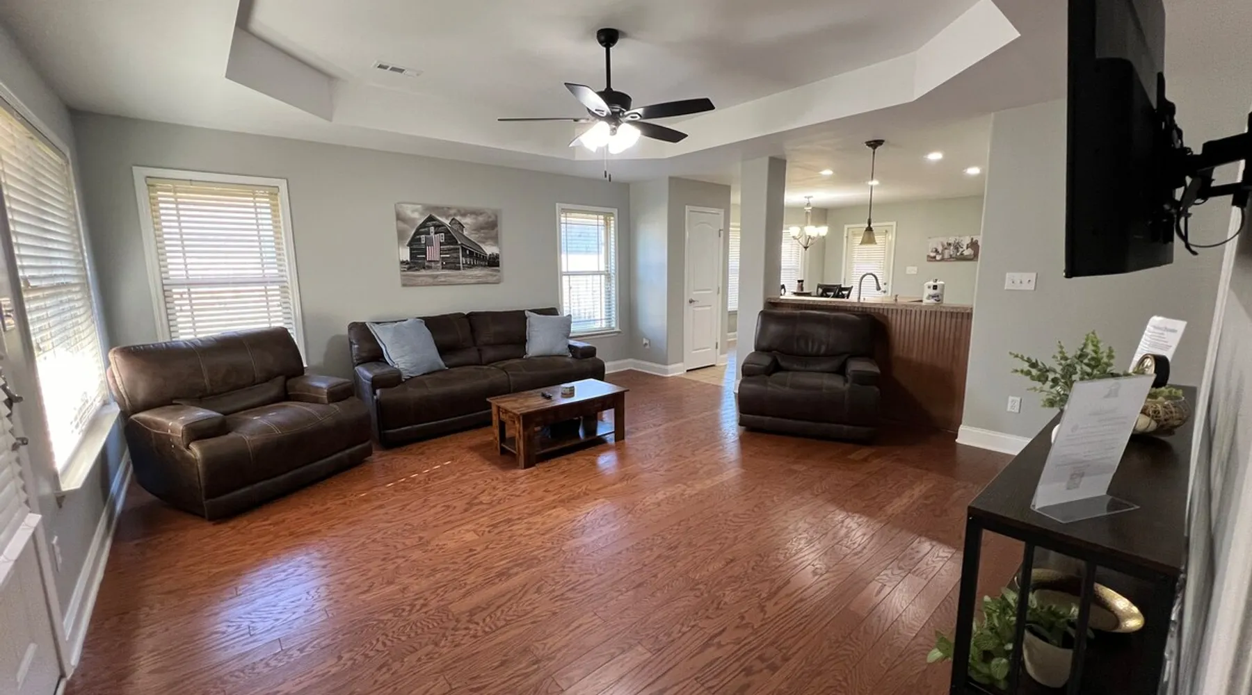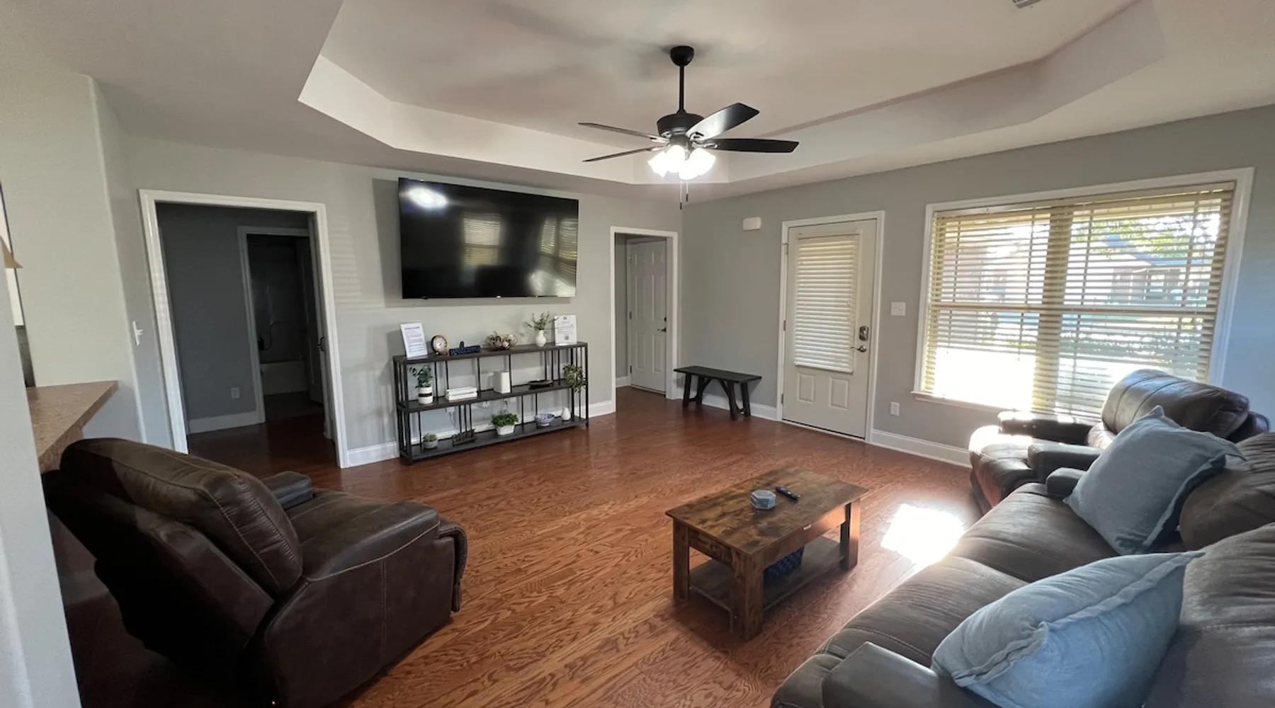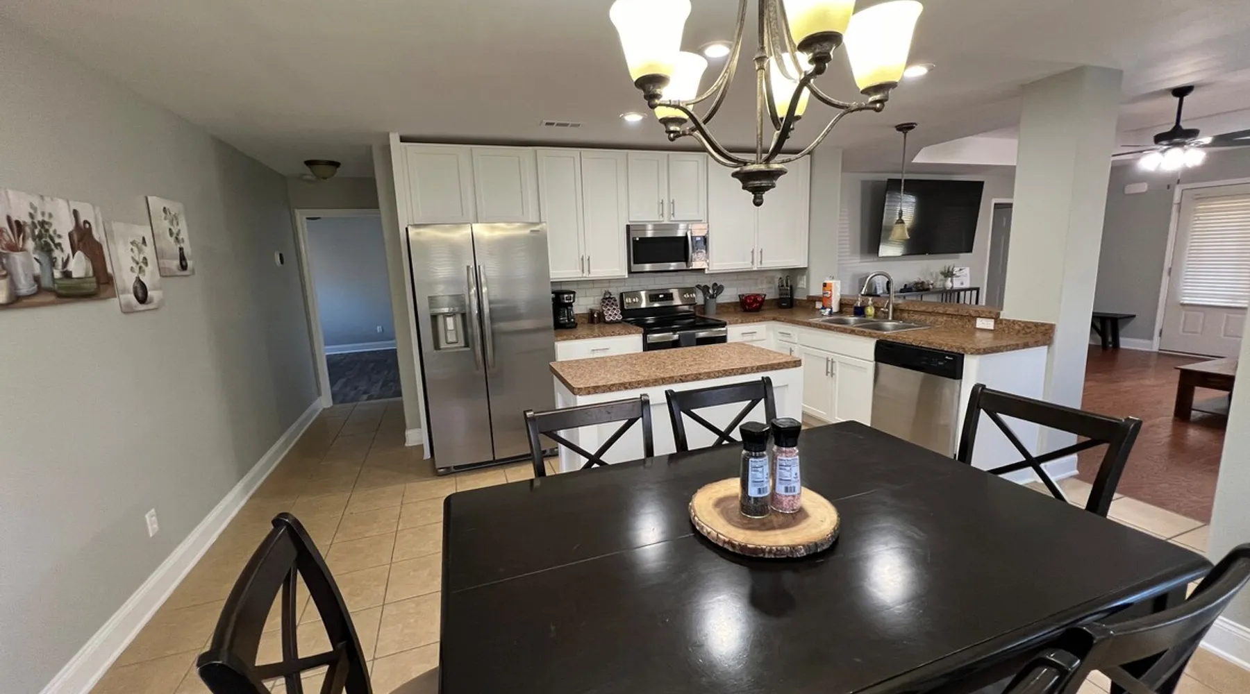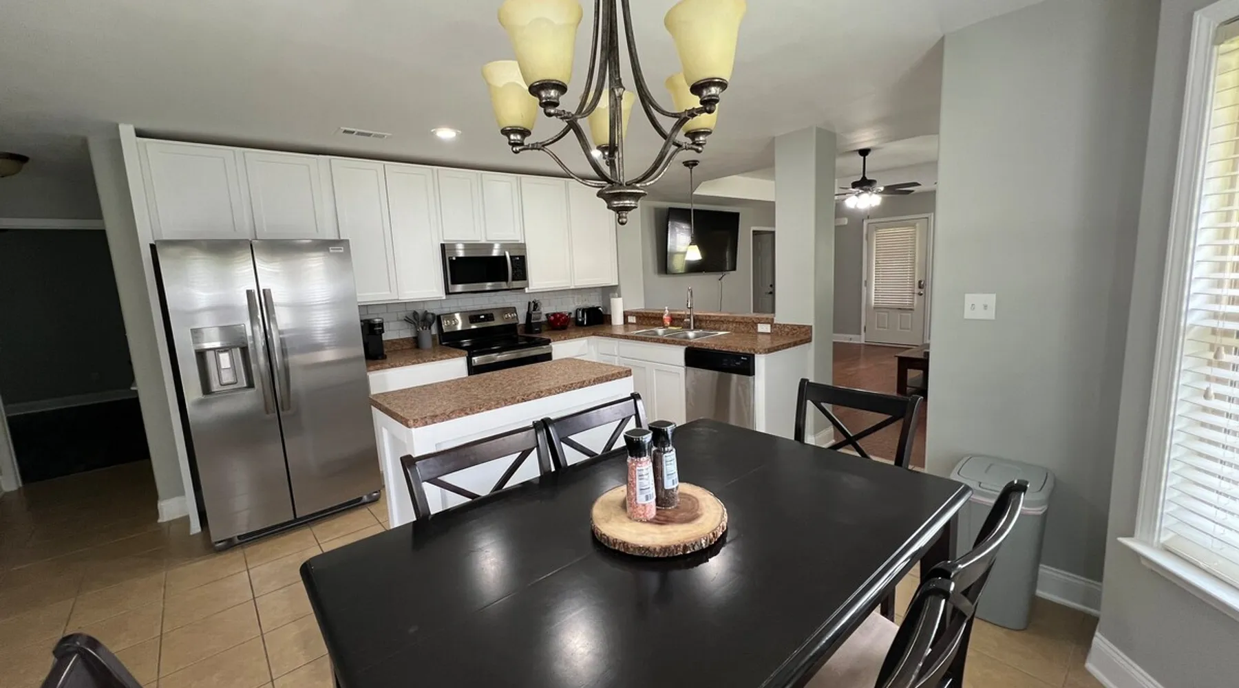 Welcome to our new, centrally located home in Huntsville, where comfort and convenience meet. Whether you're here for business or pleasure, our well-appointed 3-bedroom retreat is your ideal base for exploring all that the Rocket City has to offer! 4k TVs everywhere! 75" in the Den, 55" in the MBR, and 50" in the other bedrooms. Full length mirror in MBR. Hardwood, tile, & LVP - no carpet. Check out our other listings at: http://www.airbnb.com/h/hnt1 http://www.airbnb.com/h/hnt3 The space Step into this modern haven, thoughtfully designed to make your stay truly enjoyable. Our house features: + Three spacious bedrooms with brand new, comfortable queen and twin sized beds + A fully equipped kitchen with all the essentials for cooking and dining + A large and inviting living room with a 75" 4k smart TV (Roku) + High-speed WiFi to keep you connected and entertained + Two contemporary bathrooms with bathtubs / showers + In-house washer and dryer for your convenience Only minutes away from almost everything! 2.0 miles: Oakwood University 2.5 miles: Providence (dining, bars) 2.7 miles: Indian Creek Greenway North (walking trail) 3.2 miles: The MidCity District (Top Golf, Starbucks, High Point Climbing, The Camp - live music, Salt Factory Pub, and other shops and restaurants) 3.5 miles: The Orion Amphitheater 3.7 miles: Cummings Research Park 4.0 miles: The University of Alabama - Huntsville (UAH) 5.4 miles: Bridge Street Town Centre (shopping, cinema, restaurants) 5.7 miles: Redstone Arsenal Gate 9 Visitors Center 6.1 miles: Alabama A&M 6.4 miles: Downtown Huntsville 7.2 miles: Madison Hospital 7.7 miles: Huntsville Hospital 8.3 miles: John Hunt Park 8.5 miles: Trash Pandas Baseball at Toyota Field 8.7 miles: Town Madison (dining) 12.1 miles: Huntsville International Airport Groceries: 1.8 miles: Publix Super Market 2.5 miles: Walmart Supercenter 3.2 miles: Trader Joe's Guest access The entire house is yours to enjoy during your stay including the garage, providing you with the utmost privacy and comfort Other things to note We maintain a strict no-smoking policy. Pet-friendly; please inquire about our pet policy