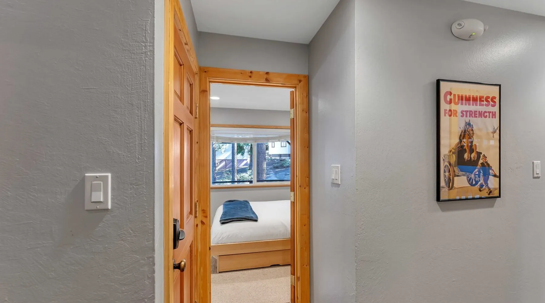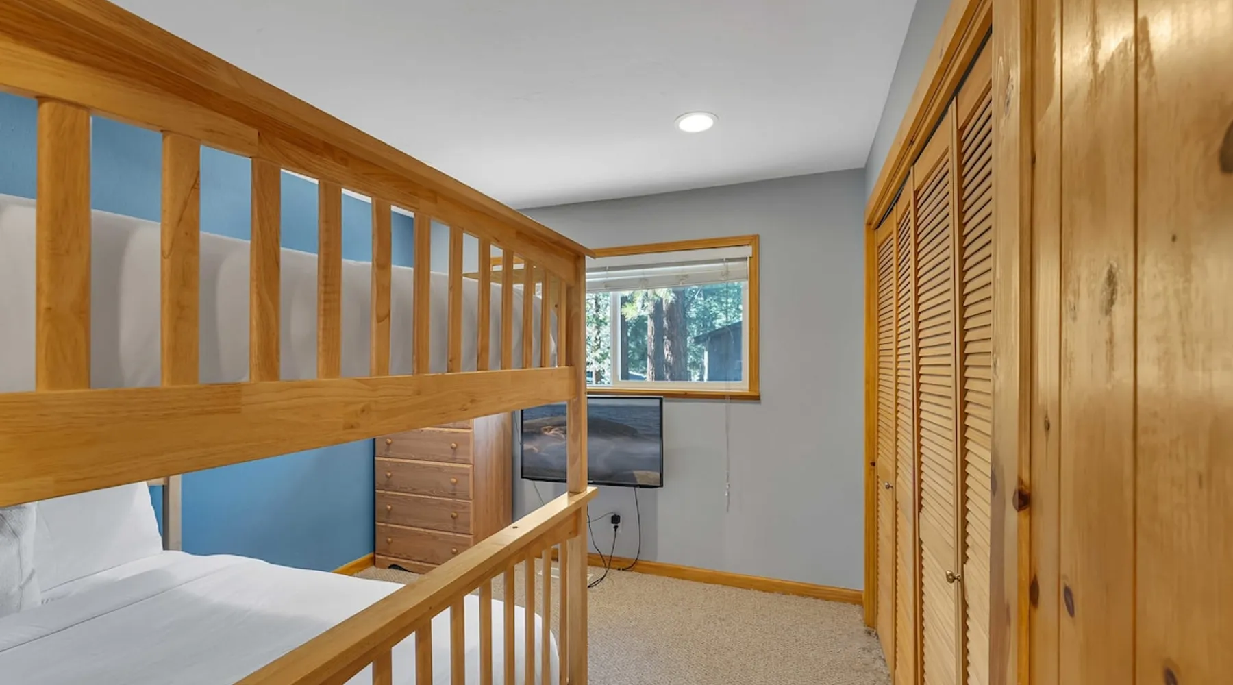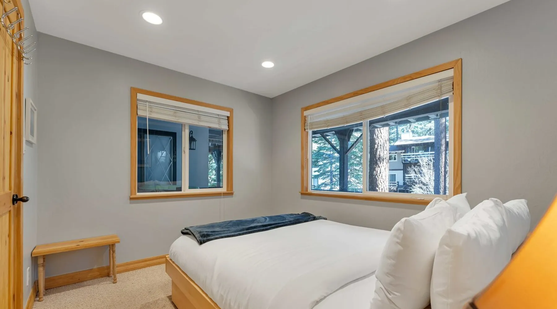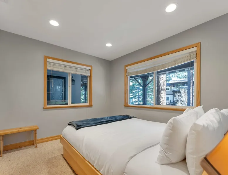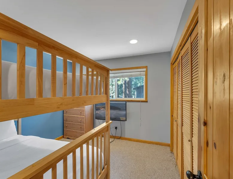 This charming 3-bedroom home is a cozy mountain retreat just 1 mile from Diamond Peak Ski Resort! In the beautiful Incline Village area, the home is surrounded by towering pines and places you minutes from the slopes and pristine beaches of north Lake Tahoe. Inside the home, you will be welcomed by a bright, spacious living/dining area, cozy bedrooms all on the lower level, and a deck with a private hot tub. This home is the ideal launching pad for your round fun in Tahoe! The space Location perks: Diamond Peak Ski Resort (1.1 miles), Incline Village Championship Golf Course (2.1 miles), Incline Flume Trailhead (4.8 miles), Crystal Bay (6.7 miles), Kings Beach (8.2 miles), Mt. Rose Ski Resort (11.3 miles), Northstar Ski Resort (14.6 miles) Interior: - Queen-size beds in all 3 bedrooms - Kitchen - 55” Smart TV with surround sound in the living room - Wood-burning fireplace (wood not provided) - Wall-mounted baby gate near top of stairs - Washer and dryer Exterior: - Deck - Private hot tub - BBQ - 1 assigned parking spot - Forested area - Mountain Views Upstairs: Living room, kitchen, full bathroom, access to deck Downstairs: 3 bedrooms, full bathroom, storage closet Tucked among the towering pines in the Incline Village area, this charming home is the perfect home base for endless outdoor adventures in the northern Tahoe area! The home features two levels of living space with the main living space on the upper floor. The living room and kitchen boast an open and social layout with windows all around that frame the beautiful views over the surrounding forest. French doors open up to the deck offering a great extension of living space where you can soak up the fresh mountain air while you relax on the comfortable outdoor chairs, or ease sore muscles in the hot tub. The home’s three bedrooms are all located downstairs so you can enjoy a quiet area to rest. All three of the bedrooms include queen-size beds for added comfort, with one of the rooms featuring a queen bunk bed and a trundle bed making for the perfect room for sharing. The home includes two bathrooms, one near the main living space, and one near the bedrooms, as well as a stacked washer and dryer. WC STR Permit: WSTR23-0050 Transient Lodging Tax License: W-5155 Max occupancy: 4 Bedrooms: 3 Beds: 4 Parking Spaces: 1 No street parking is permitted RE License Number: B.0146383 PM Number: PM.0168727 Guest access Guests will have access to the entire home, an upper-level deck with a private hot tub, and one assigned parking place located across the street from the home. Other things to note Please note that like most homes in the area, this home does not have A/C. Please keep in mind that if you plan to ski, you are responsible for verifying the ski resorts' opening and closing dates. Charcoal grills are strictly forbidden in this county and will result in a $1,500 citation if used, 4-wheel drive or 2-wheel drive tires with snow chains may be necessary for safe travel to this property, even if it hasn’t snowed in a few days. Registration details WSTR23-0050