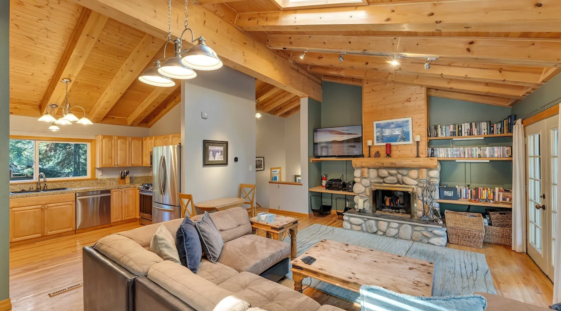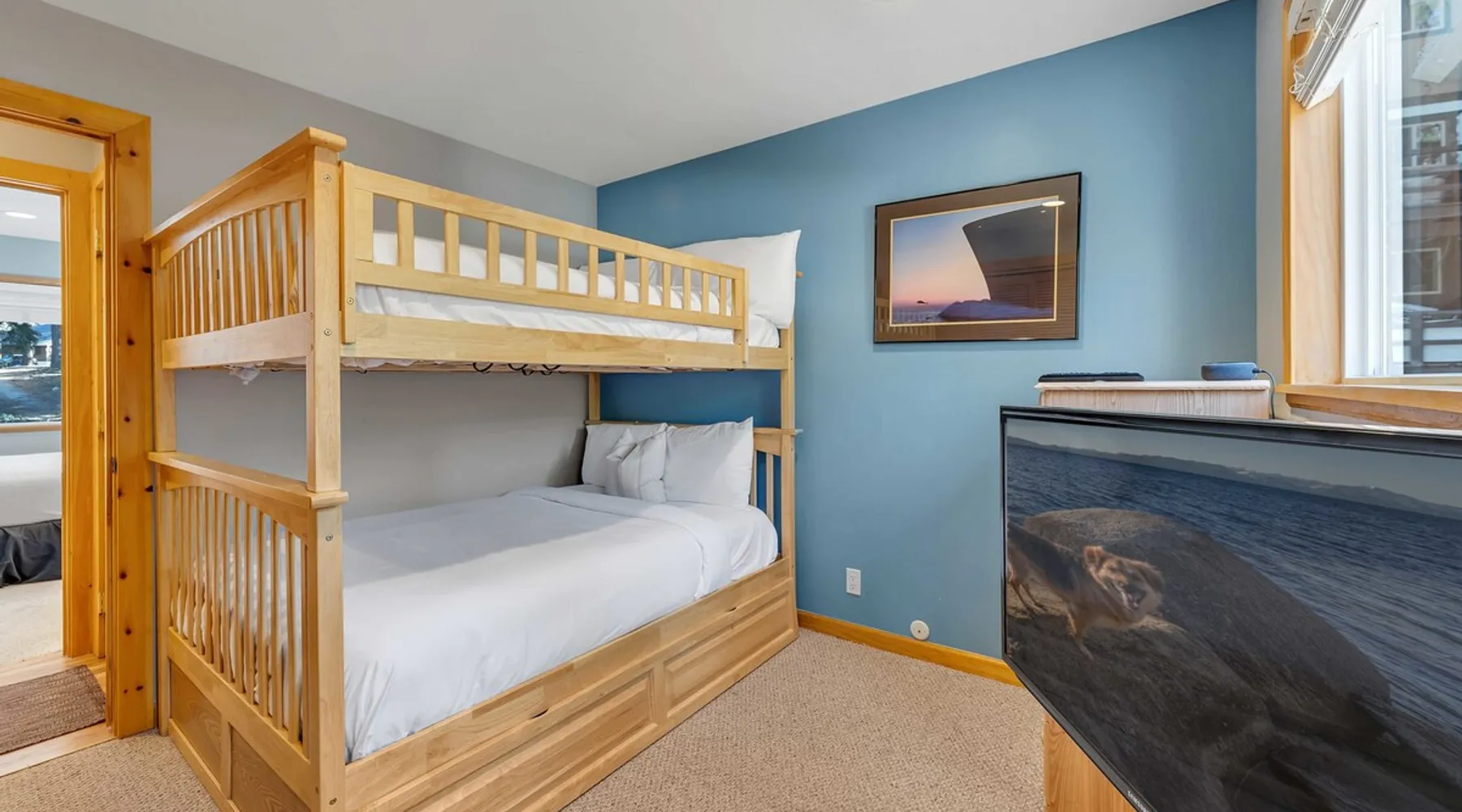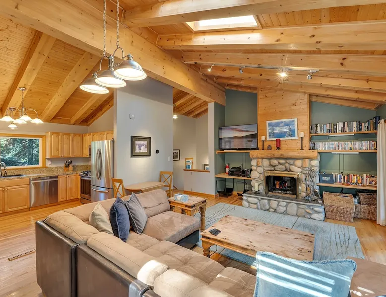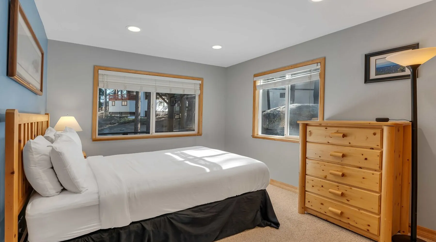 This charming 3-bedroom home is a cozy mountain retreat just 1 mile from Diamond Peak Ski Resort! In the beautiful Incline Village area, the home is surrounded by towering pines and places you minutes from the slopes and pristine beaches of north Lake Tahoe. Inside the home, you will be welcomed by a bright, spacious living/dining area, cozy bedrooms all on the lower level, and a deck with a private hot tub. This home is the ideal launching pad for your round fun in Tahoe! The space Location perks: Diamond Peak Ski Resort (1.1 miles), Incline Village Championship Golf Course (2.1 miles), Incline Flume Trailhead (4.8 miles), Crystal Bay (6.7 miles), Kings Beach (8.2 miles), Mt. Rose Ski Resort (11.3 miles), Northstar Ski Resort (14.6 miles) Interior: - Queen-size beds in all 3 bedrooms - Kitchen - 55” Smart TV with surround sound in the living room - Wood-burning fireplace (wood not provided) - Wall-mounted baby gate near top of stairs - Washer and dryer Exterior: - Deck - Private hot tub - BBQ - 1 assigned parking spot - Forested area - Mountain Views Upstairs: Living room, kitchen, full bathroom, access to deck Downstairs: 3 bedrooms, full bathroom, storage closet Tucked among the towering pines in the Incline Village area, this charming home is the perfect home base for endless outdoor adventures in the northern Tahoe area! The home features two levels of living space with the main living space on the upper floor. The living room and kitchen boast an open and social layout with windows all around that frame the beautiful views over the surrounding forest. French doors open up to the deck offering a great extension of living space where you can soak up the fresh mountain air while you relax on the comfortable outdoor chairs, or ease sore muscles in the hot tub. The home’s three bedrooms are all located downstairs so you can enjoy a quiet area to rest. All three of the bedrooms include queen-size beds for added comfort, with one of the rooms featuring a queen bunk bed and a trundle bed making for the perfect room for sharing. The home includes two bathrooms, one near the main living space, and one near the bedrooms, as well as a stacked washer and dryer. WC STR Permit: WSTR23-0050 Transient Lodging Tax License: W-5155 Max occupancy: 4 Bedrooms: 3 Beds: 4 Parking Spaces: 1 No street parking is permitted RE License Number: B.0146383 PM Number: PM.0168727 Guest access Guests will have access to the entire home, an upper-level deck with a private hot tub, and one assigned parking place located across the street from the home. Other things to note Please note that like most homes in the area, this home does not have A/C. Please keep in mind that if you plan to ski, you are responsible for verifying the ski resorts' opening and closing dates. Charcoal grills are strictly forbidden in this county and will result in a $1,500 citation if used, 4-wheel drive or 2-wheel drive tires with snow chains may be necessary for safe travel to this property, even if it hasn’t snowed in a few days. Registration details WSTR23-0050