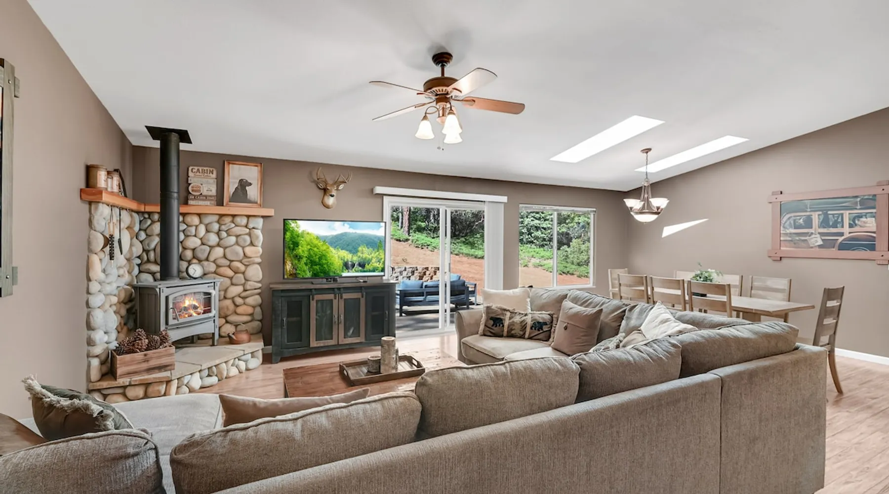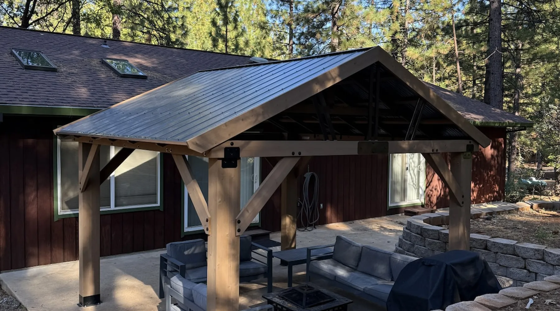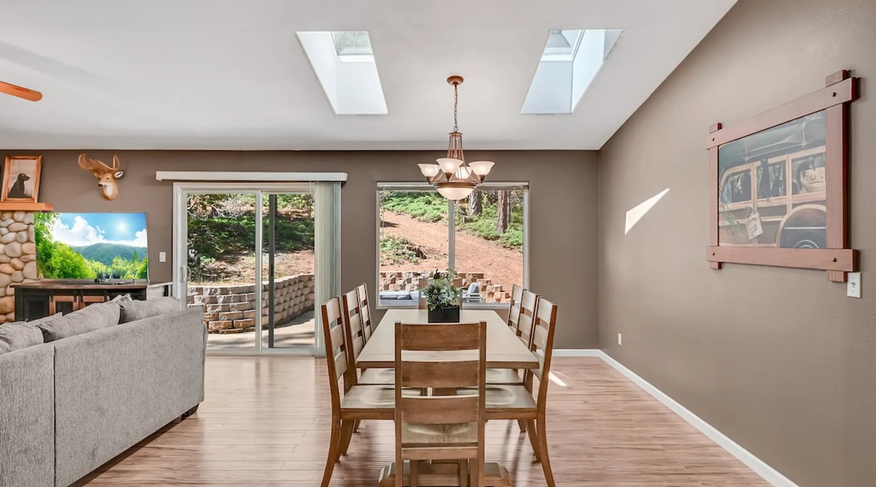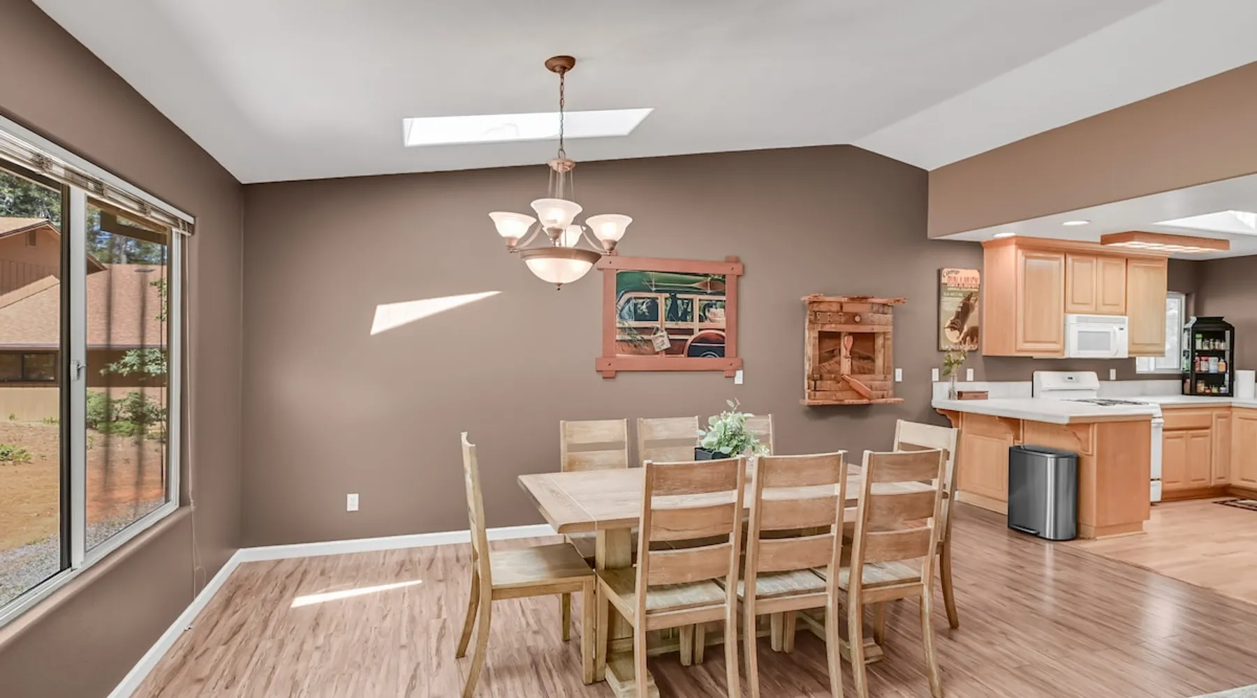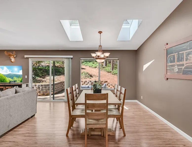 Welcome to our cozy mountain getaway in the heart of Arnold, California! Nestled among towering pines, our spacious 3-bedroom, 3-bathroom home offers the perfect blend of comfort and adventure for outdoor enthusiasts. → Fast internet → Modern appliances → Incredible back Patio w/outdoor seating → Smart TVs → Self check-in → King Bed → 15 mins to Calaveras Big Trees State Park → 30 mins to Columbia State Historic Park & Bear Valley (skiing) Add our listing to your Wishlist! The space Welcome to our cozy mountain getaway in the heart of Arnold, California! Nestled among towering pines, our spacious 3-bedroom, 3-bathroom home offers the perfect blend of comfort and adventure for outdoor enthusiasts. Whether you're here for hiking, skiing, fishing, or simply to unwind in nature, you'll find everything you need for a memorable stay. The Space: Bedrooms: Three beautifully furnished bedrooms, each designed for a restful night's sleep. The master suite features a King-sized bed, ensuite bathroom. The second bedroom has a queen-sized bed, and the third bedroom is perfect for kids or friends with queen bunk beds. Bathrooms: Three full bathrooms stocked with plush towels and essential toiletries. Enjoy a relaxing soak in the master bathroom’s jetted tub after a day of adventure. Living Area: The spacious living room boasts comfortable seating, a fireplace, and large windows that let in plenty of natural light and offer stunning forest views. Kitchen: A fully equipped kitchen with modern appliances, perfect for preparing hearty breakfasts before hitting the trails or cozy dinners after a day on the slopes. Dining: A dining area with seating for eight. Outdoor Amenities: Deck: A large, wrap-around deck with outdoor seating, and breathtaking views of the surrounding forest. It's the perfect spot for morning coffee or evening stargazing. Fire Pit: Gather around the outdoor fire pit to share stories and roast marshmallows under the stars. Location: Our home is ideally located for outdoor enthusiasts: Hiking & Biking: Explore the numerous trails in Calaveras Big Trees State Park, just a short drive away. Skiing: Bear Valley Ski Resort is a 30-minute drive, offering excellent slopes for all skill levels. Fishing & Boating: White Pines Lake and New Melones Reservoir are nearby, perfect for fishing, kayaking, and swimming. Golf: Enjoy a round of golf at the Sequoia Woods Country Club, just minutes from the house. Additional Features: Wi-Fi & Smart TV: Stay connected with high-speed internet and unwind with your favorite shows on the Smart TV. Laundry: Full-size washer and dryer for your convenience. Parking: Ample parking for up to four vehicles. Book your stay at our Arnold retreat and immerse yourself in the natural beauty and outdoor adventures that make this area a true gem. We look forward to hosting you and making your trip unforgettable! Guest access You'll have access to the entire property Other things to note Some bears frequent the area, pls be mindful of trash. We arent allowed to supplement fire wood (per our insurer), if you purchase wood (one bundle) we are happy to reimburse you for the costs. Reservations may be subject to extra guest fees, as well as additional charges for optional services such as adding pets or requesting early check-ins. We do have cameras around property for safety but none of them which would affect guests privacy.