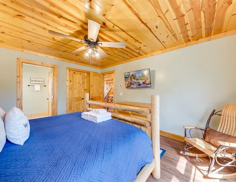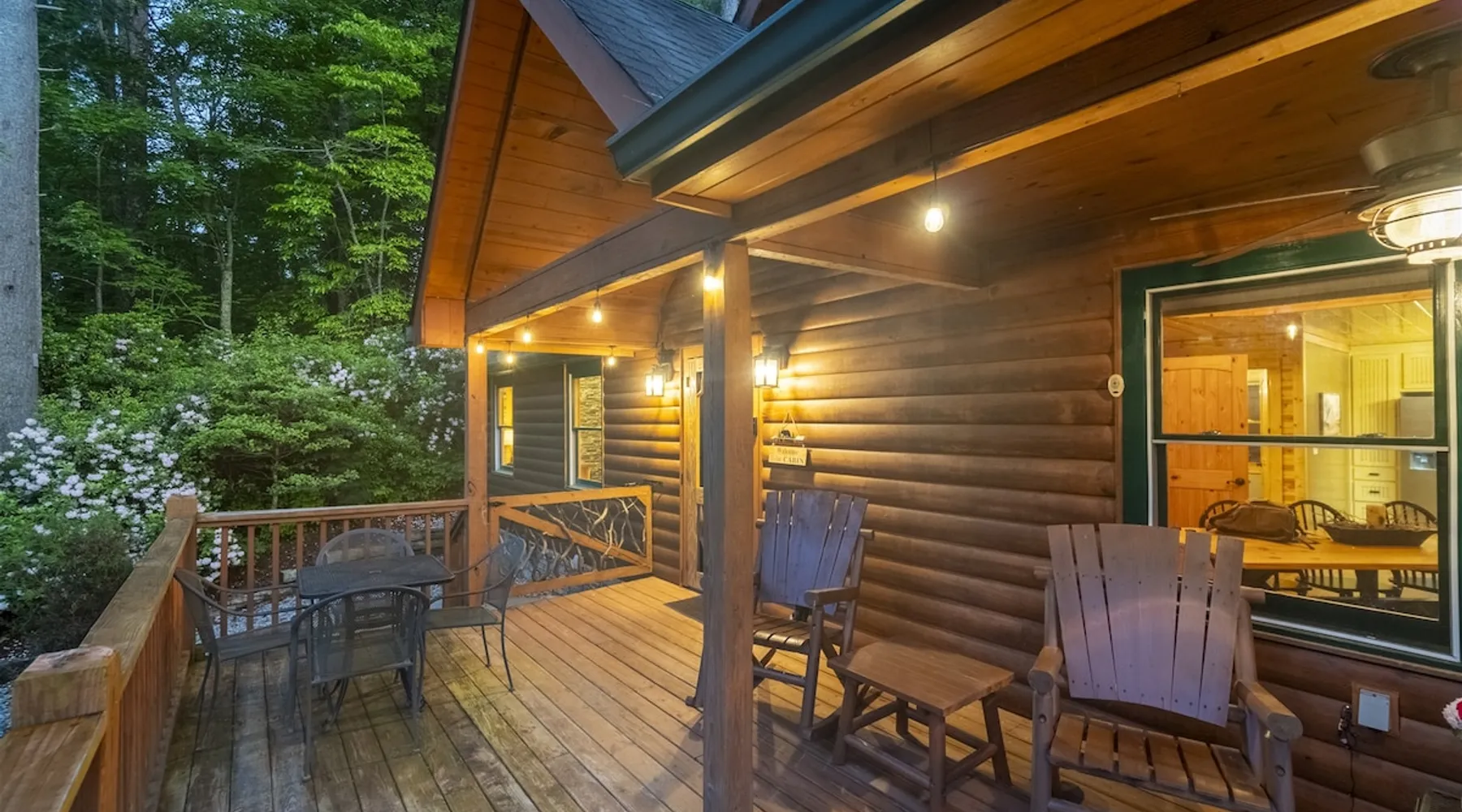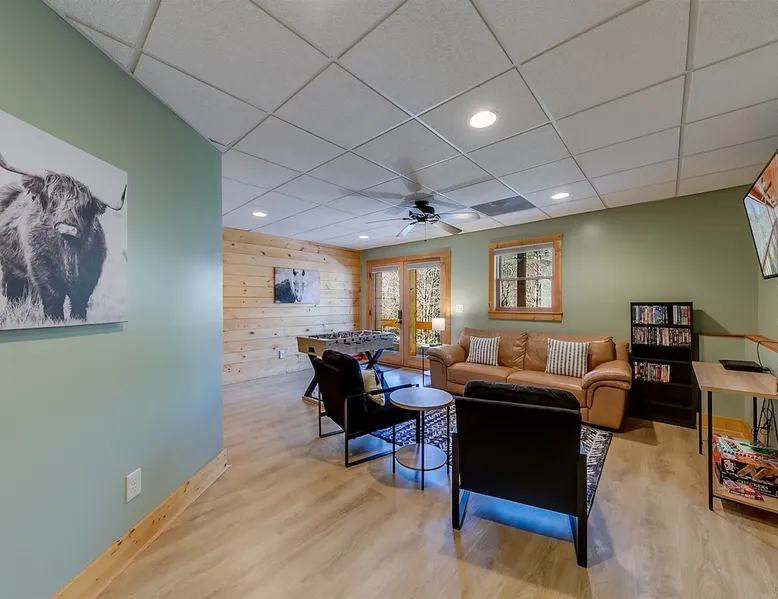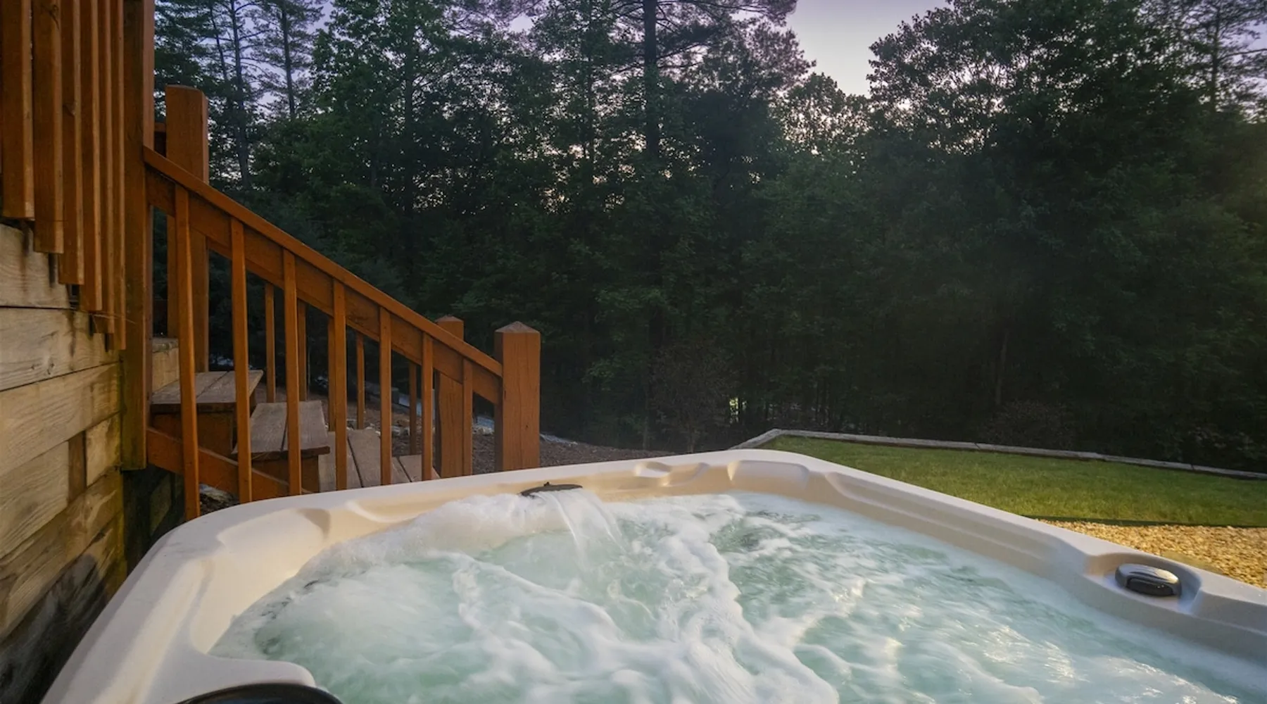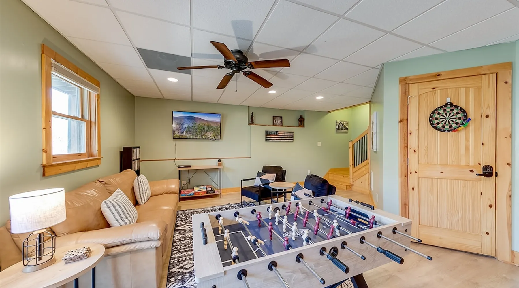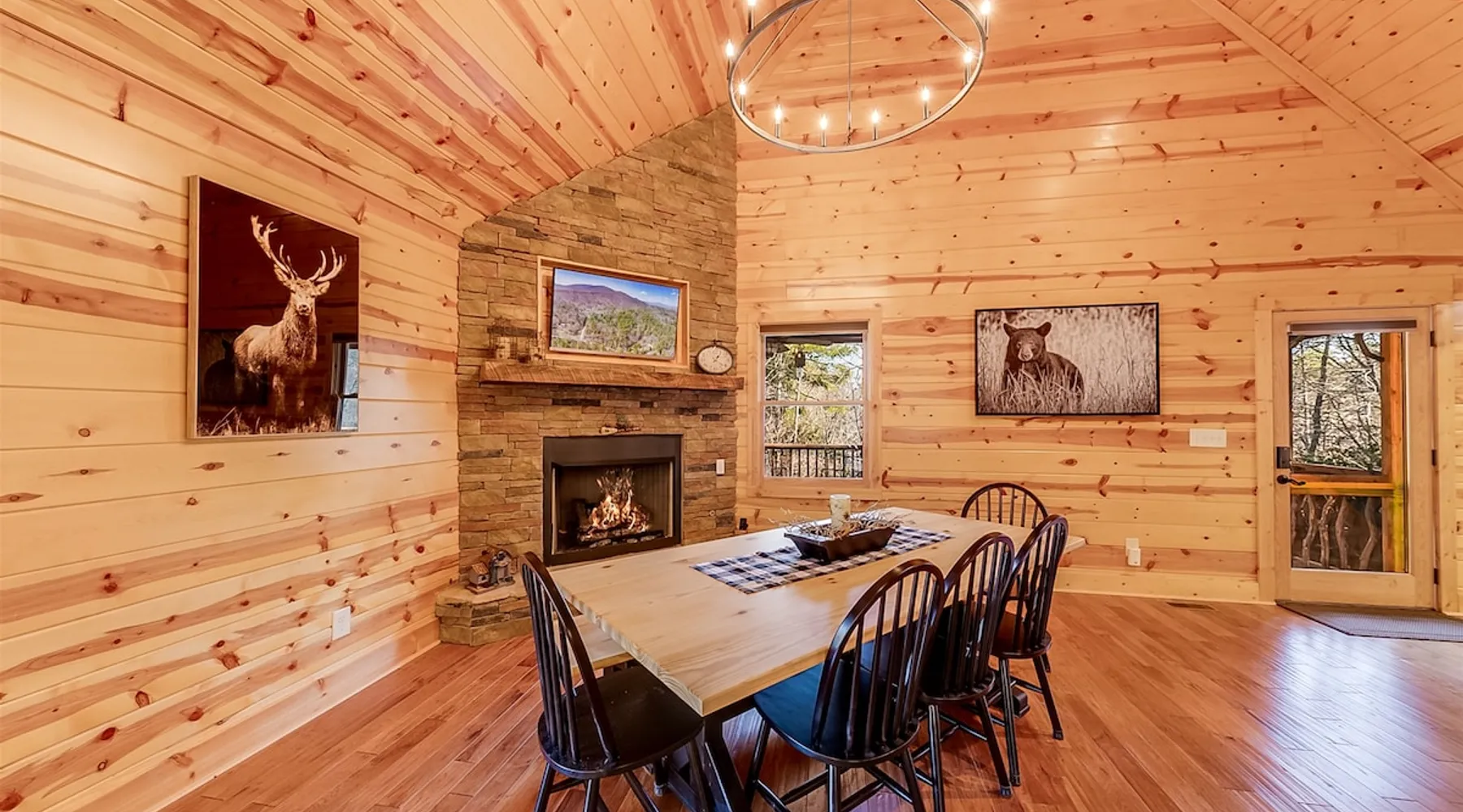 4 Bed/3 Bath - Beautiful & Secluded with Hot Tub, Game Room, Fire Pit & Easy Access to Downtown Helen The space “Hilltop Haven” is a secluded rustic cabin with a hot tub located North of Helen near Richard Russell Scenic Hwy and Smithgall Woods Park & less than 2 miles from the fun & exciting center of Helen, GA. This 3 level 4 bedroom, 3 bathroom cabin has a great bedroom layout and is thoughtfully decorated with many custom furniture pieces throughout. The fully-stocked kitchen with granite countertops and stainless steel appliances has everything needed to enjoy a home-cooked meal. In the living area it boasts a gas log fireplace, gorgeous vaulted ceilings and a 55 inch Smart TV. On the terrace level you will find an area that adults and children alike will enjoy! There is aone bedroom Queen with bunk beds and a game room with Foosball Table and Dart Board. This area leads out to the Cozy Outdoor Fire Pit with Four Adirondack Chairs, 2 benches and an Outdoor Swing. Main Level of the home has two bedrooms with Queen Beds, , a shared hall bath, kitchen, living area, and access to the Gas Grill, Beverage Cooler and open air deck with multiple seatings areas enjoy al fresco dining. The ornate staircase from the main level leads up to the Primary Bedroom with a King Bed, Large Bathroom with Shower, Soaking Tub & Vanity. Boat and tubing rentals are a short drive away to explore the Chattahoochee River or enjoy a day to explore the local vineyards and wineries. With so much to see and do in the area you will want to come back year after year! Things to Know: • 25+ age requirement for lead guest. No exceptions. • This property is not pet-friendly. No exceptions. • Digital rental agreement will be required to sign and complete after property is booked. • Firewood not supplied. Firewood not allowed in the gas fireplace. *Please be aware there are outdoor cameras and a Ring Doorbell camera at the front door.