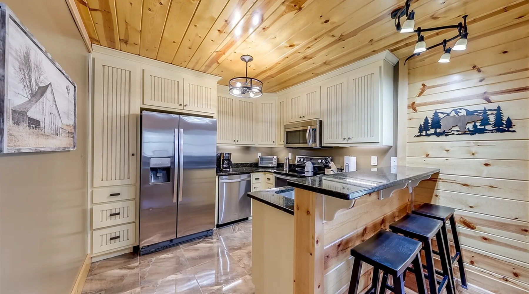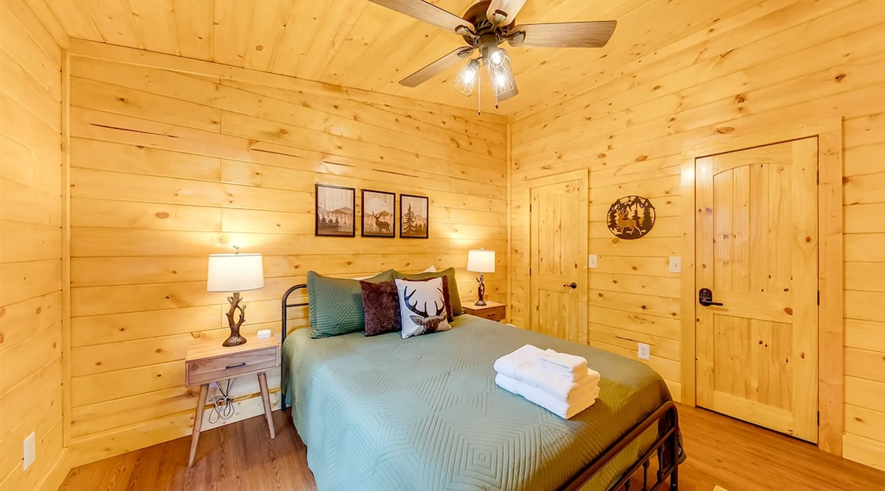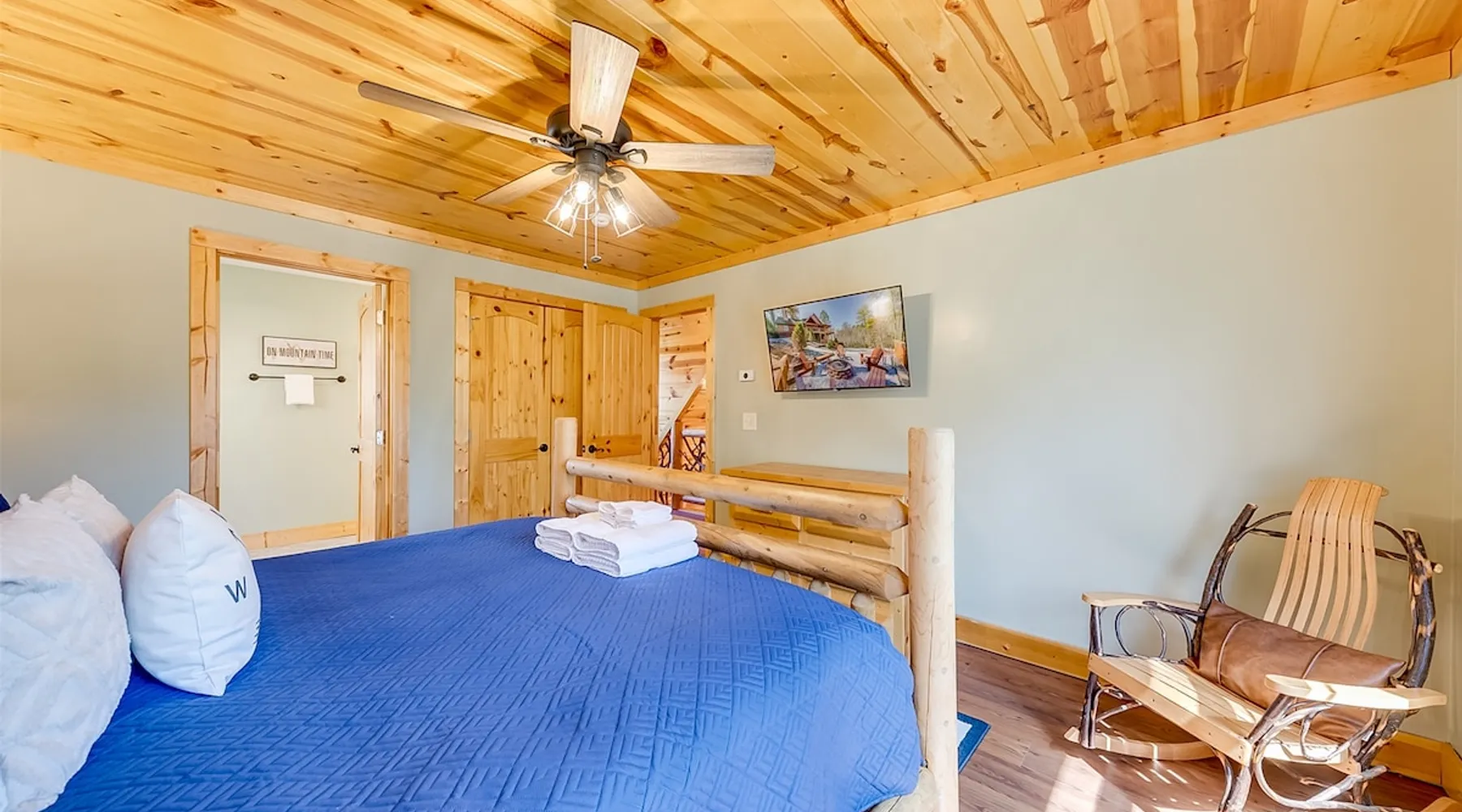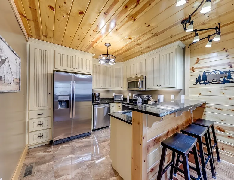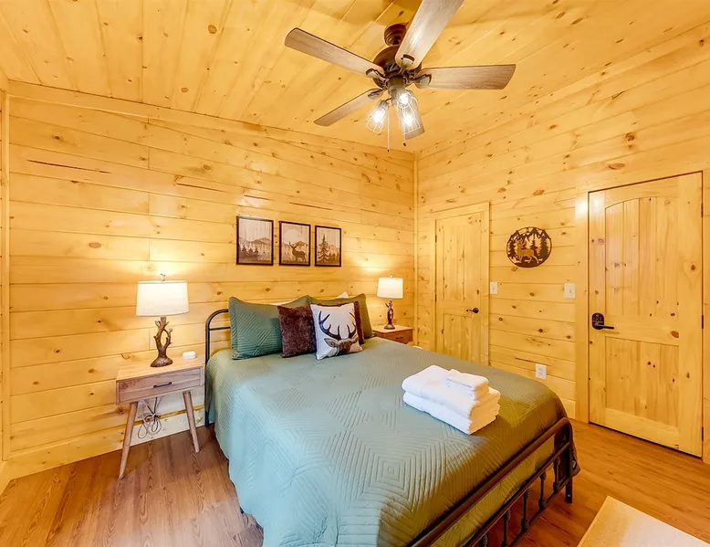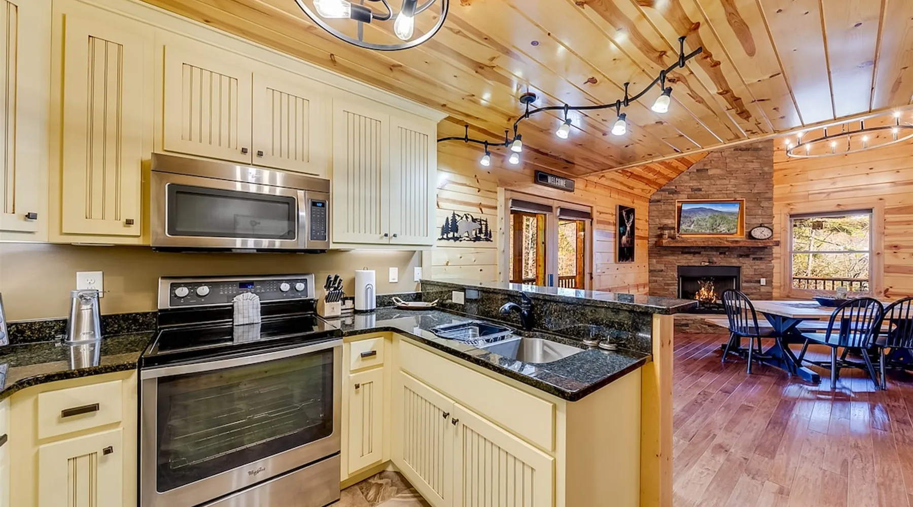 4 Bed/3 Bath - Beautiful & Secluded with Hot Tub, Game Room, Fire Pit & Easy Access to Downtown Helen The space “Hilltop Haven” is a secluded rustic cabin with a hot tub located North of Helen near Richard Russell Scenic Hwy and Smithgall Woods Park & less than 2 miles from the fun & exciting center of Helen, GA. This 3 level 4 bedroom, 3 bathroom cabin has a great bedroom layout and is thoughtfully decorated with many custom furniture pieces throughout. The fully-stocked kitchen with granite countertops and stainless steel appliances has everything needed to enjoy a home-cooked meal. In the living area it boasts a gas log fireplace, gorgeous vaulted ceilings and a 55 inch Smart TV. On the terrace level you will find an area that adults and children alike will enjoy! There is aone bedroom Queen with bunk beds and a game room with Foosball Table and Dart Board. This area leads out to the Cozy Outdoor Fire Pit with Four Adirondack Chairs, 2 benches and an Outdoor Swing. Main Level of the home has two bedrooms with Queen Beds, , a shared hall bath, kitchen, living area, and access to the Gas Grill, Beverage Cooler and open air deck with multiple seatings areas enjoy al fresco dining. The ornate staircase from the main level leads up to the Primary Bedroom with a King Bed, Large Bathroom with Shower, Soaking Tub & Vanity. Boat and tubing rentals are a short drive away to explore the Chattahoochee River or enjoy a day to explore the local vineyards and wineries. With so much to see and do in the area you will want to come back year after year! Things to Know: • 25+ age requirement for lead guest. No exceptions. • This property is not pet-friendly. No exceptions. • Digital rental agreement will be required to sign and complete after property is booked. • Firewood not supplied. Firewood not allowed in the gas fireplace. *Please be aware there are outdoor cameras and a Ring Doorbell camera at the front door.