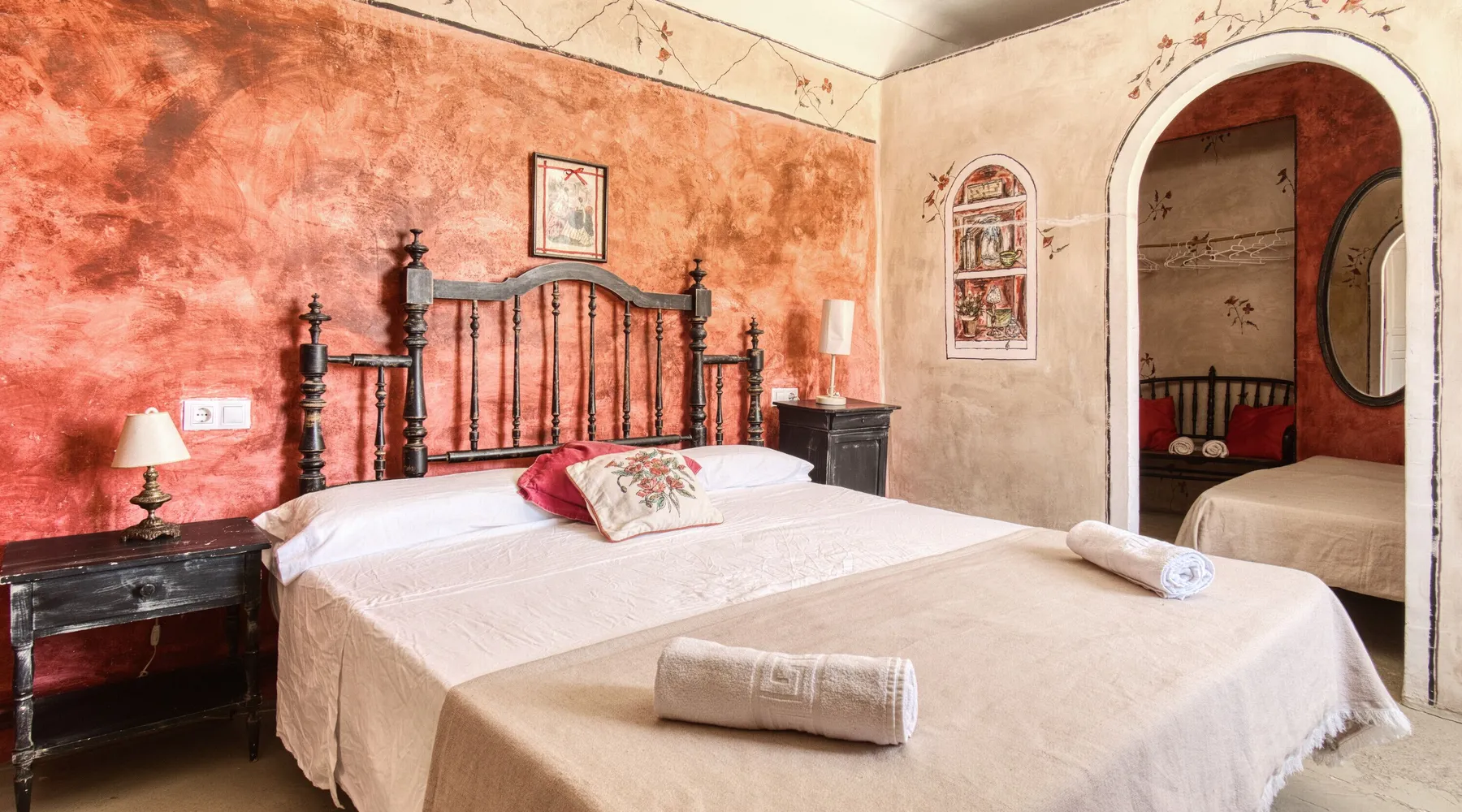Boasting a beautiful view of the mountain, the Country House Señores y Tía Juana is located in Monovar. The 2-storey property consists of a living room, a fully-equipped kitchen, 10 bedrooms and 7 bathrooms as well as an additional toilet and can therefore accommodate 28 people. Additional amenities include Wi-Fi, a TV, a fan as well as a washing machine. On top of that, a table tennis table is also provided for your enjoyment. This property features a private outdoor area with a pool, terrace, barbecue, and outdoor shower. Free parking is available on the street. A maximum of 2 pets are allowed. Air conditioning is not available. This accommodation consists of two separate houses, "Señores" and "Tia Juana," both situated in the same location, and is ideal for larger groups.