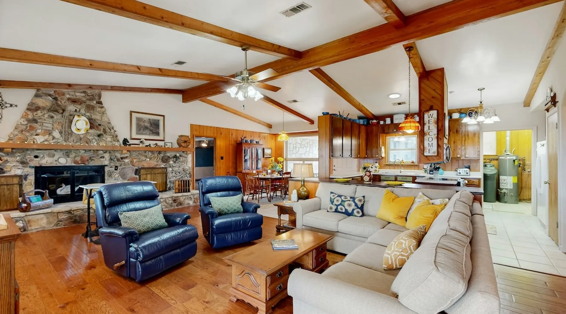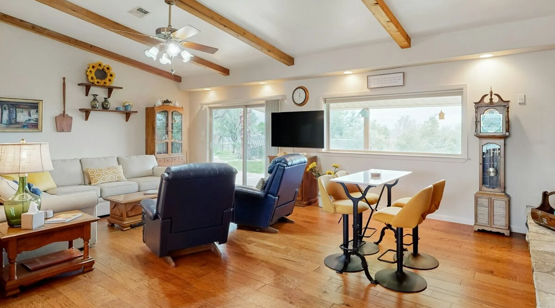The space The Crossbow Create everlasting memories with your loved ones at this fantastic family-friendly home! This single-family home away from home enjoys a wonderful location near Canyon Lake on the shores of Guadalupe River, restaurants, convenience stores, hiking trails, and amazing local attractions, including Lone Star Light Show - Christmas Lights, Canyon Lake Marina, Jacobs Creek Park, Canyon Lake Dam, Overlook Park, Wimberley Zipline Adventures, The Heritage Museum of the Texas Hill Country, Canyon Lake Gorge, and Jacob's Well Natural Area. Head down the scenic road known as the Devil's Backbone to Wimberley, located 14 miles away. You'll also be less than 25 miles from outlet shopping in San Marcos and Schlitterbahn Waterpark and Resort in New Braunfels. Or head out and explore Blanco, less than 20 miles away. This beautiful home presents you with an extensive backyard offering impressive views and a wonderful spot to unwind and create everlasting memories with your family and friends. The covered patio provides a great shaded place to lounge while the gas grill allows you to show off your barbecuing skills and surprise your guests with delicious grilled treats. End your day watching the gorgeous sunset. Inside, this air-conditioned retreat enjoys a quaint open floor plan with vaulted ceilings and exposed wood beams. Spread out comfortably in the inviting living area featuring comfy furniture and a large smart TV with streaming services. The kitchen has been equipped with all the essentials to prepare exquisite culinary masterpieces for the group. When mealtime comes, this home offers three separate dining areas - one right next to the living area, another one adjacent to the kitchen, and a third one attached to the garage with impressive views. This retreat also enjoys a designated laundry room with a washer/dryer and a second fridge for additional storage. Things to Know Check-in time: 4:00 p.m. Check-out time: 10:00 a.m. All guests shall abide by Vacasa’s good neighbor policy and shall not engage in illegal activity. Quiet hours are from 10:00 p.m. to 8:00 a.m. No smoking is permitted anywhere on the premises. Due to recent increases in water levels some boat ramps have been opened on Canyon Lake. Boat ramps #1 and #2 are open for free, public use. Boat ramps #14, #17, #18 and #19 are also open but do charge a fee for entry. For the most up to date water levels and ramp openings please visit the mycanyonlake website. Due to the Hill Country location of our rentals, you may encounter situations with wildlife/pests. Please be aware of your surroundings, take caution while driving at night and supervise your children at all times while outdoors. In addition, all properties do utilize pest control maintenance on a regular basis, BUT this does not guarantee pests/bugs/critters will not be visible. No dog(s) are welcome in this home. No other animals are allowed without specific Vacasa approval. Parking notes: No parking available. Please note: this home resides in a noise-sensitive area and the owners participate in our Good Neighbor protection program. Our smart home technology will alert our team if excessive decibel or occupancy levels are detected, allowing us to reach out directly with a reminder of maximun occupancy and quiet hours. This technology is privacy compliant, and only monitors the presence of decibels and devices -not any personal conversation or information. Thank you for supporting our efforts to be good neighbors! Damage waiver: The total cost of your reservation for this Property includes a damage waiver fee which covers you for up to $3,000 of accidental damage to the Property or its contents (such as furniture, fixtures, and appliances) as long as you report the incident to the host prior to checking out. More information can be found from the "Additional rules" on the checkout page. Due to local laws or HOA requirements, guests must be at least 25 years of age to book. Guests under 25 must be accompanied by a parent or legal guardian for the duration of the reservation.