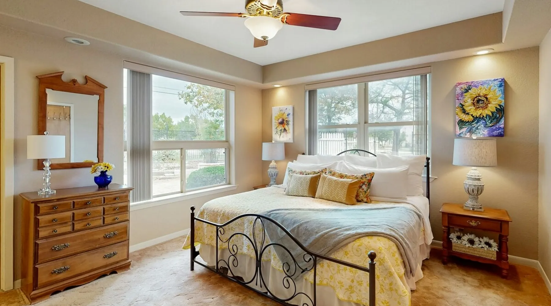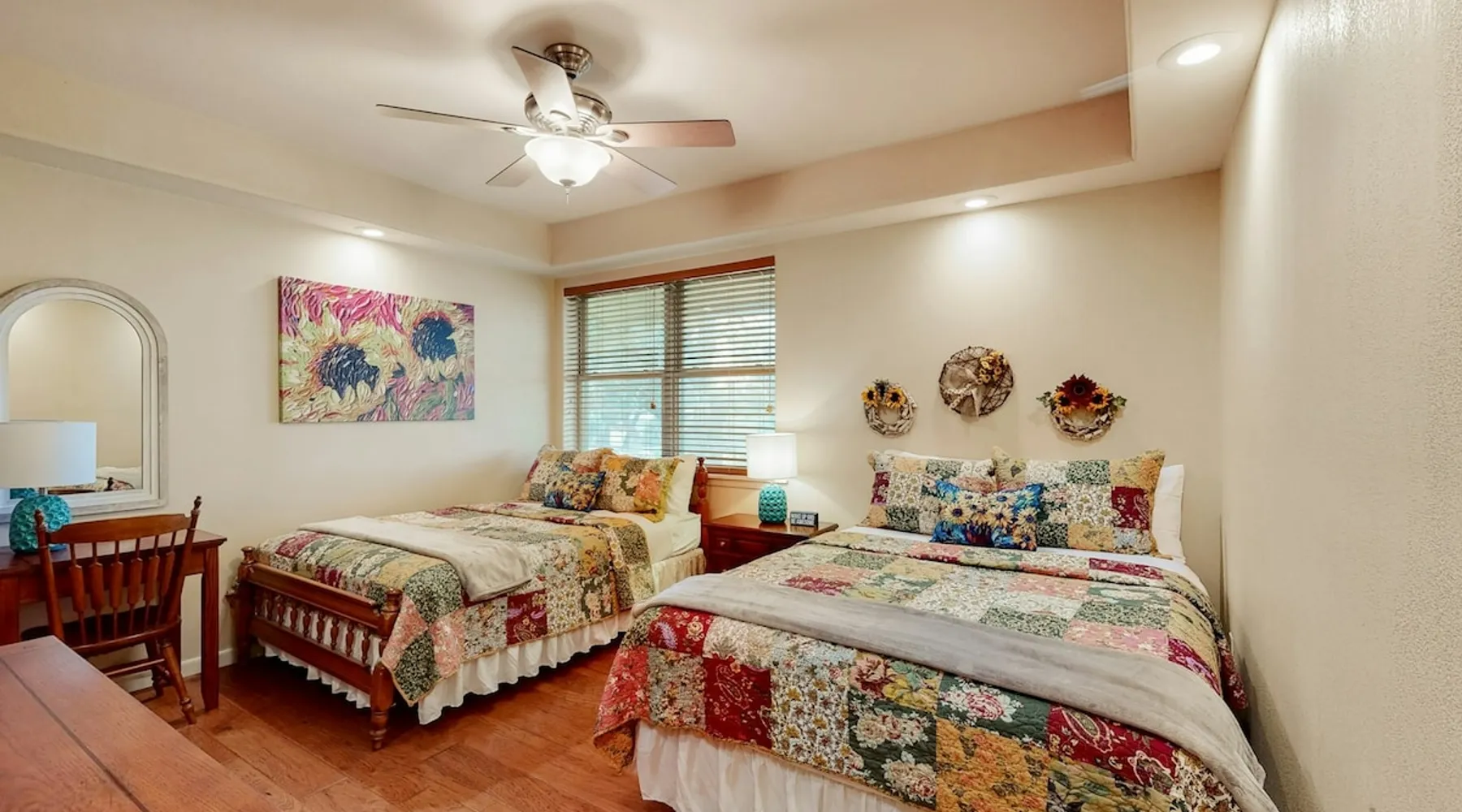 Sunny home with covered patio, grill, beautiful views, lawn, streaming, W/D, AC