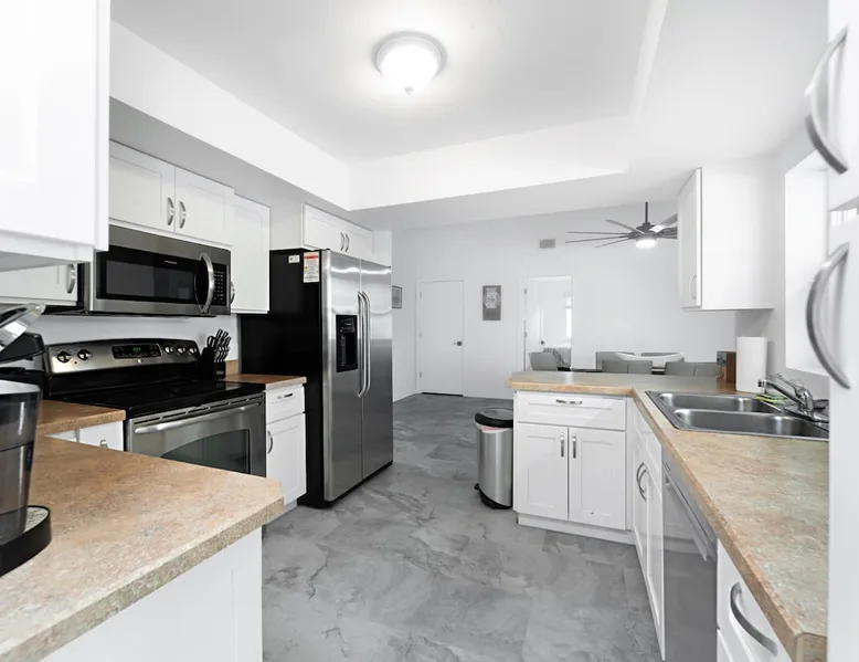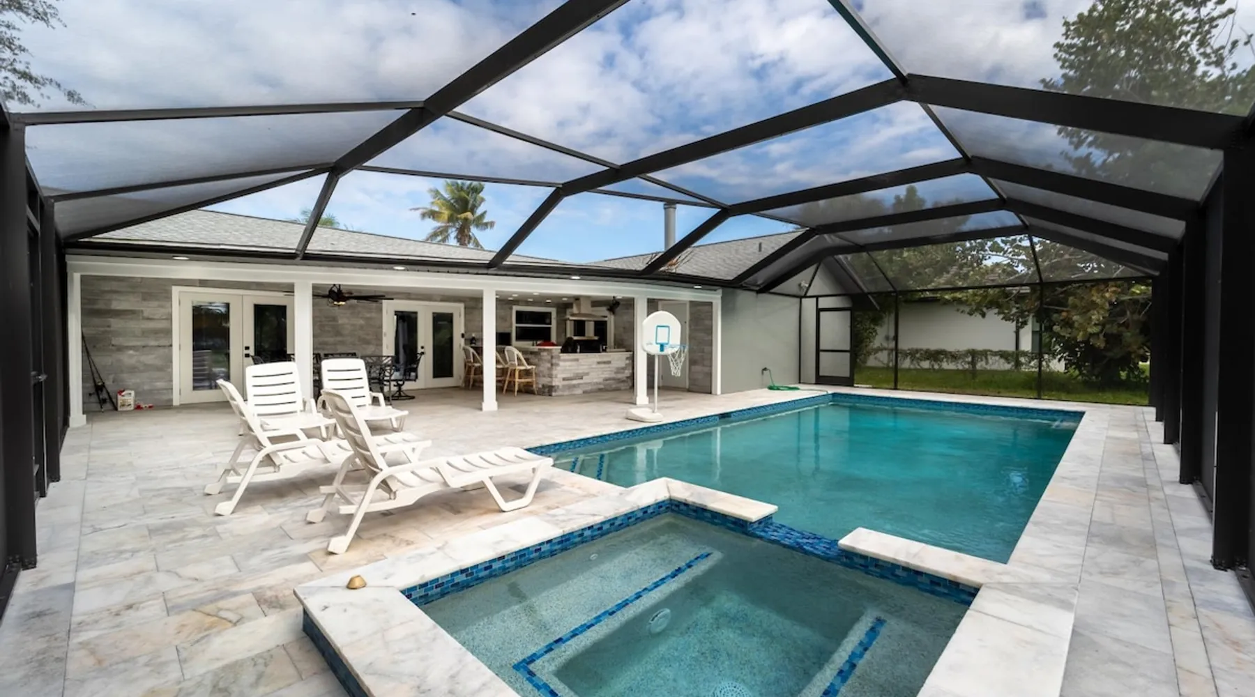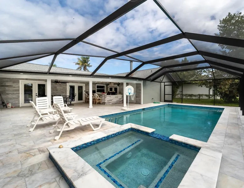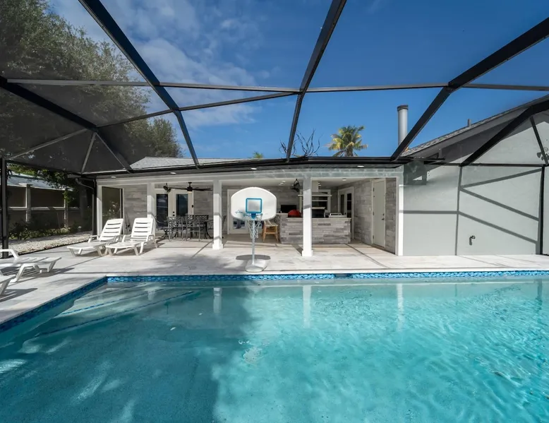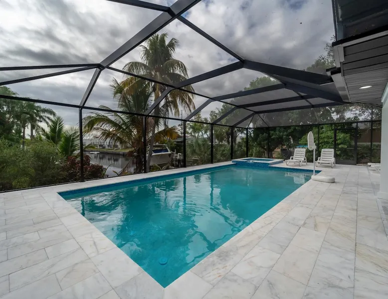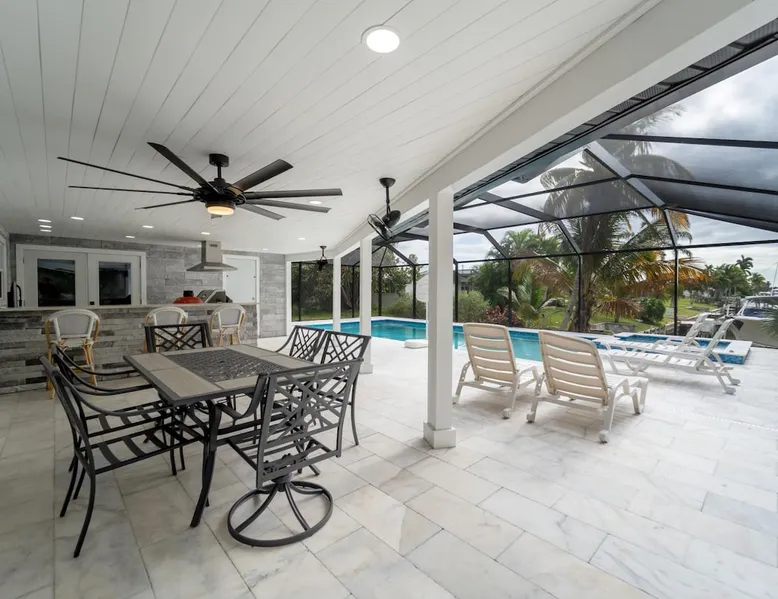 Looking to relax in paradise? Look no further! Spacious, newly remodeled with a spectacular outdoor area. So close to everything, you won't be spending time driving far to get to just about anywhere in SW Florida! The space Canal front home recently remodeled. There is a boat rental company practically next door! Rent a boat and go explore the nearby islands or enjoy a day of fishing or cruising the canals. The southern exposure patio is the place to be! Heated pool and hot tub. Enjoy the waterfront view while you're cooking at the outdoor kitchen. Propane grill as well as a refigerator, sink and ice maker at your own bar! Inside the house, there are three bedrooms, two remodeled bathrooms and a spacious living area. King bed and en suite bathroom in main bedroom and queen beds in the guest rooms. Kitchen has everything you'll need if you prefer meals at home with a large dining area to accomodate everyone. Additionally. there is indoor laundry. This home is conveniently located less than five minute drive to the mid point bridge to Ft Myers. Quick access to shopping, dining and grocery stores. Ft Myers Beach and Sanibel island are approximately 30 minute drive. THINGS TO NOTE: Garage, boat and dock are not accessible to guests. No Parties or events! The home is surrounded by plenty of night life to enjoy! Owner provides propane for the gas grill. Charcoal grill not for guest use. Guest access Garage is not available for guest use.