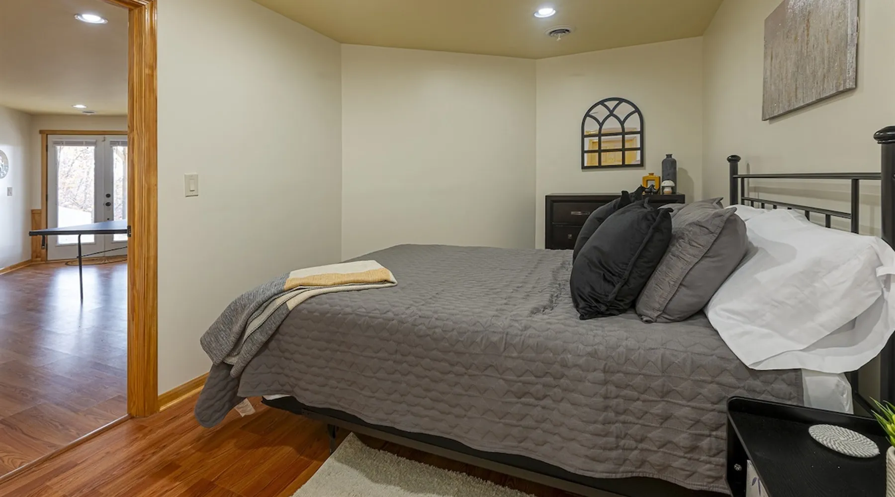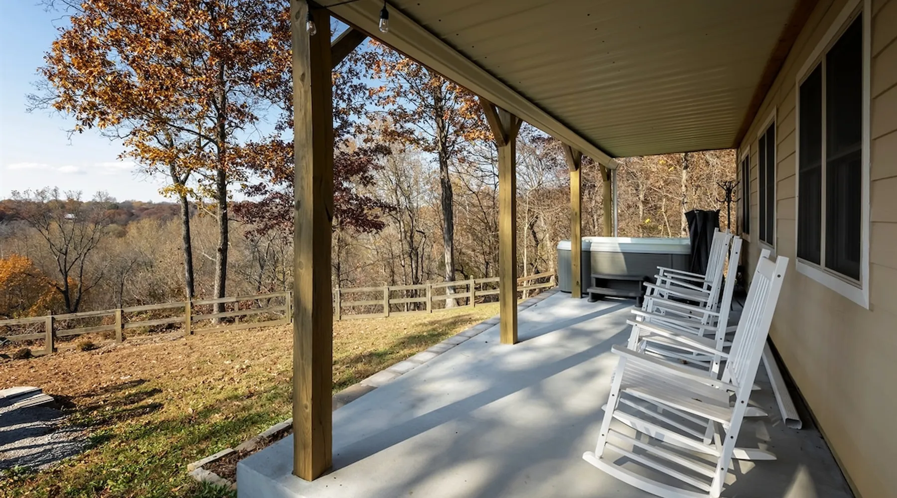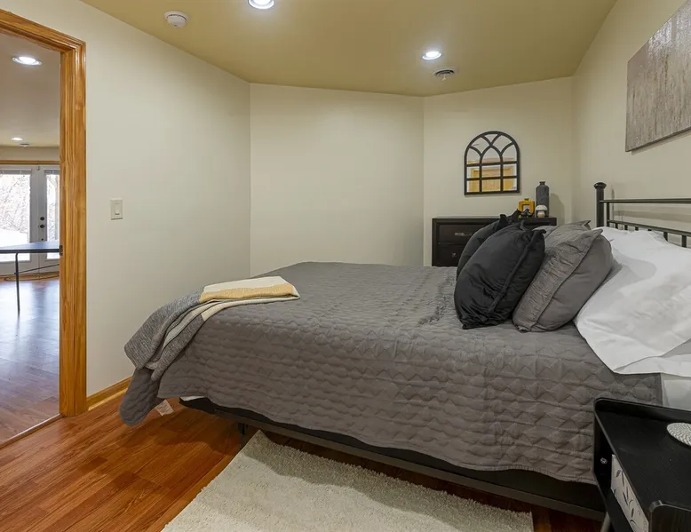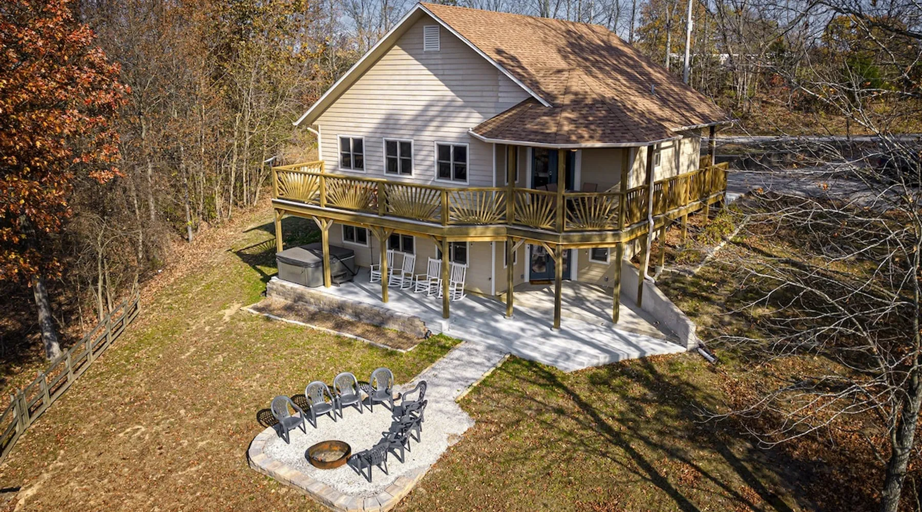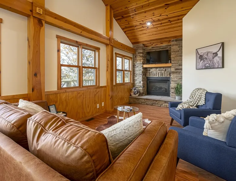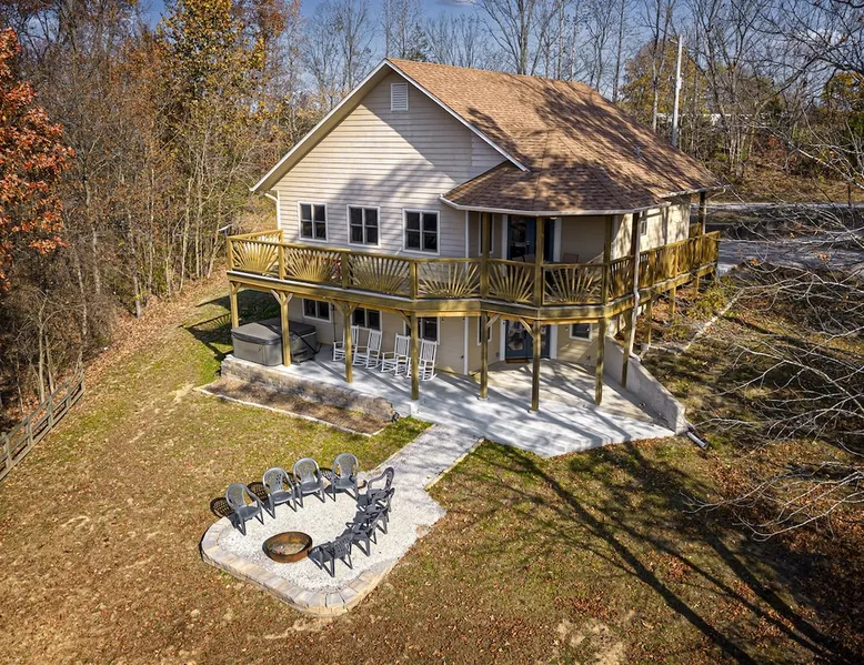 Embrace Southern Illinois charm at our Carbondale vacation home, "Sunset Ridge", perched on a western-facing ridge with stunning sunset views. Ideal for SIUC alumni and parents, our cozy retreat features a hot tub and sleeps six. Reconnect with campus life, attend events, and create lasting memories in this convenient and inviting getaway less than 4 miles from campus. Book your stay for a perfect blend of comfort and nostalgia. The space SLEEPING ARRANGEMENTS 1 Queen Bed on main level 1 Queen Bed in 2nd bedroom on lower level 2 Twin beds in 3rd bedroom on lower level THE LAYOUT - MAIN LEVEL Living Room w/ Smart TV & Fireplace Kitchen & Dining Area Walkout Deck 1 Bedroom; 1 bathroom Washer/Dryer THE LAYOUT- LOWER LEVEL 2nd & 3rd bedroom Ping Pong Table and bar cart Walkout to firepit and hot tub OUTDOORS Fire pit for relaxation (firewood can be purchased at nearby convenience stores) Private yard is surrounded by woods for ultimate privacy Less than 4 miles from SIUC campus Short drive to public land (state and Shawnee National Forest) for fishing, hiking, hunting, kayaking and exploring Each guest receives a personalized online Welcome Guide immediately upon booking- so you can plan your trip with all of our personal recommendations of places to go and things to do. Guest access Guests have access to all of the property and grounds with the exception of one locked closet for inventory. NOTE: This property is located on a large bluff. Please stay away from the fence and bluff as we are not responsible for accidents. Other things to note A rental agreement is required with ID verification within 48 hours of booking. Access to the property is only provided after the renter's agreement is signed. Check-in is after 3 PM. Check-out is before 10 AM. Pet Policy: Maximum 2 pets (dogs only). $100/pet, per stay. Inventory: We provide a "starter package" of inventory for our cabin: 3 rolls of T.P. and 1 full roll of paper towels. Firewood available for purchase No Grill