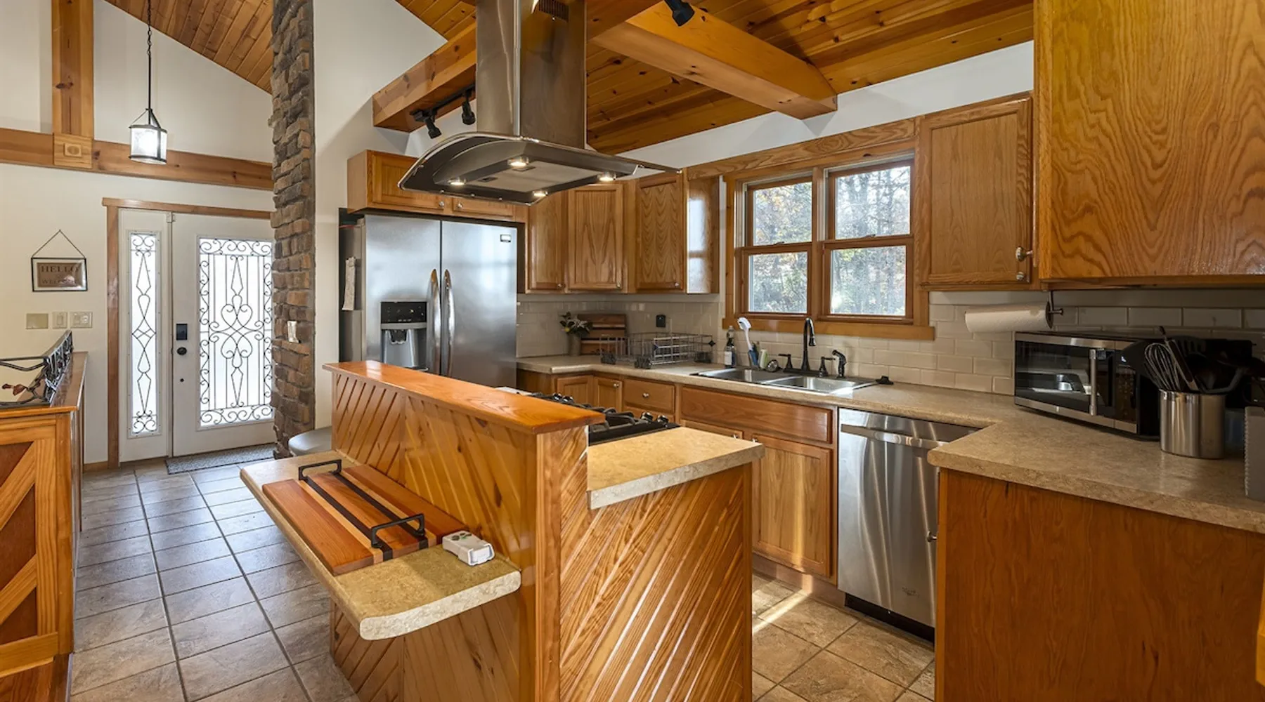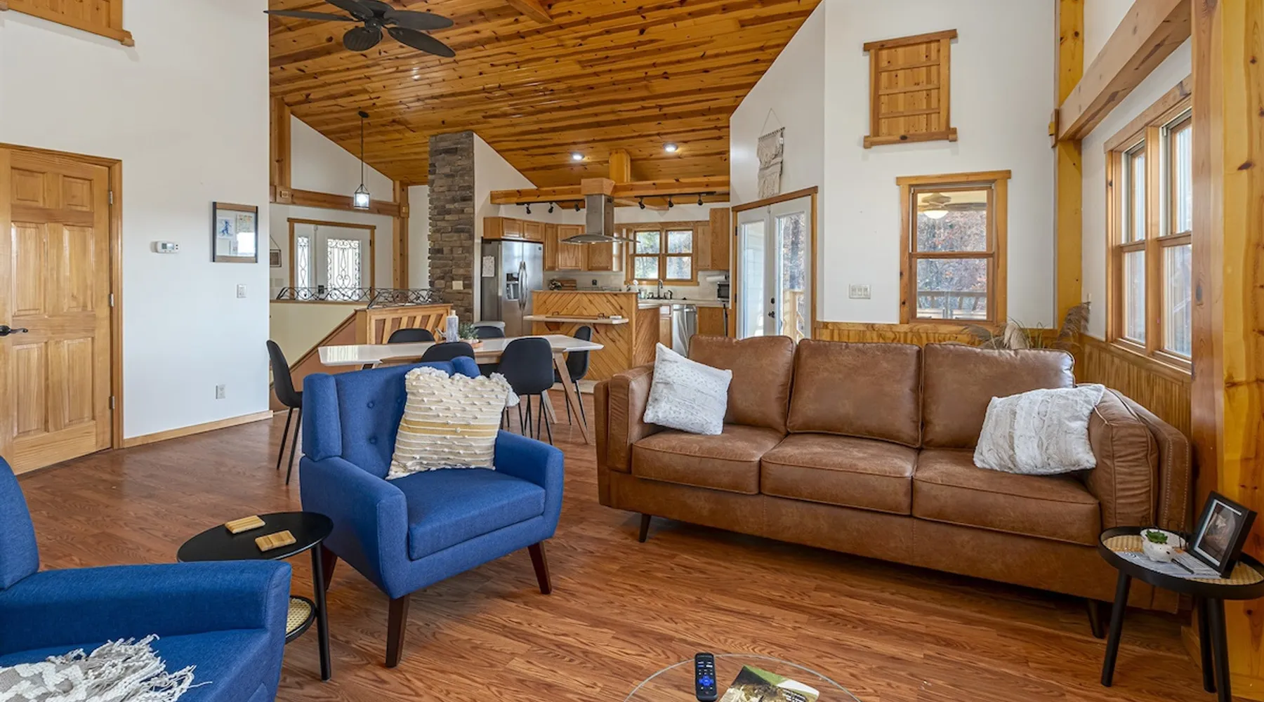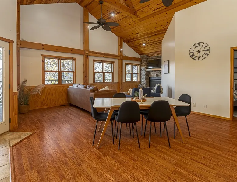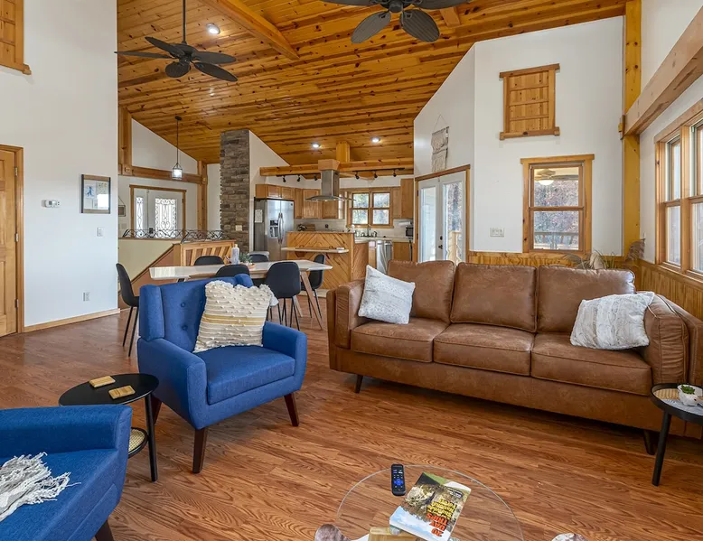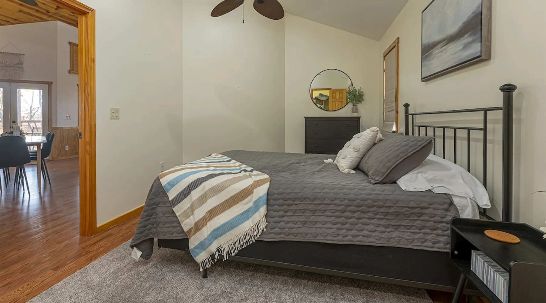 Embrace Southern Illinois charm at our Carbondale vacation home, "Sunset Ridge", perched on a western-facing ridge with stunning sunset views. Ideal for SIUC alumni and parents, our cozy retreat features a hot tub and sleeps six. Reconnect with campus life, attend events, and create lasting memories in this convenient and inviting getaway less than 4 miles from campus. Book your stay for a perfect blend of comfort and nostalgia. The space SLEEPING ARRANGEMENTS 1 Queen Bed on main level 1 Queen Bed in 2nd bedroom on lower level 2 Twin beds in 3rd bedroom on lower level THE LAYOUT - MAIN LEVEL Living Room w/ Smart TV & Fireplace Kitchen & Dining Area Walkout Deck 1 Bedroom; 1 bathroom Washer/Dryer THE LAYOUT- LOWER LEVEL 2nd & 3rd bedroom Ping Pong Table and bar cart Walkout to firepit and hot tub OUTDOORS Fire pit for relaxation (firewood can be purchased at nearby convenience stores) Private yard is surrounded by woods for ultimate privacy Less than 4 miles from SIUC campus Short drive to public land (state and Shawnee National Forest) for fishing, hiking, hunting, kayaking and exploring Each guest receives a personalized online Welcome Guide immediately upon booking- so you can plan your trip with all of our personal recommendations of places to go and things to do. Guest access Guests have access to all of the property and grounds with the exception of one locked closet for inventory. NOTE: This property is located on a large bluff. Please stay away from the fence and bluff as we are not responsible for accidents. Other things to note A rental agreement is required with ID verification within 48 hours of booking. Access to the property is only provided after the renter's agreement is signed. Check-in is after 3 PM. Check-out is before 10 AM. Pet Policy: Maximum 2 pets (dogs only). $100/pet, per stay. Inventory: We provide a "starter package" of inventory for our cabin: 3 rolls of T.P. and 1 full roll of paper towels. Firewood available for purchase No Grill