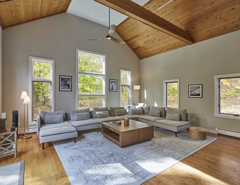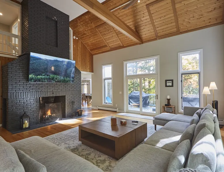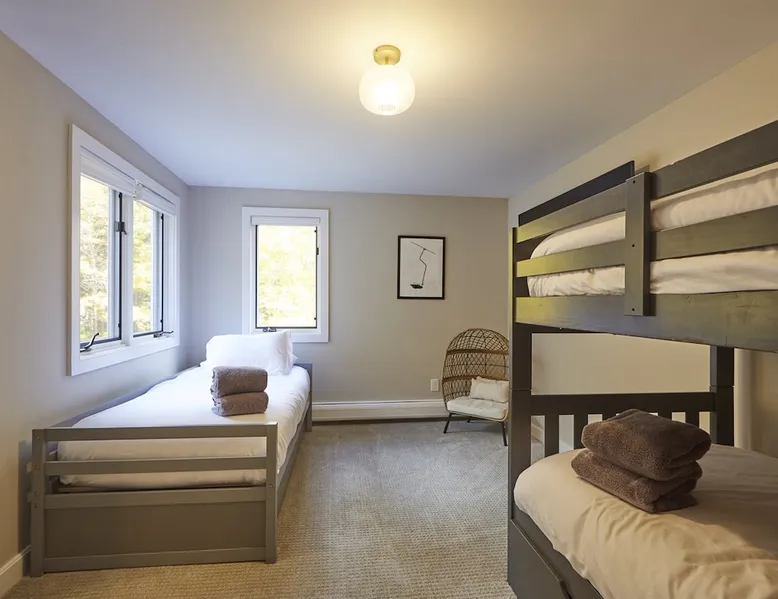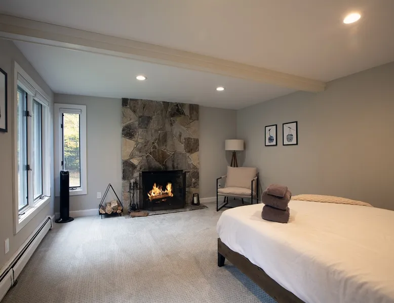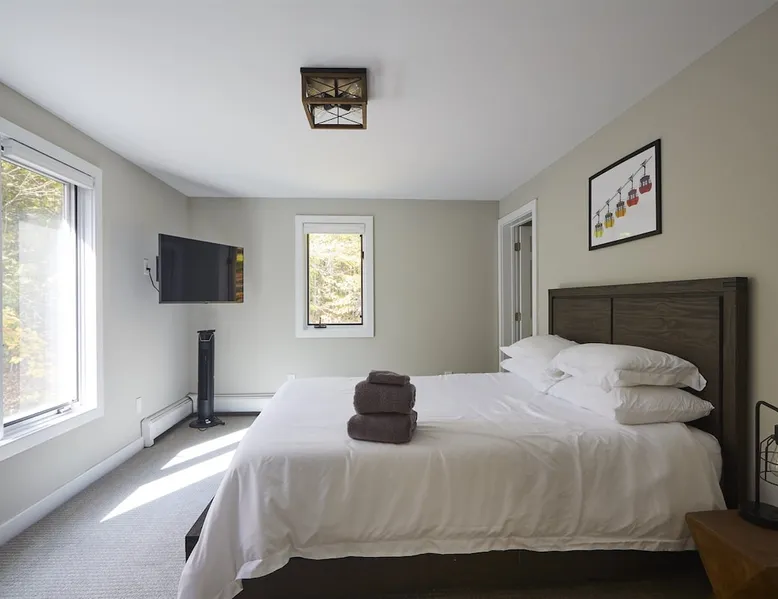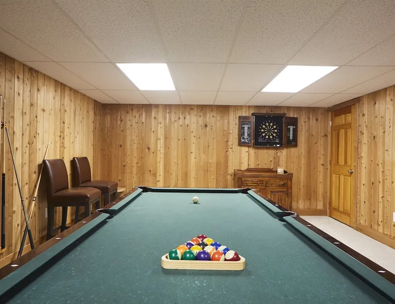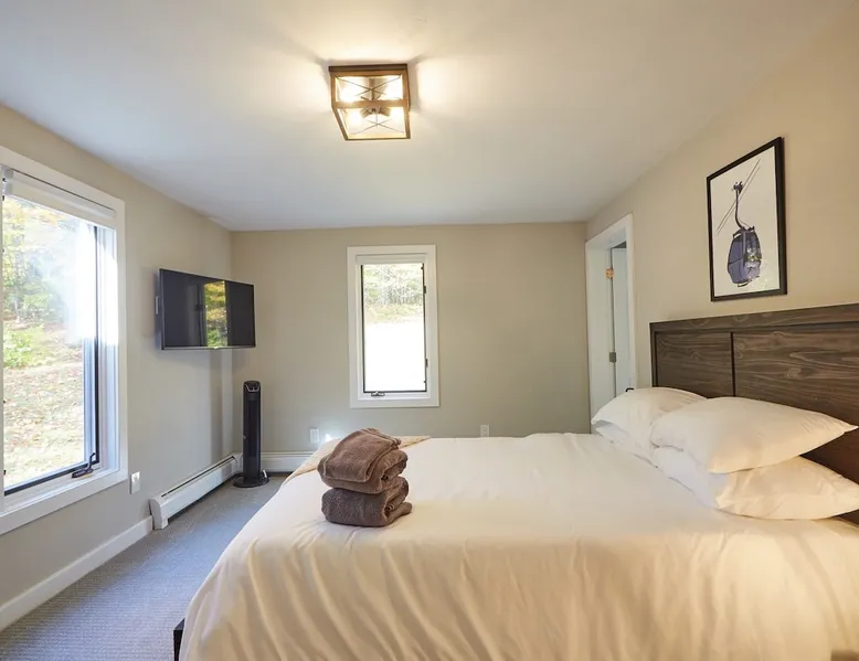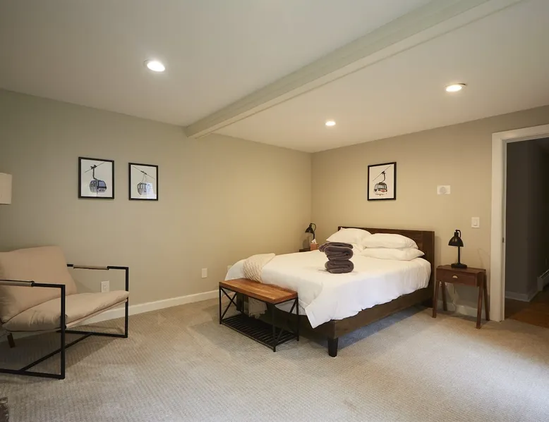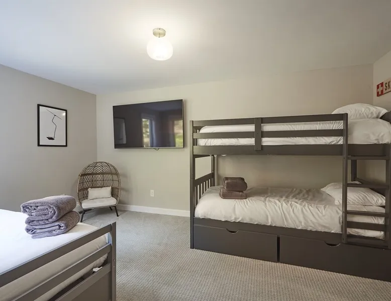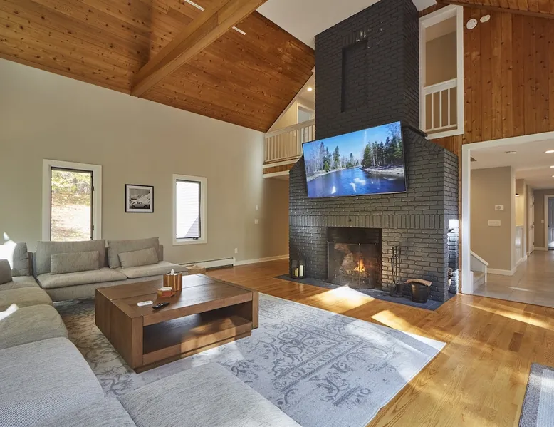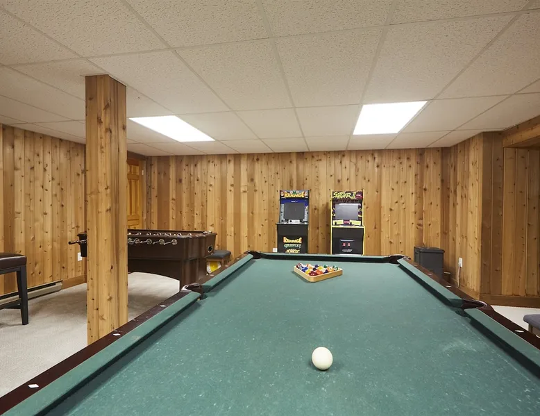Unwind in spacious luxury at First Chair Lair, by 42 North LP! Your premier Stratton retreat: a newly renovated 5-bed, 4-bath High Meadow home. It boasts a massive living room with a striking fireplace & 86" TV for unique cozy ambiance. Towering high ceilings expand the space, and bedrooms offer privacy with generous square footage. Enjoy the deck's new hot tub & Weber grill. Dining for 12—perfect for large groups! The space First Chair Lair is your premier mountain modern retreat in Stratton's desirable High Meadow! This newly renovated 5-bedroom, 4-bathroom home is designed for the ultimate getaway, offering an expansive 4,000 sq ft of luxurious space to comfortably spread out, unwind, and make unforgettable memories. Spacious Luxury & Thoughtful Design: From the moment you step inside, you'll be enveloped in a sense of spaciousness and refined comfort. Towering high ceilings amplify the airy ambiance throughout, creating an immediate feeling of grandeur. The home's design seamlessly blends sleek, contemporary lines with warm, natural materials, embodying the quintessential mountain modern aesthetic. Every detail has been carefully considered to ensure a luxurious and comfortable stay for large groups, families, and friends alike. Unwind & Entertain on the Main Level: The heart of this home is the massive living room, truly a focal point for relaxation and connection. Gather everyone on the sprawling, oversized couch, perfectly positioned to enjoy the glow of the striking, massive fireplace and immerse yourselves in entertainment on the huge 86-inch Smart TV. From the living room, step directly onto the inviting deck, featuring a brand-new, bubbling hot tub—the perfect spot for an après-ski soak under the stars. Fire up the Weber grill for delicious outdoor meals and enjoy the fresh mountain air. The adjacent dining room comfortably seats 12, making it ideal for festive meals and memorable gatherings. Ultimate Fun in the Lower Level Recreation Zone: Descend to the lower level and discover your private entertainment hub! This dedicated recreation zone is packed with amenities to keep everyone engaged. Challenge your group to a game of billiards, show off your aim at the darts board, or dive into nostalgia with the selection of arcade games. This versatile space provides endless hours of fun, perfect for both kids and adults, offering a fantastic alternative (or addition!) to outdoor adventures. Five Bedrooms for Ultimate Privacy & Luxury Master Suite: With five meticulously designed bedrooms and four full bathrooms, First Chair Lair prioritizes your comfort and privacy. Thanks to the home's generous square footage, the bedrooms are thoughtfully spread apart across multiple levels, ensuring ample personal space for every guest. The master bedroom is truly massive, boasting cathedral ceilings that enhance its grandeur. The large master bathroom features both a sleek, modern shower and a spa-like soaking tub, creating the ultimate retreat within a retreat. Each room is a tranquil haven, featuring plush bedding and stylish decor, providing a restful escape after a day of mountain activities. Outdoor Oasis & Prime Location: Situated in the desirable High Meadow subdivision, you're just minutes from Stratton Mountain Resort, offering convenient access to skiing, snowboarding, and hiking. For ultimate convenience during the winter season, a complimentary shuttle is available to the Stratton ski area! Experience the best of Stratton living at First Chair Lair—your luxurious home away from home! Guest access Guests will enjoy private, exclusive access to the entire First Chair Lair property, ensuring a truly private and undisturbed mountain retreat. Your convenience is our priority; check-in is seamless and flexible any time after 5 PM via our easy-to-use smart lock. We'll provide you with a unique access code before your arrival, so you can settle in at your own pace. Other things to note Here are a few friendly details to help you settle in and make the most of your mountain getaway: - Your Rental Agreement: After booking, we'll send a standard rental agreement for the primary guest to sign. It's a simple step to confirm your reservation and ensure a smooth stay. - Paws Welcome: We're happy to host your well-behaved dogs! You can bring up to two pups, with a $75 nightly fee per pet. - Primary Renter Age: The primary guest must be at least 25 years old to reserve the property. - Fresh Air Inside: For everyone's comfort, smoking is not permitted anywhere on the property, indoors or out. - Hot Tub Ready: Your private hot tub is ready for relaxation! Their maintenance is included in your stay and they're professionally serviced between every visit. - Mountain Home Access: Like many authentic mountain homes, First Chair Lair has stairs to access different areas. While the path to the entrance is lit, please note the property is not wheelchair accessible. - Safety & Security: For your peace of mind, there are exterior cameras on the property. We can't wait for you to create unforgettable memories at First Chair Lair!