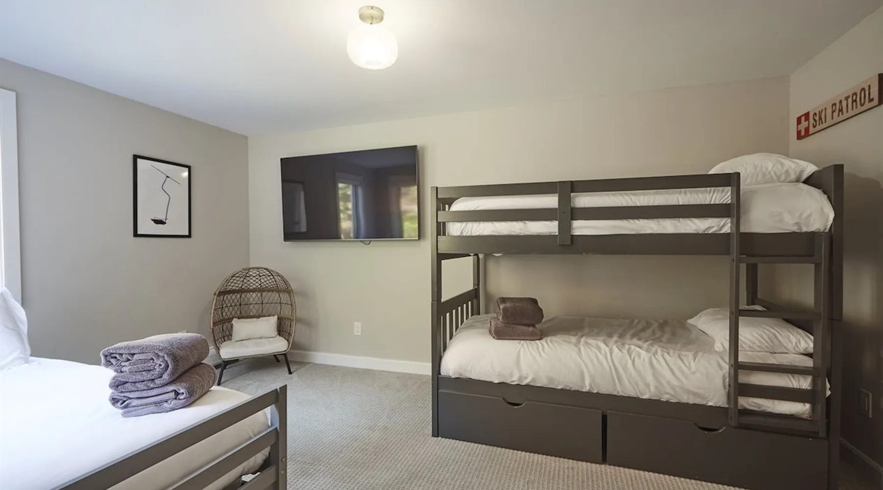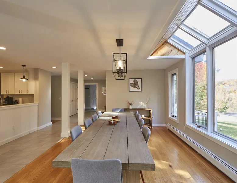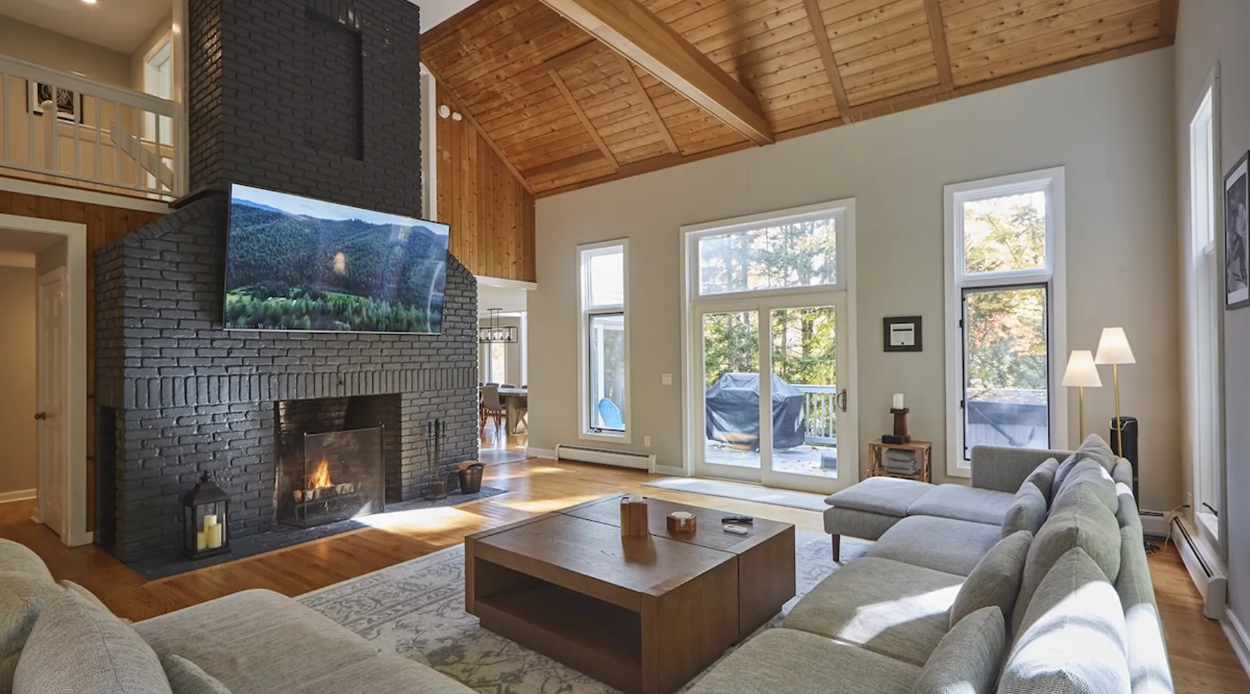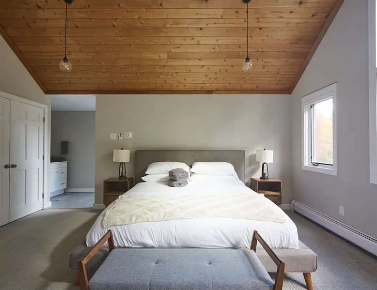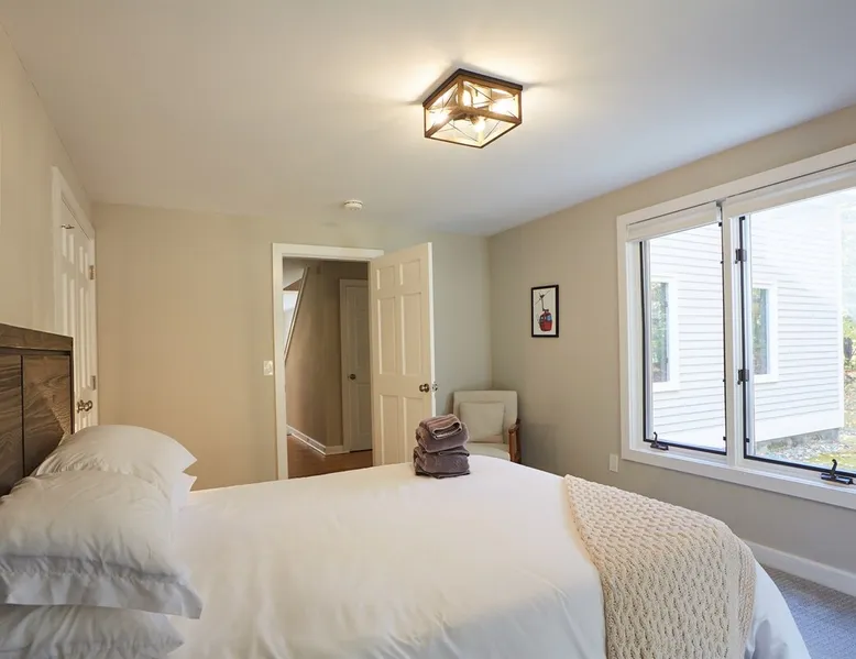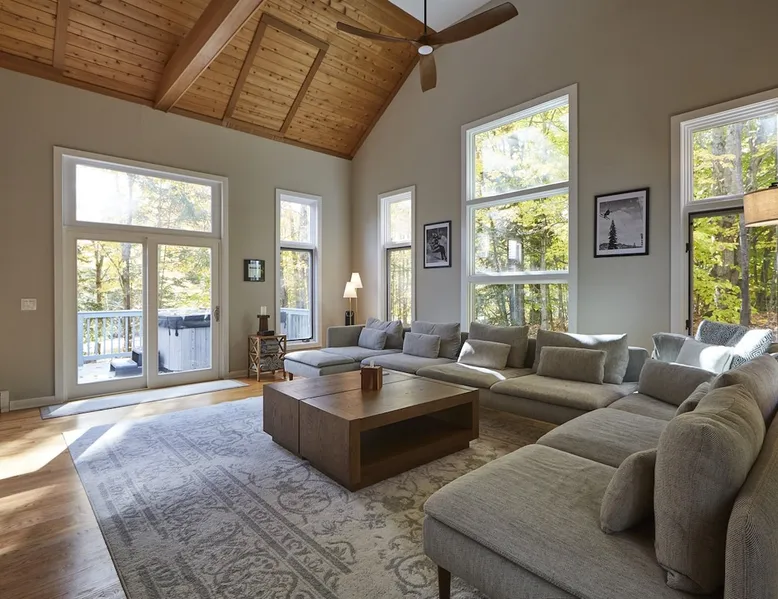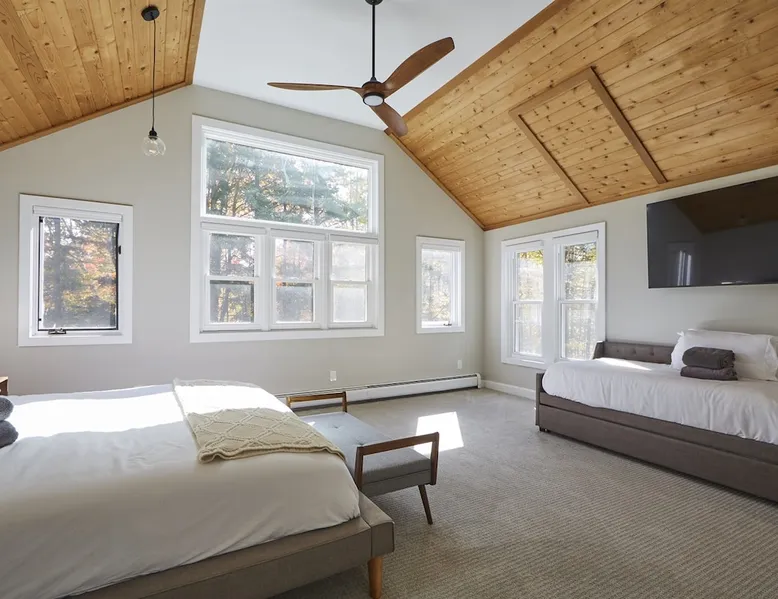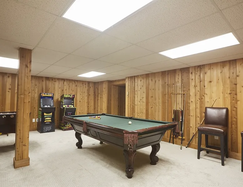 Unwind in spacious luxury at First Chair Lair, by 42 North LP! Your premier Stratton retreat: a newly renovated 5-bed, 4-bath High Meadow home. It boasts a massive living room with a striking fireplace & 86" TV for unique cozy ambiance. Towering high ceilings expand the space, and bedrooms offer privacy with generous square footage. Enjoy the deck's new hot tub & Weber grill. Dining for 12—perfect for large groups! The space First Chair Lair is your premier mountain modern retreat in Stratton's desirable High Meadow! This newly renovated 5-bedroom, 4-bathroom home is designed for the ultimate getaway, offering an expansive 4,000 sq ft of luxurious space to comfortably spread out, unwind, and make unforgettable memories. Spacious Luxury & Thoughtful Design: From the moment you step inside, you'll be enveloped in a sense of spaciousness and refined comfort. Towering high ceilings amplify the airy ambiance throughout, creating an immediate feeling of grandeur. The home's design seamlessly blends sleek, contemporary lines with warm, natural materials, embodying the quintessential mountain modern aesthetic. Every detail has been carefully considered to ensure a luxurious and comfortable stay for large groups, families, and friends alike. Unwind & Entertain on the Main Level: The heart of this home is the massive living room, truly a focal point for relaxation and connection. Gather everyone on the sprawling, oversized couch, perfectly positioned to enjoy the glow of the striking, massive fireplace and immerse yourselves in entertainment on the huge 86-inch Smart TV. From the living room, step directly onto the inviting deck, featuring a brand-new, bubbling hot tub—the perfect spot for an après-ski soak under the stars. Fire up the Weber grill for delicious outdoor meals and enjoy the fresh mountain air. The adjacent dining room comfortably seats 12, making it ideal for festive meals and memorable gatherings. Ultimate Fun in the Lower Level Recreation Zone: Descend to the lower level and discover your private entertainment hub! This dedicated recreation zone is packed with amenities to keep everyone engaged. Challenge your group to a game of billiards, show off your aim at the darts board, or dive into nostalgia with the selection of arcade games. This versatile space provides endless hours of fun, perfect for both kids and adults, offering a fantastic alternative (or addition!) to outdoor adventures. Five Bedrooms for Ultimate Privacy & Luxury Master Suite: With five meticulously designed bedrooms and four full bathrooms, First Chair Lair prioritizes your comfort and privacy. Thanks to the home's generous square footage, the bedrooms are thoughtfully spread apart across multiple levels, ensuring ample personal space for every guest. The master bedroom is truly massive, boasting cathedral ceilings that enhance its grandeur. The large master bathroom features both a sleek, modern shower and a spa-like soaking tub, creating the ultimate retreat within a retreat. Each room is a tranquil haven, featuring plush bedding and stylish decor, providing a restful escape after a day of mountain activities. Outdoor Oasis & Prime Location: Situated in the desirable High Meadow subdivision, you're just minutes from Stratton Mountain Resort, offering convenient access to skiing, snowboarding, and hiking. For ultimate convenience during the winter season, a complimentary shuttle is available to the Stratton ski area! Experience the best of Stratton living at First Chair Lair—your luxurious home away from home! Guest access Guests will enjoy private, exclusive access to the entire First Chair Lair property, ensuring a truly private and undisturbed mountain retreat. Your convenience is our priority; check-in is seamless and flexible any time after 5 PM via our easy-to-use smart lock. We'll provide you with a unique access code before your arrival, so you can settle in at your own pace. Other things to note Here are a few friendly details to help you settle in and make the most of your mountain getaway: - Your Rental Agreement: After booking, we'll send a standard rental agreement for the primary guest to sign. It's a simple step to confirm your reservation and ensure a smooth stay. - Paws Welcome: We're happy to host your well-behaved dogs! You can bring up to two pups, with a $75 nightly fee per pet. - Primary Renter Age: The primary guest must be at least 25 years old to reserve the property. - Fresh Air Inside: For everyone's comfort, smoking is not permitted anywhere on the property, indoors or out. - Hot Tub Ready: Your private hot tub is ready for relaxation! Their maintenance is included in your stay and they're professionally serviced between every visit. - Mountain Home Access: Like many authentic mountain homes, First Chair Lair has stairs to access different areas. While the path to the entrance is lit, please note the property is not wheelchair accessible. - Safety & Security: For your peace of mind, there are exterior cameras on the property. We can't wait for you to create unforgettable memories at First Chair Lair!