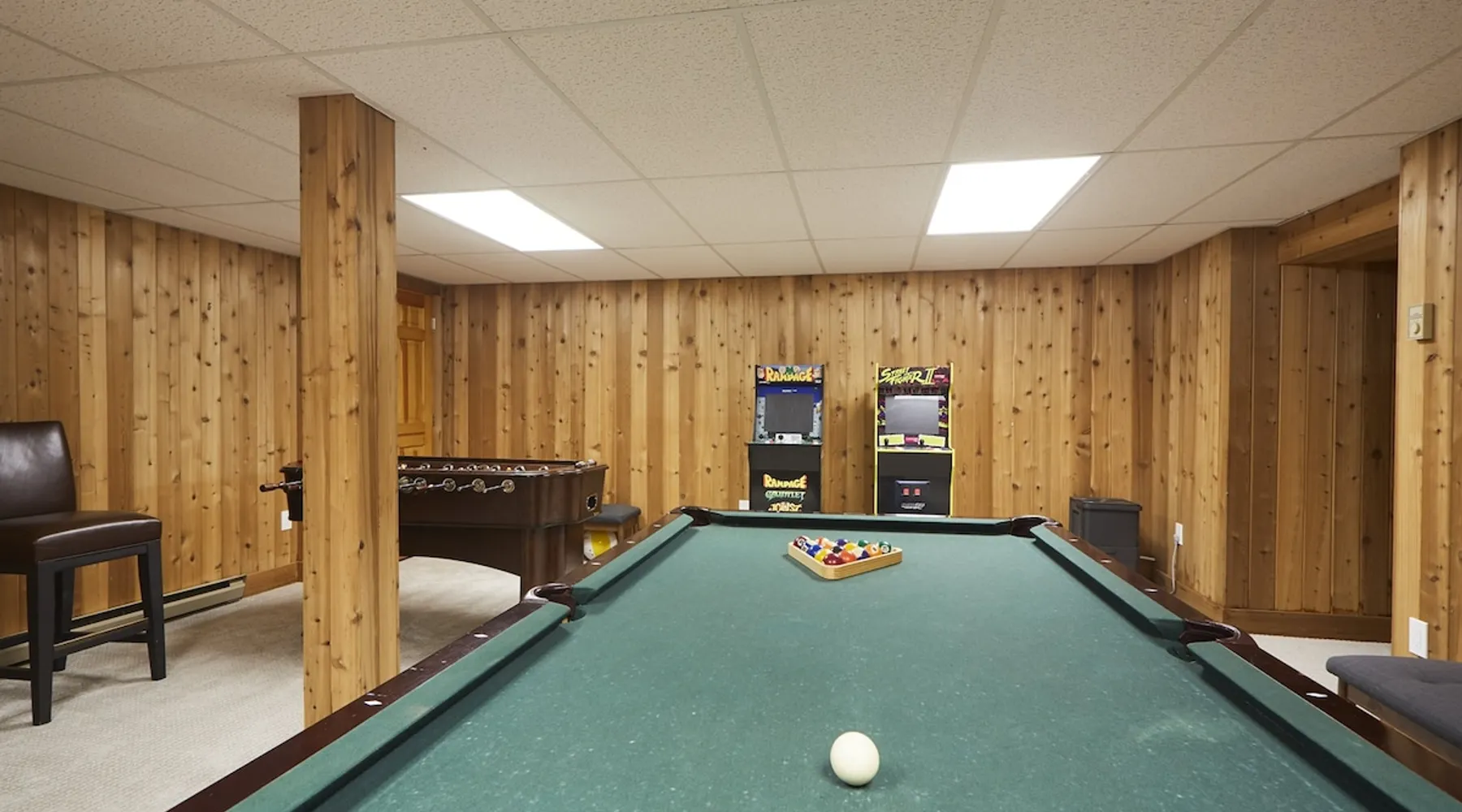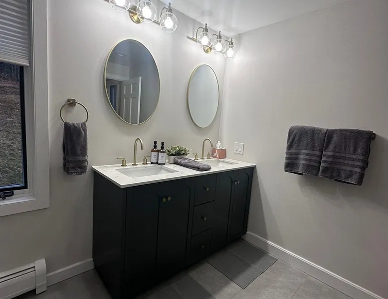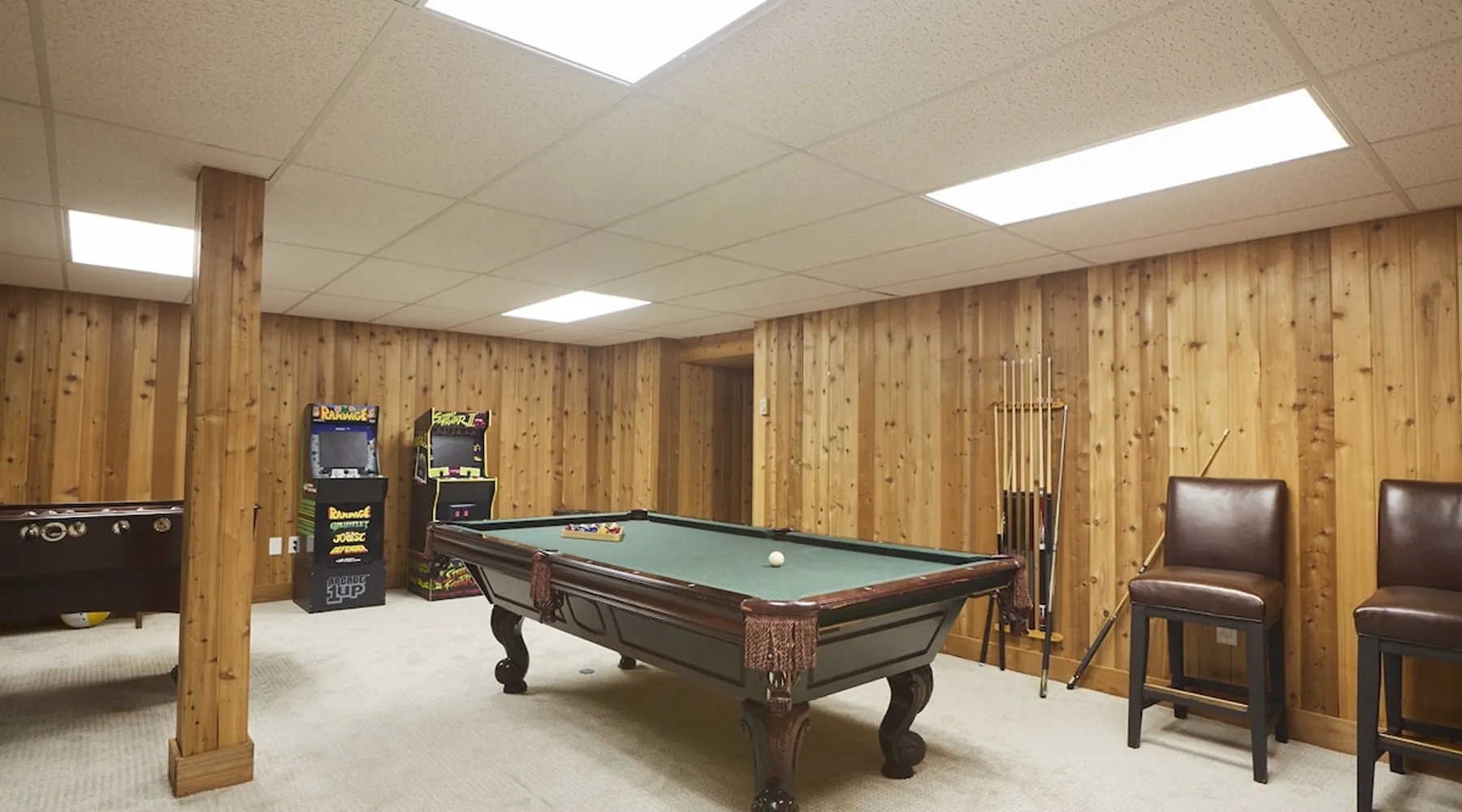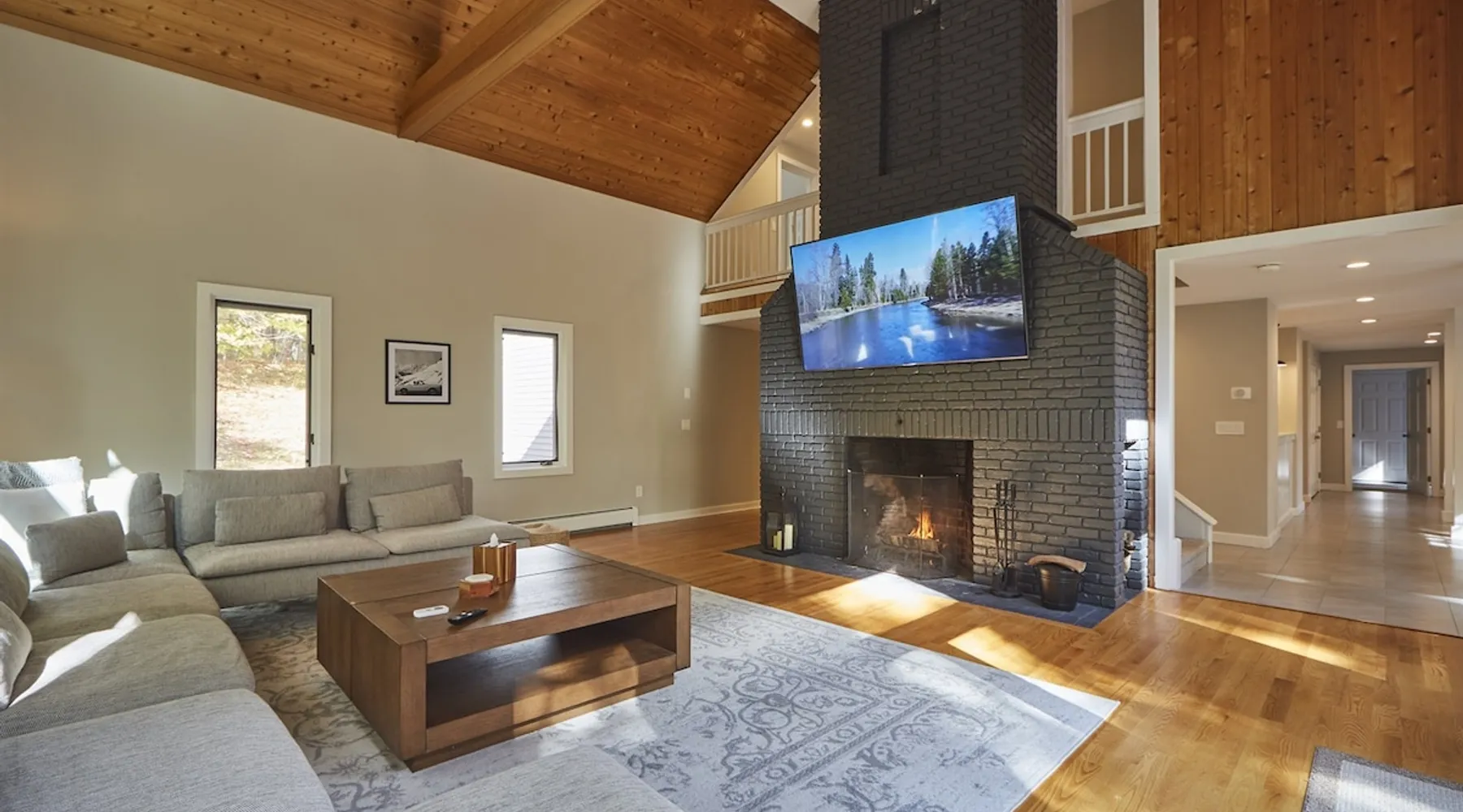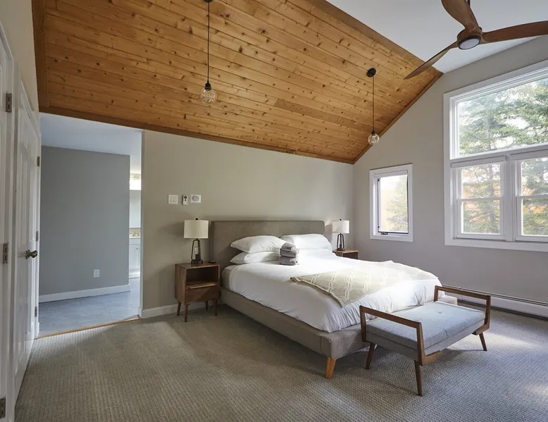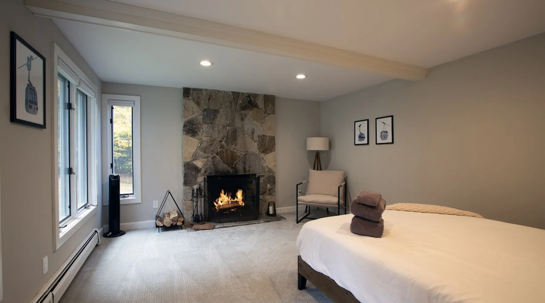 Unwind in spacious luxury at First Chair Lair, by 42 North LP! Your premier Stratton retreat: a newly renovated 5-bed, 4-bath High Meadow home. It boasts a massive living room with a striking fireplace & 86" TV for unique cozy ambiance. Towering high ceilings expand the space, and bedrooms offer privacy with generous square footage. Enjoy the deck's new hot tub & Weber grill. Dining for 12—perfect for large groups! The space First Chair Lair is your premier mountain modern retreat in Stratton's desirable High Meadow! This newly renovated 5-bedroom, 4-bathroom home is designed for the ultimate getaway, offering an expansive 4,000 sq ft of luxurious space to comfortably spread out, unwind, and make unforgettable memories. Spacious Luxury & Thoughtful Design: From the moment you step inside, you'll be enveloped in a sense of spaciousness and refined comfort. Towering high ceilings amplify the airy ambiance throughout, creating an immediate feeling of grandeur. The home's design seamlessly blends sleek, contemporary lines with warm, natural materials, embodying the quintessential mountain modern aesthetic. Every detail has been carefully considered to ensure a luxurious and comfortable stay for large groups, families, and friends alike. Unwind & Entertain on the Main Level: The heart of this home is the massive living room, truly a focal point for relaxation and connection. Gather everyone on the sprawling, oversized couch, perfectly positioned to enjoy the glow of the striking, massive fireplace and immerse yourselves in entertainment on the huge 86-inch Smart TV. From the living room, step directly onto the inviting deck, featuring a brand-new, bubbling hot tub—the perfect spot for an après-ski soak under the stars. Fire up the Weber grill for delicious outdoor meals and enjoy the fresh mountain air. The adjacent dining room comfortably seats 12, making it ideal for festive meals and memorable gatherings. Ultimate Fun in the Lower Level Recreation Zone: Descend to the lower level and discover your private entertainment hub! This dedicated recreation zone is packed with amenities to keep everyone engaged. Challenge your group to a game of billiards, show off your aim at the darts board, or dive into nostalgia with the selection of arcade games. This versatile space provides endless hours of fun, perfect for both kids and adults, offering a fantastic alternative (or addition!) to outdoor adventures. Five Bedrooms for Ultimate Privacy & Luxury Master Suite: With five meticulously designed bedrooms and four full bathrooms, First Chair Lair prioritizes your comfort and privacy. Thanks to the home's generous square footage, the bedrooms are thoughtfully spread apart across multiple levels, ensuring ample personal space for every guest. The master bedroom is truly massive, boasting cathedral ceilings that enhance its grandeur. The large master bathroom features both a sleek, modern shower and a spa-like soaking tub, creating the ultimate retreat within a retreat. Each room is a tranquil haven, featuring plush bedding and stylish decor, providing a restful escape after a day of mountain activities. Outdoor Oasis & Prime Location: Situated in the desirable High Meadow subdivision, you're just minutes from Stratton Mountain Resort, offering convenient access to skiing, snowboarding, and hiking. For ultimate convenience during the winter season, a complimentary shuttle is available to the Stratton ski area! Experience the best of Stratton living at First Chair Lair—your luxurious home away from home! Guest access Guests will enjoy private, exclusive access to the entire First Chair Lair property, ensuring a truly private and undisturbed mountain retreat. Your convenience is our priority; check-in is seamless and flexible any time after 5 PM via our easy-to-use smart lock. We'll provide you with a unique access code before your arrival, so you can settle in at your own pace. Other things to note Here are a few friendly details to help you settle in and make the most of your mountain getaway: - Your Rental Agreement: After booking, we'll send a standard rental agreement for the primary guest to sign. It's a simple step to confirm your reservation and ensure a smooth stay. - Paws Welcome: We're happy to host your well-behaved dogs! You can bring up to two pups, with a $75 nightly fee per pet. - Primary Renter Age: The primary guest must be at least 25 years old to reserve the property. - Fresh Air Inside: For everyone's comfort, smoking is not permitted anywhere on the property, indoors or out. - Hot Tub Ready: Your private hot tub is ready for relaxation! Their maintenance is included in your stay and they're professionally serviced between every visit. - Mountain Home Access: Like many authentic mountain homes, First Chair Lair has stairs to access different areas. While the path to the entrance is lit, please note the property is not wheelchair accessible. - Safety & Security: For your peace of mind, there are exterior cameras on the property. We can't wait for you to create unforgettable memories at First Chair Lair!