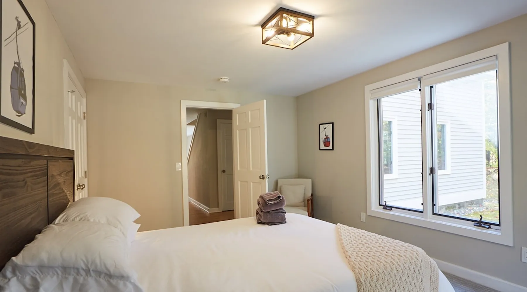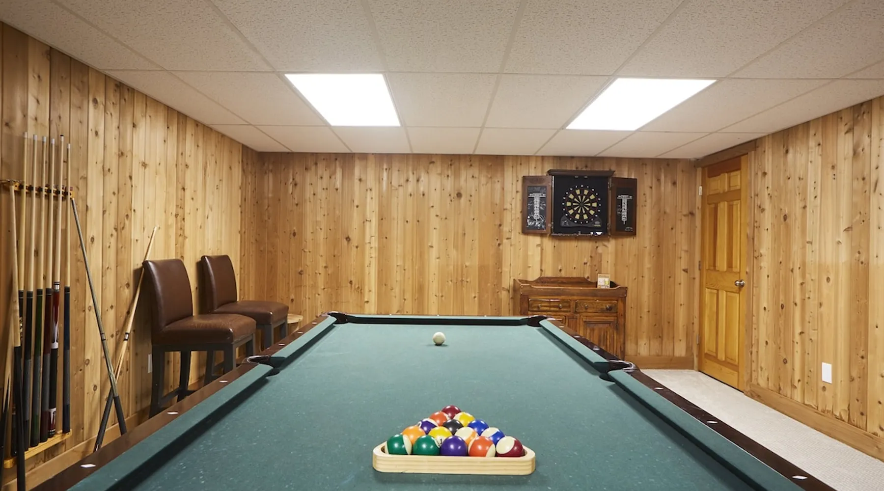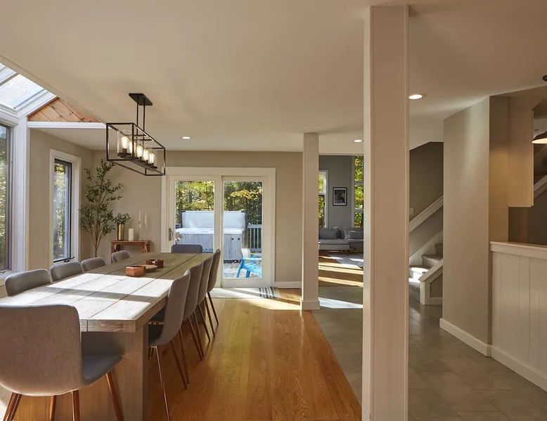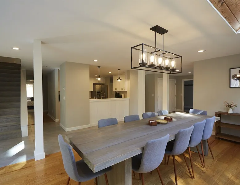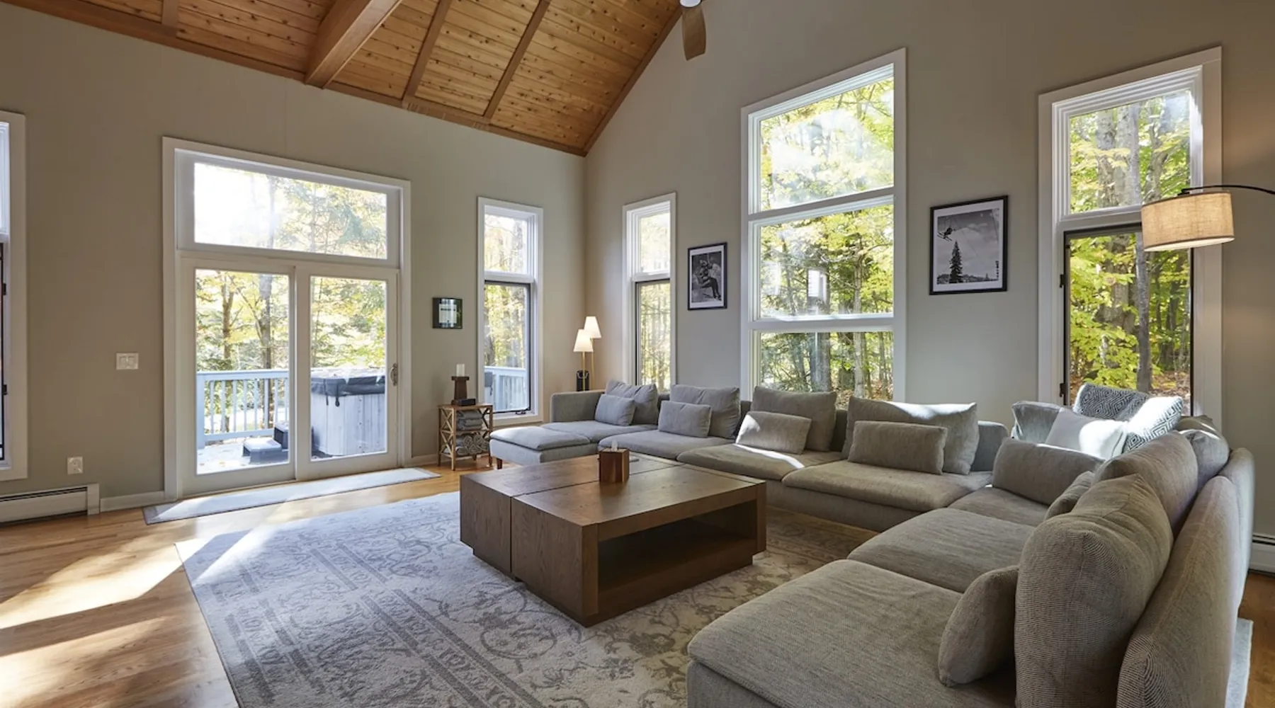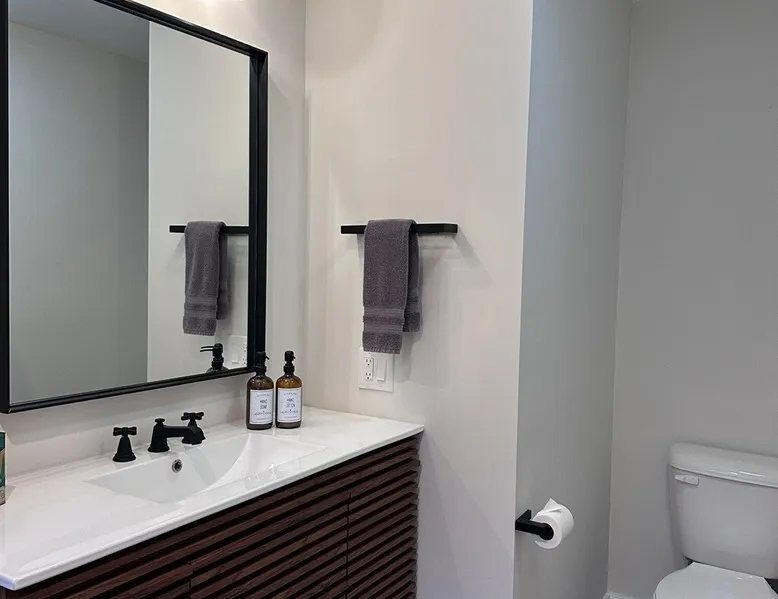 Unwind in spacious luxury at First Chair Lair, by 42 North LP! Your premier Stratton retreat: a newly renovated 5-bed, 4-bath High Meadow home. It boasts a massive living room with a striking fireplace & 86" TV for unique cozy ambiance. Towering high ceilings expand the space, and bedrooms offer privacy with generous square footage. Enjoy the deck's new hot tub & Weber grill. Dining for 12—perfect for large groups! The space First Chair Lair is your premier mountain modern retreat in Stratton's desirable High Meadow! This newly renovated 5-bedroom, 4-bathroom home is designed for the ultimate getaway, offering an expansive 4,000 sq ft of luxurious space to comfortably spread out, unwind, and make unforgettable memories. Spacious Luxury & Thoughtful Design: From the moment you step inside, you'll be enveloped in a sense of spaciousness and refined comfort. Towering high ceilings amplify the airy ambiance throughout, creating an immediate feeling of grandeur. The home's design seamlessly blends sleek, contemporary lines with warm, natural materials, embodying the quintessential mountain modern aesthetic. Every detail has been carefully considered to ensure a luxurious and comfortable stay for large groups, families, and friends alike. Unwind & Entertain on the Main Level: The heart of this home is the massive living room, truly a focal point for relaxation and connection. Gather everyone on the sprawling, oversized couch, perfectly positioned to enjoy the glow of the striking, massive fireplace and immerse yourselves in entertainment on the huge 86-inch Smart TV. From the living room, step directly onto the inviting deck, featuring a brand-new, bubbling hot tub—the perfect spot for an après-ski soak under the stars. Fire up the Weber grill for delicious outdoor meals and enjoy the fresh mountain air. The adjacent dining room comfortably seats 12, making it ideal for festive meals and memorable gatherings. Ultimate Fun in the Lower Level Recreation Zone: Descend to the lower level and discover your private entertainment hub! This dedicated recreation zone is packed with amenities to keep everyone engaged. Challenge your group to a game of billiards, show off your aim at the darts board, or dive into nostalgia with the selection of arcade games. This versatile space provides endless hours of fun, perfect for both kids and adults, offering a fantastic alternative (or addition!) to outdoor adventures. Five Bedrooms for Ultimate Privacy & Luxury Master Suite: With five meticulously designed bedrooms and four full bathrooms, First Chair Lair prioritizes your comfort and privacy. Thanks to the home's generous square footage, the bedrooms are thoughtfully spread apart across multiple levels, ensuring ample personal space for every guest. The master bedroom is truly massive, boasting cathedral ceilings that enhance its grandeur. The large master bathroom features both a sleek, modern shower and a spa-like soaking tub, creating the ultimate retreat within a retreat. Each room is a tranquil haven, featuring plush bedding and stylish decor, providing a restful escape after a day of mountain activities. Outdoor Oasis & Prime Location: Situated in the desirable High Meadow subdivision, you're just minutes from Stratton Mountain Resort, offering convenient access to skiing, snowboarding, and hiking. For ultimate convenience during the winter season, a complimentary shuttle is available to the Stratton ski area! Experience the best of Stratton living at First Chair Lair—your luxurious home away from home! Guest access Guests will enjoy private, exclusive access to the entire First Chair Lair property, ensuring a truly private and undisturbed mountain retreat. Your convenience is our priority; check-in is seamless and flexible any time after 5 PM via our easy-to-use smart lock. We'll provide you with a unique access code before your arrival, so you can settle in at your own pace. Other things to note Here are a few friendly details to help you settle in and make the most of your mountain getaway: - Your Rental Agreement: After booking, we'll send a standard rental agreement for the primary guest to sign. It's a simple step to confirm your reservation and ensure a smooth stay. - Paws Welcome: We're happy to host your well-behaved dogs! You can bring up to two pups, with a $75 nightly fee per pet. - Primary Renter Age: The primary guest must be at least 25 years old to reserve the property. - Fresh Air Inside: For everyone's comfort, smoking is not permitted anywhere on the property, indoors or out. - Hot Tub Ready: Your private hot tub is ready for relaxation! Their maintenance is included in your stay and they're professionally serviced between every visit. - Mountain Home Access: Like many authentic mountain homes, First Chair Lair has stairs to access different areas. While the path to the entrance is lit, please note the property is not wheelchair accessible. - Safety & Security: For your peace of mind, there are exterior cameras on the property. We can't wait for you to create unforgettable memories at First Chair Lair!