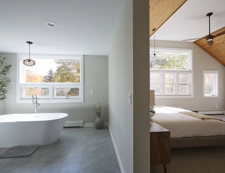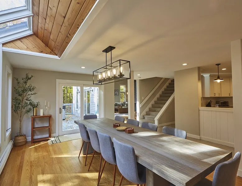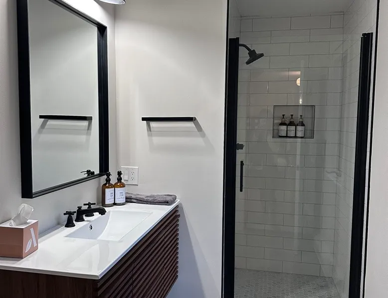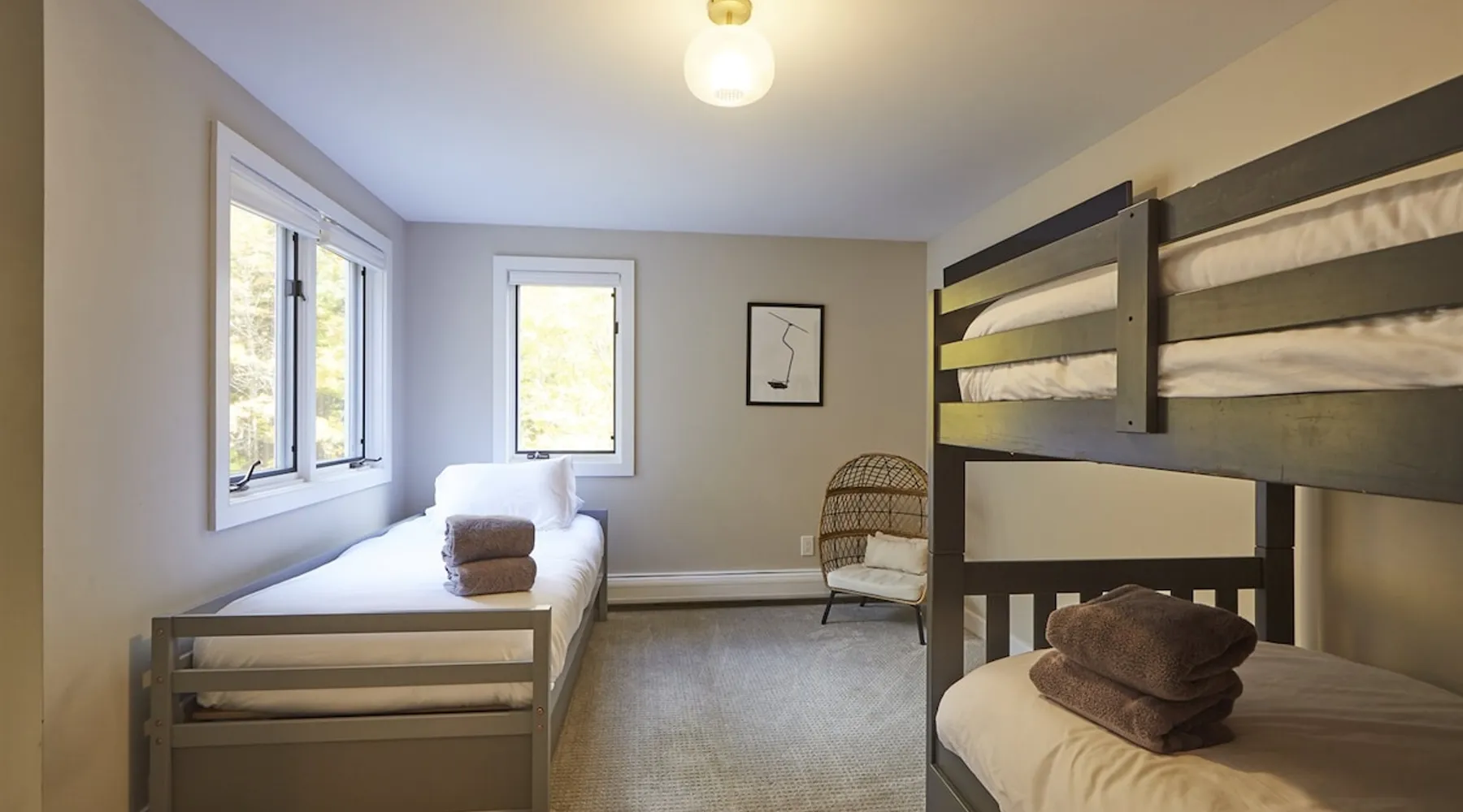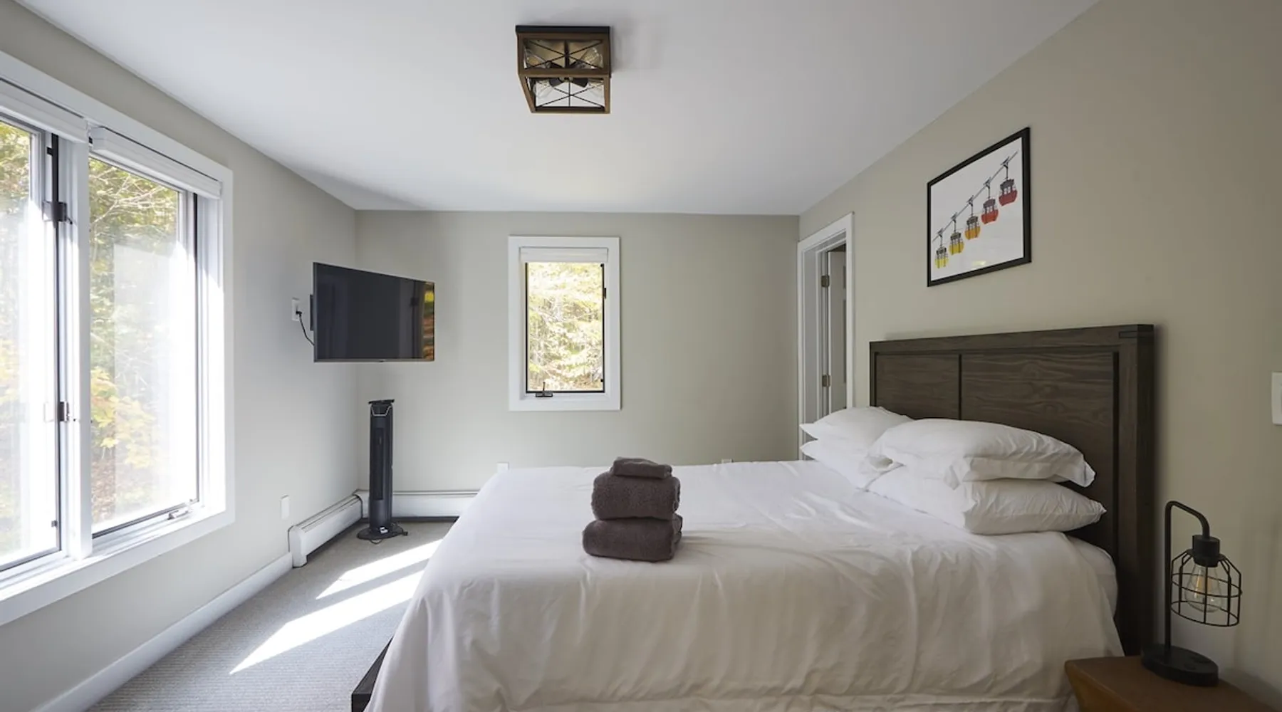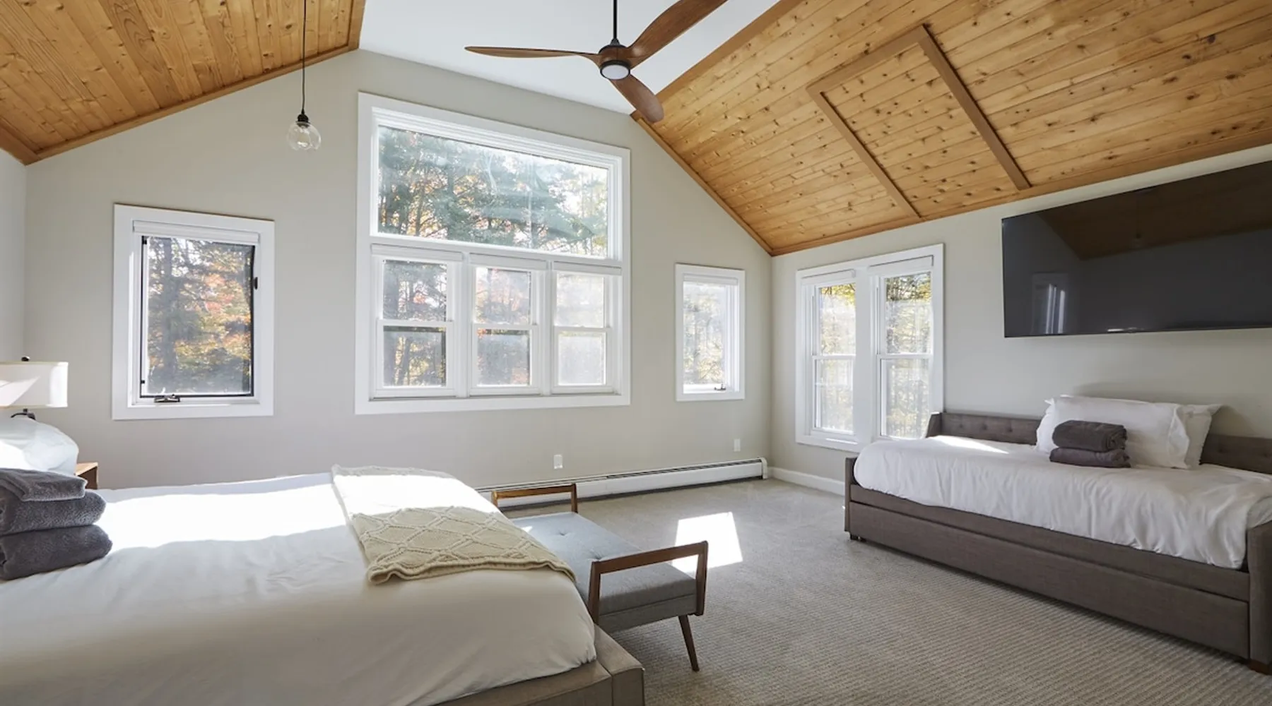 Unwind in spacious luxury at First Chair Lair, by 42 North LP! Your premier Stratton retreat: a newly renovated 5-bed, 4-bath High Meadow home. It boasts a massive living room with a striking fireplace & 86" TV for unique cozy ambiance. Towering high ceilings expand the space, and bedrooms offer privacy with generous square footage. Enjoy the deck's new hot tub & Weber grill. Dining for 12—perfect for large groups! The space First Chair Lair is your premier mountain modern retreat in Stratton's desirable High Meadow! This newly renovated 5-bedroom, 4-bathroom home is designed for the ultimate getaway, offering an expansive 4,000 sq ft of luxurious space to comfortably spread out, unwind, and make unforgettable memories. Spacious Luxury & Thoughtful Design: From the moment you step inside, you'll be enveloped in a sense of spaciousness and refined comfort. Towering high ceilings amplify the airy ambiance throughout, creating an immediate feeling of grandeur. The home's design seamlessly blends sleek, contemporary lines with warm, natural materials, embodying the quintessential mountain modern aesthetic. Every detail has been carefully considered to ensure a luxurious and comfortable stay for large groups, families, and friends alike. Unwind & Entertain on the Main Level: The heart of this home is the massive living room, truly a focal point for relaxation and connection. Gather everyone on the sprawling, oversized couch, perfectly positioned to enjoy the glow of the striking, massive fireplace and immerse yourselves in entertainment on the huge 86-inch Smart TV. From the living room, step directly onto the inviting deck, featuring a brand-new, bubbling hot tub—the perfect spot for an après-ski soak under the stars. Fire up the Weber grill for delicious outdoor meals and enjoy the fresh mountain air. The adjacent dining room comfortably seats 12, making it ideal for festive meals and memorable gatherings. Ultimate Fun in the Lower Level Recreation Zone: Descend to the lower level and discover your private entertainment hub! This dedicated recreation zone is packed with amenities to keep everyone engaged. Challenge your group to a game of billiards, show off your aim at the darts board, or dive into nostalgia with the selection of arcade games. This versatile space provides endless hours of fun, perfect for both kids and adults, offering a fantastic alternative (or addition!) to outdoor adventures. Five Bedrooms for Ultimate Privacy & Luxury Master Suite: With five meticulously designed bedrooms and four full bathrooms, First Chair Lair prioritizes your comfort and privacy. Thanks to the home's generous square footage, the bedrooms are thoughtfully spread apart across multiple levels, ensuring ample personal space for every guest. The master bedroom is truly massive, boasting cathedral ceilings that enhance its grandeur. The large master bathroom features both a sleek, modern shower and a spa-like soaking tub, creating the ultimate retreat within a retreat. Each room is a tranquil haven, featuring plush bedding and stylish decor, providing a restful escape after a day of mountain activities. Outdoor Oasis & Prime Location: Situated in the desirable High Meadow subdivision, you're just minutes from Stratton Mountain Resort, offering convenient access to skiing, snowboarding, and hiking. For ultimate convenience during the winter season, a complimentary shuttle is available to the Stratton ski area! Experience the best of Stratton living at First Chair Lair—your luxurious home away from home! Guest access Guests will enjoy private, exclusive access to the entire First Chair Lair property, ensuring a truly private and undisturbed mountain retreat. Your convenience is our priority; check-in is seamless and flexible any time after 5 PM via our easy-to-use smart lock. We'll provide you with a unique access code before your arrival, so you can settle in at your own pace. Other things to note Here are a few friendly details to help you settle in and make the most of your mountain getaway: - Your Rental Agreement: After booking, we'll send a standard rental agreement for the primary guest to sign. It's a simple step to confirm your reservation and ensure a smooth stay. - Paws Welcome: We're happy to host your well-behaved dogs! You can bring up to two pups, with a $75 nightly fee per pet. - Primary Renter Age: The primary guest must be at least 25 years old to reserve the property. - Fresh Air Inside: For everyone's comfort, smoking is not permitted anywhere on the property, indoors or out. - Hot Tub Ready: Your private hot tub is ready for relaxation! Their maintenance is included in your stay and they're professionally serviced between every visit. - Mountain Home Access: Like many authentic mountain homes, First Chair Lair has stairs to access different areas. While the path to the entrance is lit, please note the property is not wheelchair accessible. - Safety & Security: For your peace of mind, there are exterior cameras on the property. We can't wait for you to create unforgettable memories at First Chair Lair!