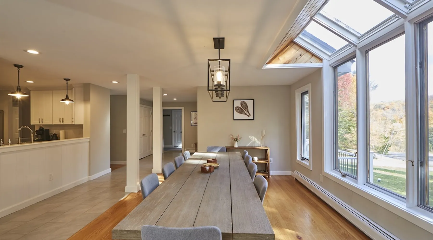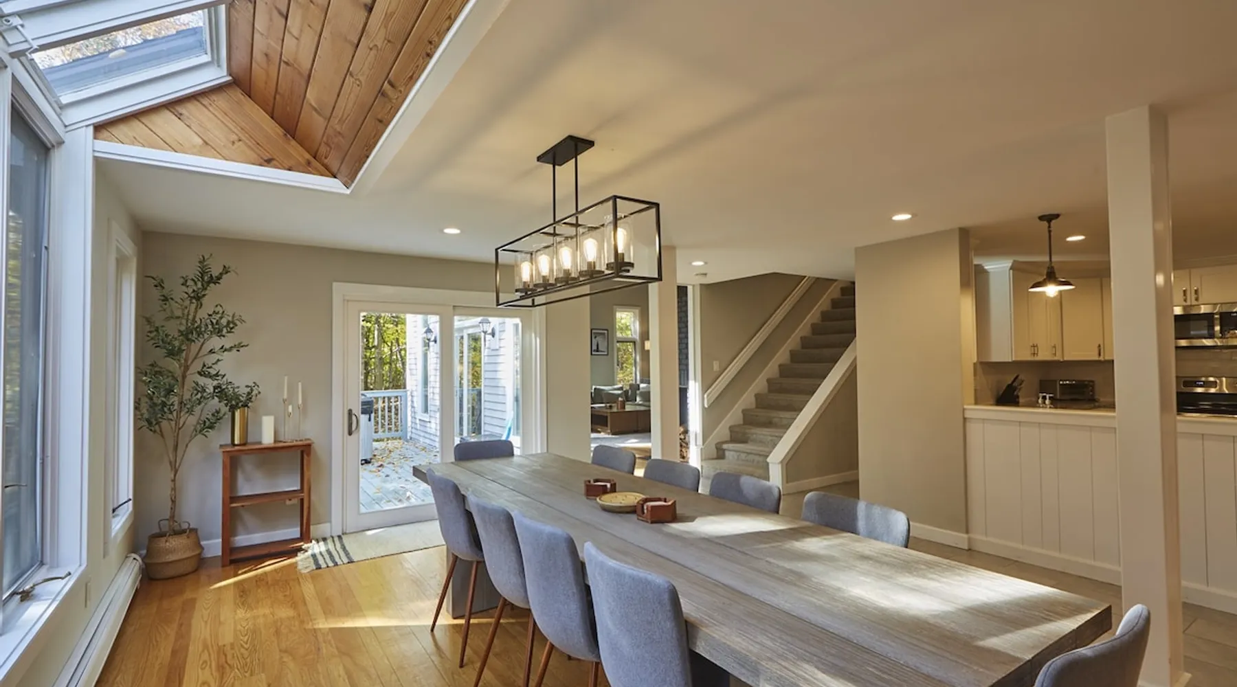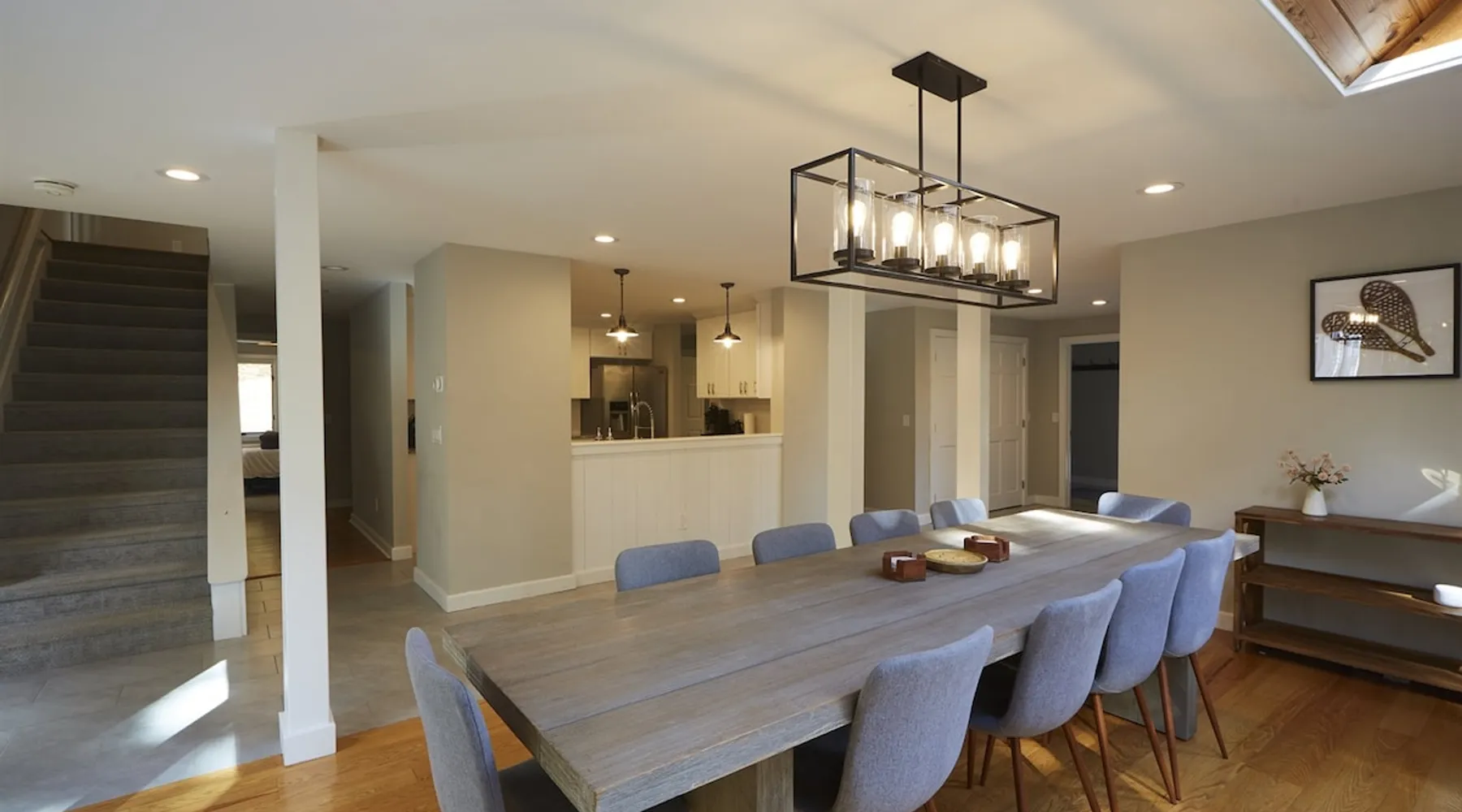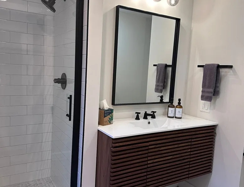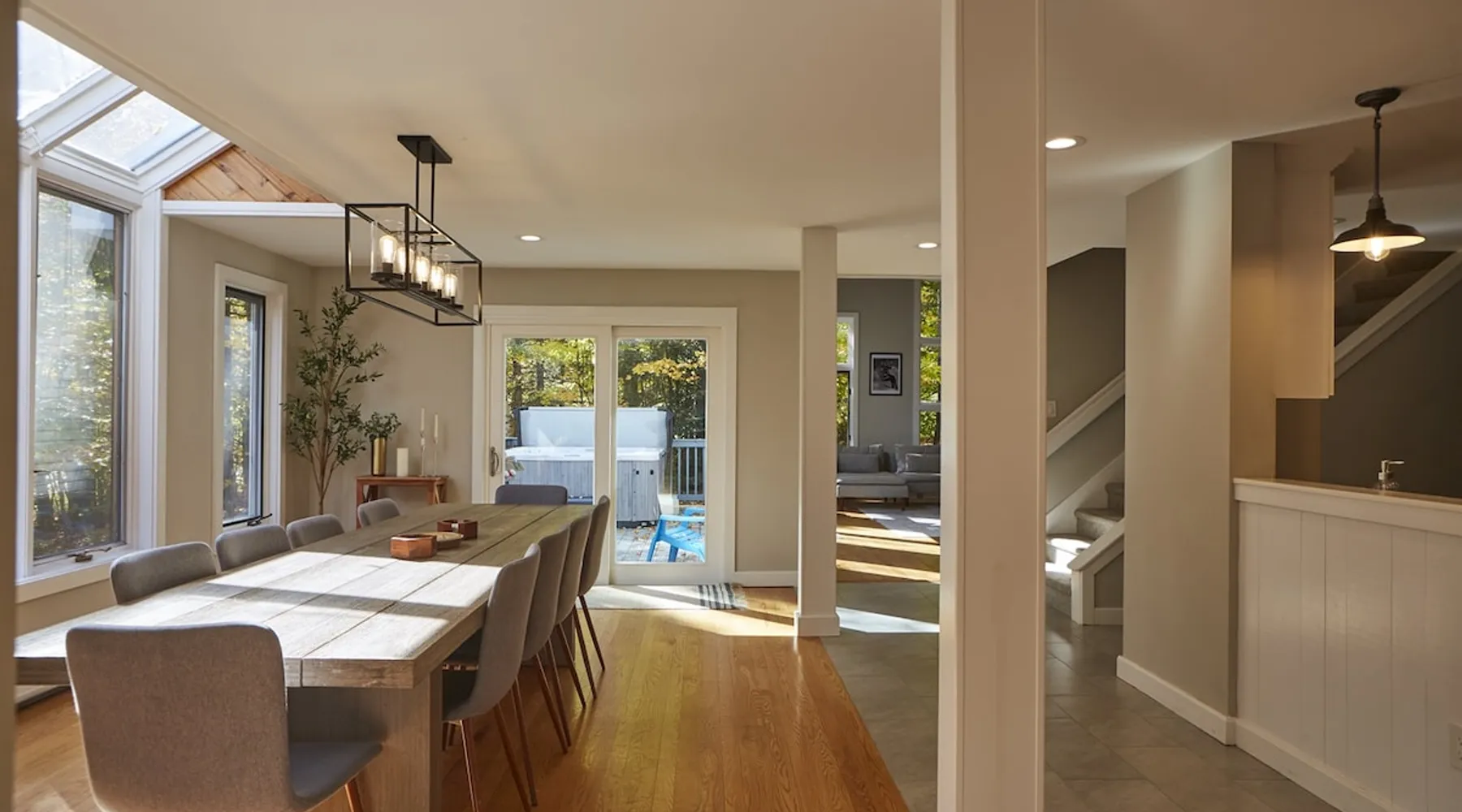 Unwind in spacious luxury at First Chair Lair, by 42 North LP! Your premier Stratton retreat: a newly renovated 5-bed, 4-bath High Meadow home. It boasts a massive living room with a striking fireplace & 86" TV for unique cozy ambiance. Towering high ceilings expand the space, and bedrooms offer privacy with generous square footage. Enjoy the deck's new hot tub & Weber grill. Dining for 12—perfect for large groups! The space First Chair Lair is your premier mountain modern retreat in Stratton's desirable High Meadow! This newly renovated 5-bedroom, 4-bathroom home is designed for the ultimate getaway, offering an expansive 4,000 sq ft of luxurious space to comfortably spread out, unwind, and make unforgettable memories. Spacious Luxury & Thoughtful Design: From the moment you step inside, you'll be enveloped in a sense of spaciousness and refined comfort. Towering high ceilings amplify the airy ambiance throughout, creating an immediate feeling of grandeur. The home's design seamlessly blends sleek, contemporary lines with warm, natural materials, embodying the quintessential mountain modern aesthetic. Every detail has been carefully considered to ensure a luxurious and comfortable stay for large groups, families, and friends alike. Unwind & Entertain on the Main Level: The heart of this home is the massive living room, truly a focal point for relaxation and connection. Gather everyone on the sprawling, oversized couch, perfectly positioned to enjoy the glow of the striking, massive fireplace and immerse yourselves in entertainment on the huge 86-inch Smart TV. From the living room, step directly onto the inviting deck, featuring a brand-new, bubbling hot tub—the perfect spot for an après-ski soak under the stars. Fire up the Weber grill for delicious outdoor meals and enjoy the fresh mountain air. The adjacent dining room comfortably seats 12, making it ideal for festive meals and memorable gatherings. Ultimate Fun in the Lower Level Recreation Zone: Descend to the lower level and discover your private entertainment hub! This dedicated recreation zone is packed with amenities to keep everyone engaged. Challenge your group to a game of billiards, show off your aim at the darts board, or dive into nostalgia with the selection of arcade games. This versatile space provides endless hours of fun, perfect for both kids and adults, offering a fantastic alternative (or addition!) to outdoor adventures. Five Bedrooms for Ultimate Privacy & Luxury Master Suite: With five meticulously designed bedrooms and four full bathrooms, First Chair Lair prioritizes your comfort and privacy. Thanks to the home's generous square footage, the bedrooms are thoughtfully spread apart across multiple levels, ensuring ample personal space for every guest. The master bedroom is truly massive, boasting cathedral ceilings that enhance its grandeur. The large master bathroom features both a sleek, modern shower and a spa-like soaking tub, creating the ultimate retreat within a retreat. Each room is a tranquil haven, featuring plush bedding and stylish decor, providing a restful escape after a day of mountain activities. Outdoor Oasis & Prime Location: Situated in the desirable High Meadow subdivision, you're just minutes from Stratton Mountain Resort, offering convenient access to skiing, snowboarding, and hiking. For ultimate convenience during the winter season, a complimentary shuttle is available to the Stratton ski area! Experience the best of Stratton living at First Chair Lair—your luxurious home away from home! Guest access Guests will enjoy private, exclusive access to the entire First Chair Lair property, ensuring a truly private and undisturbed mountain retreat. Your convenience is our priority; check-in is seamless and flexible any time after 5 PM via our easy-to-use smart lock. We'll provide you with a unique access code before your arrival, so you can settle in at your own pace. Other things to note Here are a few friendly details to help you settle in and make the most of your mountain getaway: - Your Rental Agreement: After booking, we'll send a standard rental agreement for the primary guest to sign. It's a simple step to confirm your reservation and ensure a smooth stay. - Paws Welcome: We're happy to host your well-behaved dogs! You can bring up to two pups, with a $75 nightly fee per pet. - Primary Renter Age: The primary guest must be at least 25 years old to reserve the property. - Fresh Air Inside: For everyone's comfort, smoking is not permitted anywhere on the property, indoors or out. - Hot Tub Ready: Your private hot tub is ready for relaxation! Their maintenance is included in your stay and they're professionally serviced between every visit. - Mountain Home Access: Like many authentic mountain homes, First Chair Lair has stairs to access different areas. While the path to the entrance is lit, please note the property is not wheelchair accessible. - Safety & Security: For your peace of mind, there are exterior cameras on the property. We can't wait for you to create unforgettable memories at First Chair Lair!