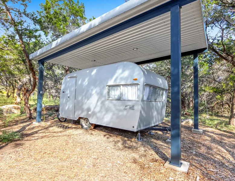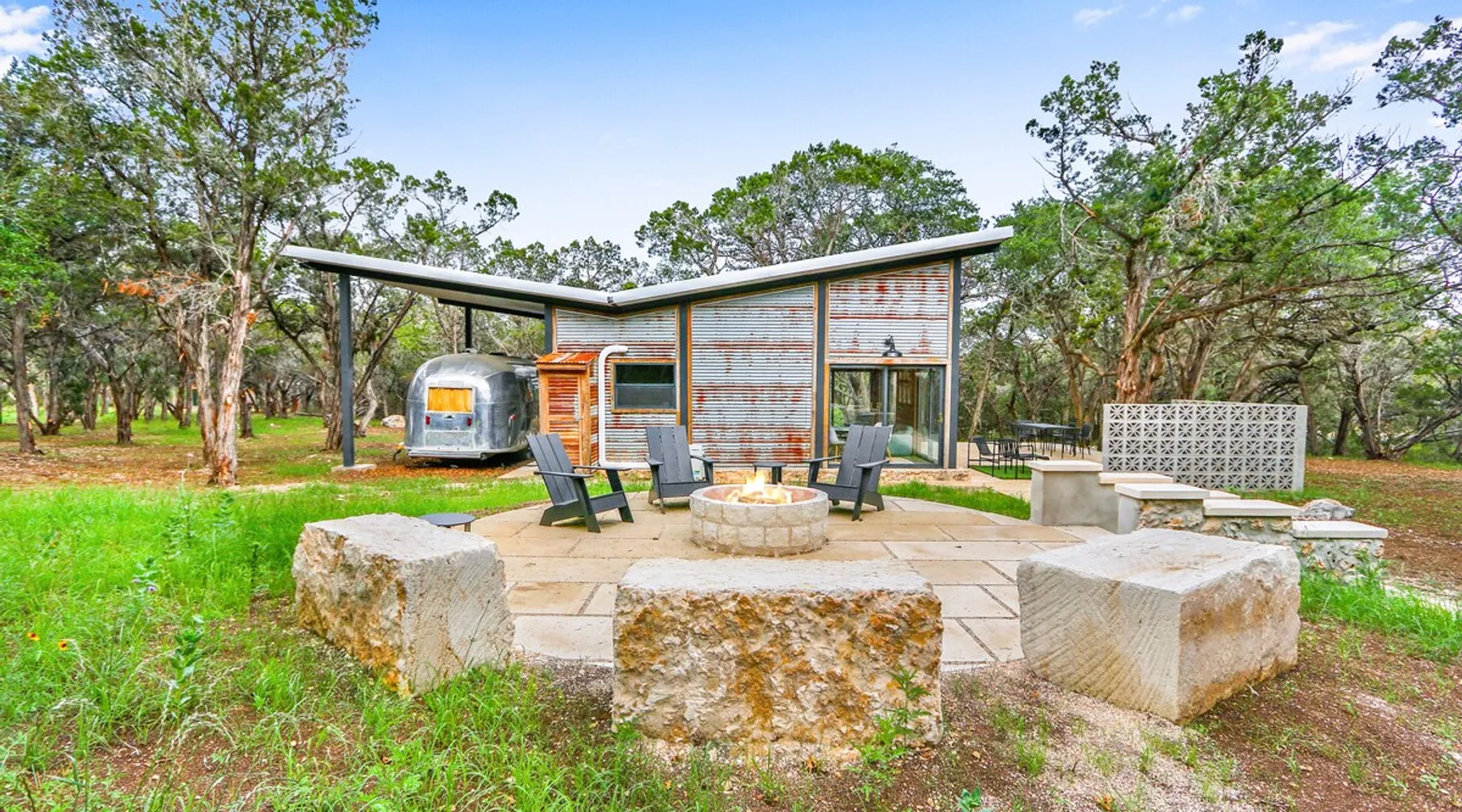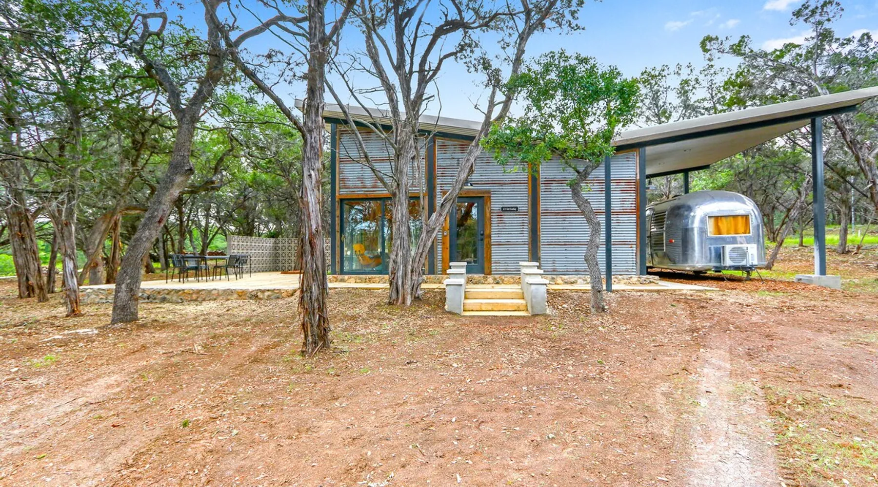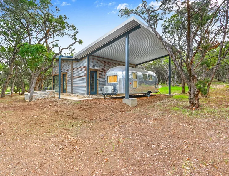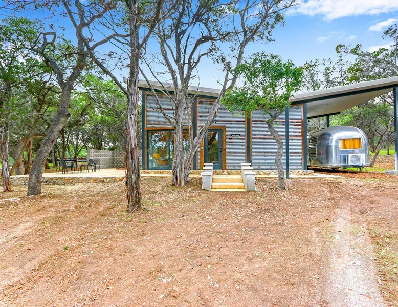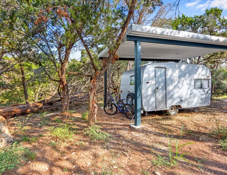 Embrace the whimsical and earthy charm of Wild Candy Farm - L’il Dirt Cowboy, a truly one of a kind boutique glamping experience nestled in the vibrant heart of Wimberley, Texas and located on a working farm. Perfect for adventurers and nature lovers alike, this enchanting rental accommodates up to 4 guests, offering a one-of-a-kind stay with two beautifully restored vintage Airstreams as bedrooms. Please note: The RVs at Wild Candy Farms are vintage units with lots of character! While they’re The space Guests have access to the L'il Dirt Candy unit as well as the outdoor common areas and amenities of the property. From Mitch and Tracey Cutler, the people who brought you La Fondue Restaurant in Silicon Valley, a New York Times Top 100 Restaurant in America Award Winner, now presents a new property to experience! Embrace the whimsical and earthy charm of Wild Candy Farm - L’il Dirt Cowboy, a truly one of a kind boutique glamping experience nestled in the vibrant heart of Wimberley, Texas and located on a working farm. Perfect for adventurers and nature lovers alike, this enchanting rental accommodates up to 2 guests, offering a one-of-a-kind stay with a beautifully restored vintage Airstream as the bedroom. Discover the most private lodging location on the Farm, surrounded by the serenity of a 51-acre wildlife preserve near Jacob’s Well. The master bedroom, located in a restored vintage 1964 Airstream, features a luxuriously appointed Queen Bed, a separate air conditioning unit, and a cozy seating area. This airstream is thoughtfully placed under the building’s roof, providing shelter from the elements while retaining its vintage charm. The freestanding living space structure offers a harmonious blend of comfort and functionality. The interior boasts a complete “Design Within Reach” styling, featuring an original Eames chair and a boutique kitchen. Unique art from the owner’s personal collection adorns the walls, adding a touch of whimsy and character to the space. Enjoy a full bath with a shower/tub combo, along with a stackable full-sized washer and dryer. Large windows bathe the area in natural light, complementing the comfortable sitting area with a streaming TV. A dining area for 4 and high-speed internet make it easy to relax and stay connected. The full kitchen features a farmhouse sink, full-sized refrigerator, electric range and oven, microwave, coffee pot, and beautiful tile accents. Step outside to your private patio, equipped with lounge chairs and an outdoor dining set. Enjoy unobstructed views of the picturesque landscape, relax by the fire ring with seating, and benefit from dedicated parking for up to two cars. Explore the shared amenities exclusive to guests at Wild Candy Farm, including a peaceful wet weather creek, the Lake with a dock and seating, and hiking on the scenic “Dry Cypress Trail.” Delight in a range of activities on the Farm. Visit the Grove or the Farm Stand to purchase fresh, seasonal produce. Enjoy a bike ride along the 'Cowboy Take Me Away Trail,” just a quarter-mile away, with detailed routes available on “Trek Great Rides.” Wild Candy Farm proudly holds several environmental certifications: Texas Certified Firefly Habitat, Texas Certified Wildlife Management Property, Texas Certified Wildlife Habitat and Texas Certified Endangered Species Protection for Migratory Songbirds, 1-D-1. These accolades reflect our deep commitment to preserving the magic and wonder of our natural surroundings. Wimberley is a treasure trove of activities and natural beauty. Dive into the cool, clear waters of Jacob’s Well, explore local shops and eateries, or embark on a scenic hike through the Hill Country. Whether you’re seeking adventure or tranquility, Wild Candy Farm - L’il Dirt Cowboy is your gateway to unforgettable memories. Plan your visit: * Walk 100 feet through the Cedar trees to access the Lake * Our private 1.25 acre lake is ready for your 'Rod and Reel' for a guaranteed catch of LM Bass, Striped Bass, Blue Nose, Redear and Tilapia! 'Catch and Release' knowing every fish stays to swim another day! * No Pets (Farm dogs roam the property) * No Campfires during burn bans* Bring your Paddle Boards and River Inner Tubes for daily Lake floating! Please note – Rates are based on the number of guests entered in the reservation quote – any additional guests may incur additional charges. The occupancy listed is the max occupancy this property can accommodate. Other things to note House Rules: -The occupancy listed is the max occupancy this property can accommodate -Enter the number correct number of guests for an accurate quote - additional guest fees may apply -Guests must be 25 years of age or older to book -Guests must complete a rental agreement prior to receiving check in instructions -No smoking or vaping allowed inside -No parties or day guests are allowed -No shooting of any kind is allowed on the property -No outdoor fires are allowed unless there is a designated fire pit and there is not a burn ban in effect. -No fireworks are allowed -Quiet hours are from 9 pm to 8 am