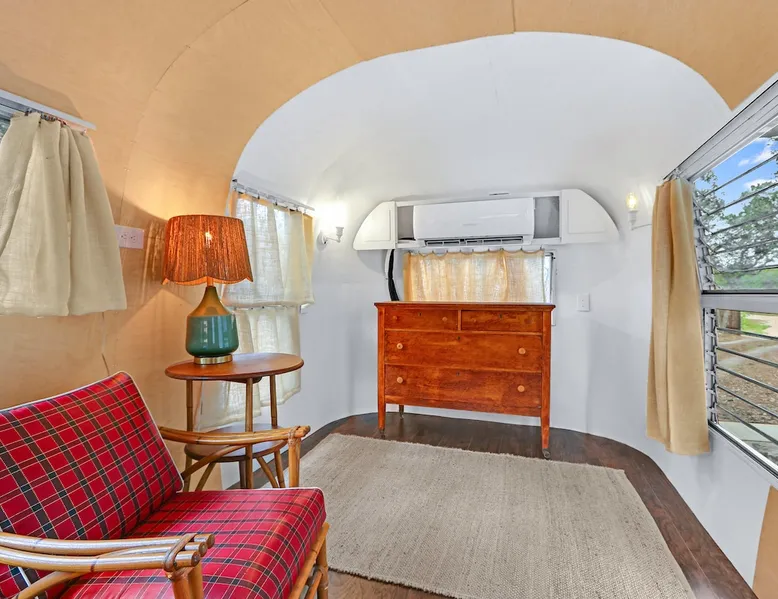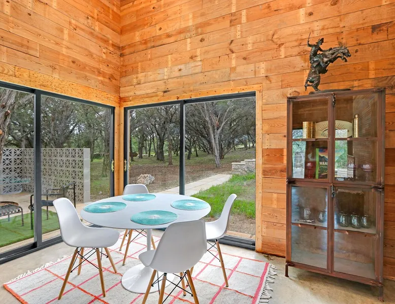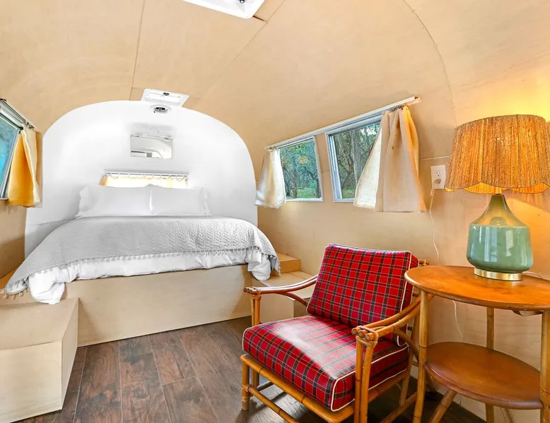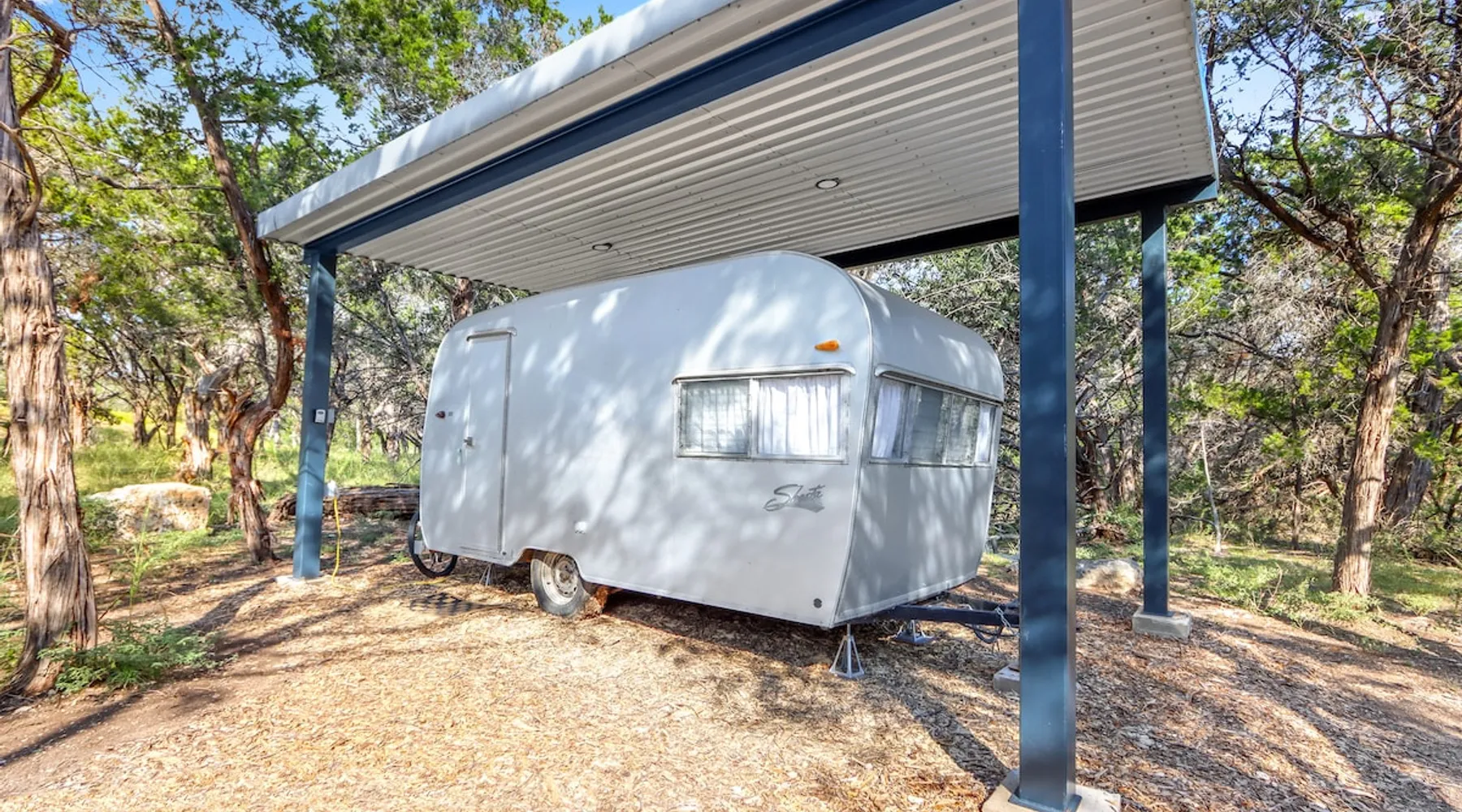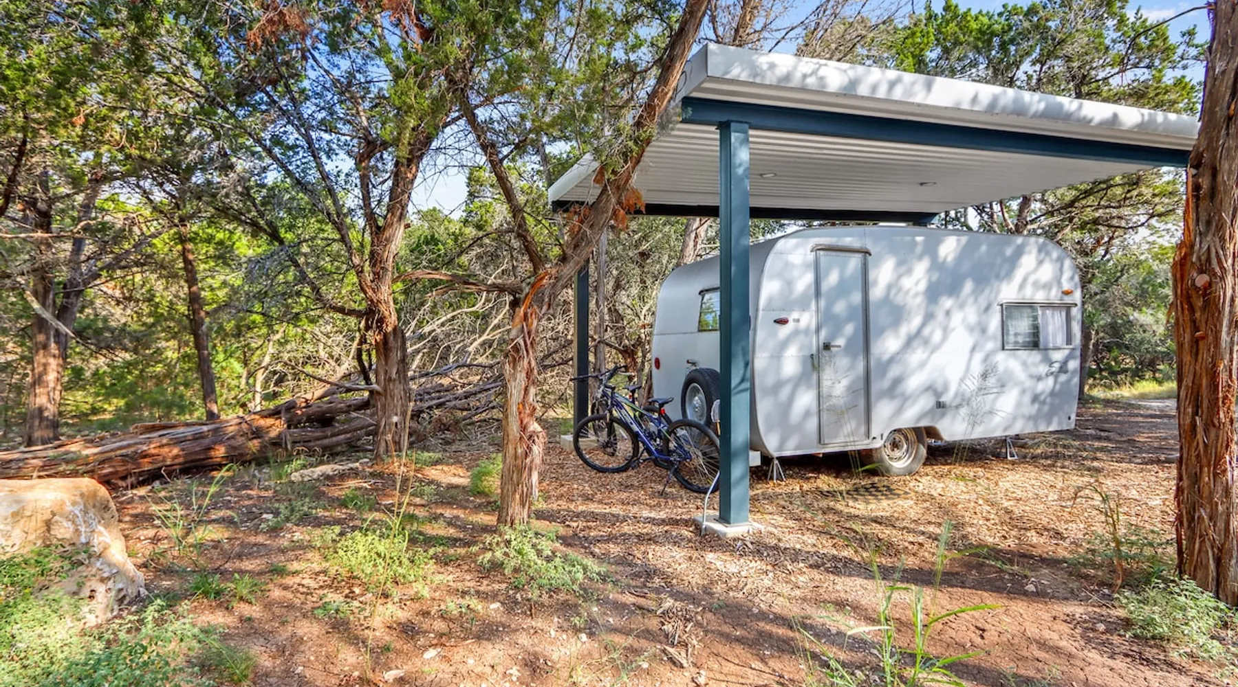Embrace the whimsical and earthy charm of Wild Candy Farm - L’il Dirt Cowboy, a truly one of a kind boutique glamping experience nestled in the vibrant heart of Wimberley, Texas and located on a working farm. Perfect for adventurers and nature lovers alike, this enchanting rental accommodates up to 4 guests, offering a one-of-a-kind stay with two beautifully restored vintage Airstreams as bedrooms. Please note: The RVs at Wild Candy Farms are vintage units with lots of character! While they’re The space Guests have access to the L'il Dirt Candy unit as well as the outdoor common areas and amenities of the property. From Mitch and Tracey Cutler, the people who brought you La Fondue Restaurant in Silicon Valley, a New York Times Top 100 Restaurant in America Award Winner, now presents a new property to experience! Embrace the whimsical and earthy charm of Wild Candy Farm - L’il Dirt Cowboy, a truly one of a kind boutique glamping experience nestled in the vibrant heart of Wimberley, Texas and located on a working farm. Perfect for adventurers and nature lovers alike, this enchanting rental accommodates up to 2 guests, offering a one-of-a-kind stay with a beautifully restored vintage Airstream as the bedroom. Discover the most private lodging location on the Farm, surrounded by the serenity of a 51-acre wildlife preserve near Jacob’s Well. The master bedroom, located in a restored vintage 1964 Airstream, features a luxuriously appointed Queen Bed, a separate air conditioning unit, and a cozy seating area. This airstream is thoughtfully placed under the building’s roof, providing shelter from the elements while retaining its vintage charm. The freestanding living space structure offers a harmonious blend of comfort and functionality. The interior boasts a complete “Design Within Reach” styling, featuring an original Eames chair and a boutique kitchen. Unique art from the owner’s personal collection adorns the walls, adding a touch of whimsy and character to the space. Enjoy a full bath with a shower/tub combo, along with a stackable full-sized washer and dryer. Large windows bathe the area in natural light, complementing the comfortable sitting area with a streaming TV. A dining area for 4 and high-speed internet make it easy to relax and stay connected. The full kitchen features a farmhouse sink, full-sized refrigerator, electric range and oven, microwave, coffee pot, and beautiful tile accents. Step outside to your private patio, equipped with lounge chairs and an outdoor dining set. Enjoy unobstructed views of the picturesque landscape, relax by the fire ring with seating, and benefit from dedicated parking for up to two cars. Explore the shared amenities exclusive to guests at Wild Candy Farm, including a peaceful wet weather creek, the Lake with a dock and seating, and hiking on the scenic “Dry Cypress Trail.” Delight in a range of activities on the Farm. Visit the Grove or the Farm Stand to purchase fresh, seasonal produce. Enjoy a bike ride along the 'Cowboy Take Me Away Trail,” just a quarter-mile away, with detailed routes available on “Trek Great Rides.” Wild Candy Farm proudly holds several environmental certifications: Texas Certified Firefly Habitat, Texas Certified Wildlife Management Property, Texas Certified Wildlife Habitat and Texas Certified Endangered Species Protection for Migratory Songbirds, 1-D-1. These accolades reflect our deep commitment to preserving the magic and wonder of our natural surroundings. Wimberley is a treasure trove of activities and natural beauty. Dive into the cool, clear waters of Jacob’s Well, explore local shops and eateries, or embark on a scenic hike through the Hill Country. Whether you’re seeking adventure or tranquility, Wild Candy Farm - L’il Dirt Cowboy is your gateway to unforgettable memories. Plan your visit: * Walk 100 feet through the Cedar trees to access the Lake * Our private 1.25 acre lake is ready for your 'Rod and Reel' for a guaranteed catch of LM Bass, Striped Bass, Blue Nose, Redear and Tilapia! 'Catch and Release' knowing every fish stays to swim another day! * No Pets (Farm dogs roam the property) * No Campfires during burn bans* Bring your Paddle Boards and River Inner Tubes for daily Lake floating! Please note – Rates are based on the number of guests entered in the reservation quote – any additional guests may incur additional charges. The occupancy listed is the max occupancy this property can accommodate. Other things to note House Rules: -The occupancy listed is the max occupancy this property can accommodate -Enter the number correct number of guests for an accurate quote - additional guest fees may apply -Guests must be 25 years of age or older to book -Guests must complete a rental agreement prior to receiving check in instructions -No smoking or vaping allowed inside -No parties or day guests are allowed -No shooting of any kind is allowed on the property -No outdoor fires are allowed unless there is a designated fire pit and there is not a burn ban in effect. -No fireworks are allowed -Quiet hours are from 9 pm to 8 am