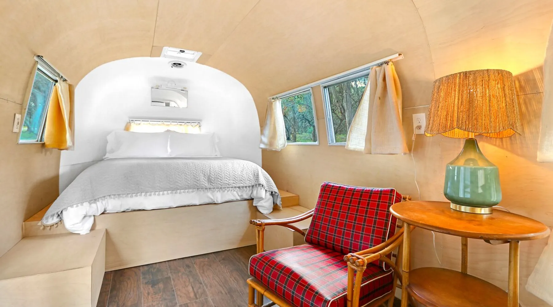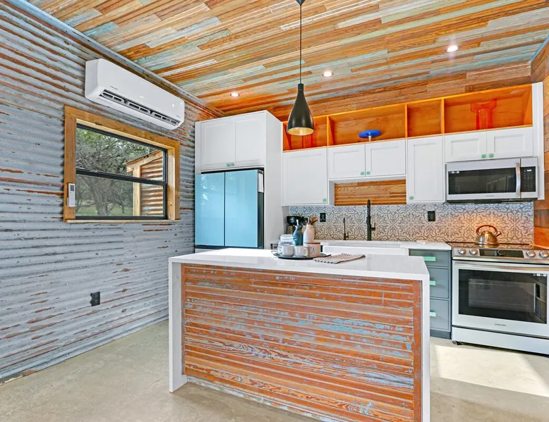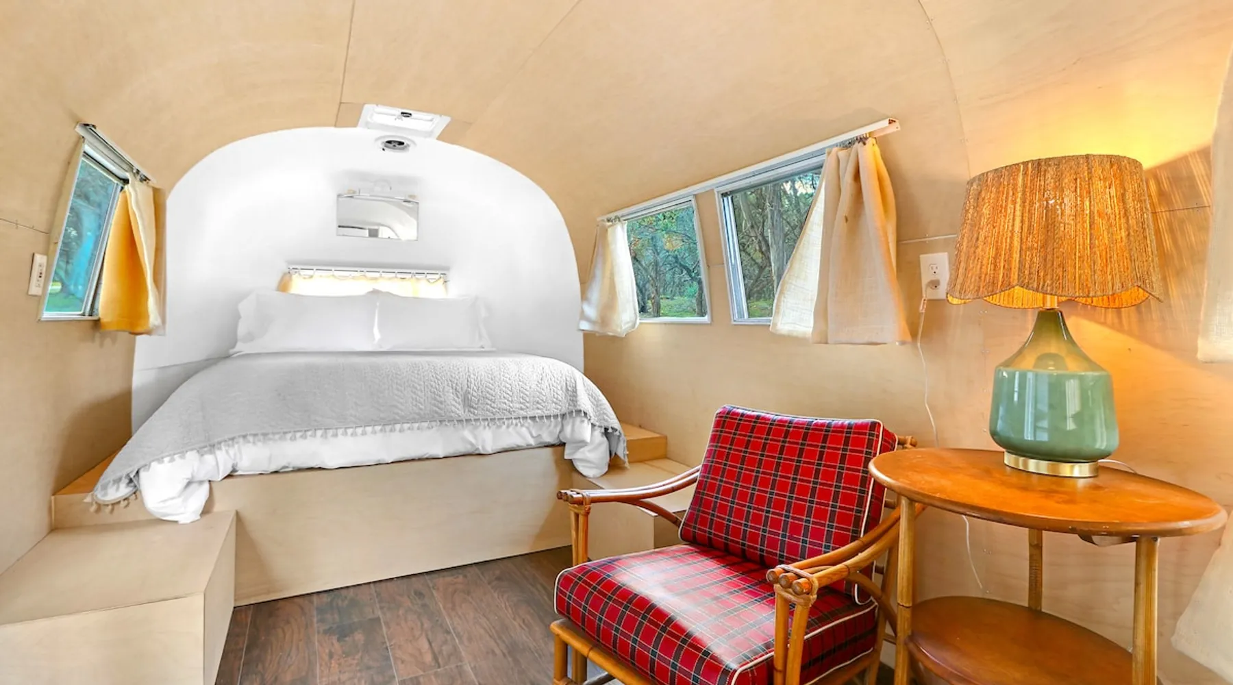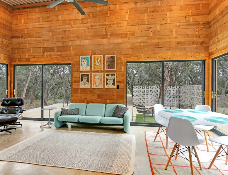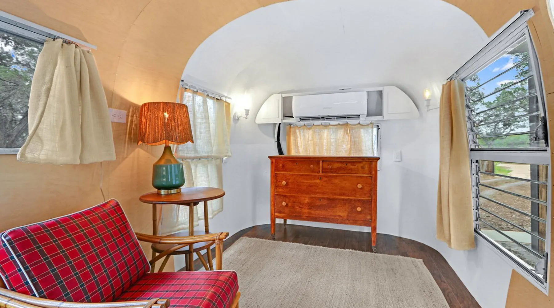 Embrace the whimsical and earthy charm of Wild Candy Farm - L’il Dirt Cowboy, a truly one of a kind boutique glamping experience nestled in the vibrant heart of Wimberley, Texas and located on a working farm. Perfect for adventurers and nature lovers alike, this enchanting rental accommodates up to 4 guests, offering a one-of-a-kind stay with two beautifully restored vintage Airstreams as bedrooms. Please note: The RVs at Wild Candy Farms are vintage units with lots of character! While they’re The space Guests have access to the L'il Dirt Candy unit as well as the outdoor common areas and amenities of the property. From Mitch and Tracey Cutler, the people who brought you La Fondue Restaurant in Silicon Valley, a New York Times Top 100 Restaurant in America Award Winner, now presents a new property to experience! Embrace the whimsical and earthy charm of Wild Candy Farm - L’il Dirt Cowboy, a truly one of a kind boutique glamping experience nestled in the vibrant heart of Wimberley, Texas and located on a working farm. Perfect for adventurers and nature lovers alike, this enchanting rental accommodates up to 2 guests, offering a one-of-a-kind stay with a beautifully restored vintage Airstream as the bedroom. Discover the most private lodging location on the Farm, surrounded by the serenity of a 51-acre wildlife preserve near Jacob’s Well. The master bedroom, located in a restored vintage 1964 Airstream, features a luxuriously appointed Queen Bed, a separate air conditioning unit, and a cozy seating area. This airstream is thoughtfully placed under the building’s roof, providing shelter from the elements while retaining its vintage charm. The freestanding living space structure offers a harmonious blend of comfort and functionality. The interior boasts a complete “Design Within Reach” styling, featuring an original Eames chair and a boutique kitchen. Unique art from the owner’s personal collection adorns the walls, adding a touch of whimsy and character to the space. Enjoy a full bath with a shower/tub combo, along with a stackable full-sized washer and dryer. Large windows bathe the area in natural light, complementing the comfortable sitting area with a streaming TV. A dining area for 4 and high-speed internet make it easy to relax and stay connected. The full kitchen features a farmhouse sink, full-sized refrigerator, electric range and oven, microwave, coffee pot, and beautiful tile accents. Step outside to your private patio, equipped with lounge chairs and an outdoor dining set. Enjoy unobstructed views of the picturesque landscape, relax by the fire ring with seating, and benefit from dedicated parking for up to two cars. Explore the shared amenities exclusive to guests at Wild Candy Farm, including a peaceful wet weather creek, the Lake with a dock and seating, and hiking on the scenic “Dry Cypress Trail.” Delight in a range of activities on the Farm. Visit the Grove or the Farm Stand to purchase fresh, seasonal produce. Enjoy a bike ride along the 'Cowboy Take Me Away Trail,” just a quarter-mile away, with detailed routes available on “Trek Great Rides.” Wild Candy Farm proudly holds several environmental certifications: Texas Certified Firefly Habitat, Texas Certified Wildlife Management Property, Texas Certified Wildlife Habitat and Texas Certified Endangered Species Protection for Migratory Songbirds, 1-D-1. These accolades reflect our deep commitment to preserving the magic and wonder of our natural surroundings. Wimberley is a treasure trove of activities and natural beauty. Dive into the cool, clear waters of Jacob’s Well, explore local shops and eateries, or embark on a scenic hike through the Hill Country. Whether you’re seeking adventure or tranquility, Wild Candy Farm - L’il Dirt Cowboy is your gateway to unforgettable memories. Plan your visit: * Walk 100 feet through the Cedar trees to access the Lake * Our private 1.25 acre lake is ready for your 'Rod and Reel' for a guaranteed catch of LM Bass, Striped Bass, Blue Nose, Redear and Tilapia! 'Catch and Release' knowing every fish stays to swim another day! * No Pets (Farm dogs roam the property) * No Campfires during burn bans* Bring your Paddle Boards and River Inner Tubes for daily Lake floating! Please note – Rates are based on the number of guests entered in the reservation quote – any additional guests may incur additional charges. The occupancy listed is the max occupancy this property can accommodate. Other things to note House Rules: -The occupancy listed is the max occupancy this property can accommodate -Enter the number correct number of guests for an accurate quote - additional guest fees may apply -Guests must be 25 years of age or older to book -Guests must complete a rental agreement prior to receiving check in instructions -No smoking or vaping allowed inside -No parties or day guests are allowed -No shooting of any kind is allowed on the property -No outdoor fires are allowed unless there is a designated fire pit and there is not a burn ban in effect. -No fireworks are allowed -Quiet hours are from 9 pm to 8 am