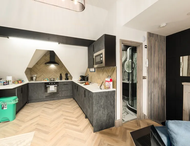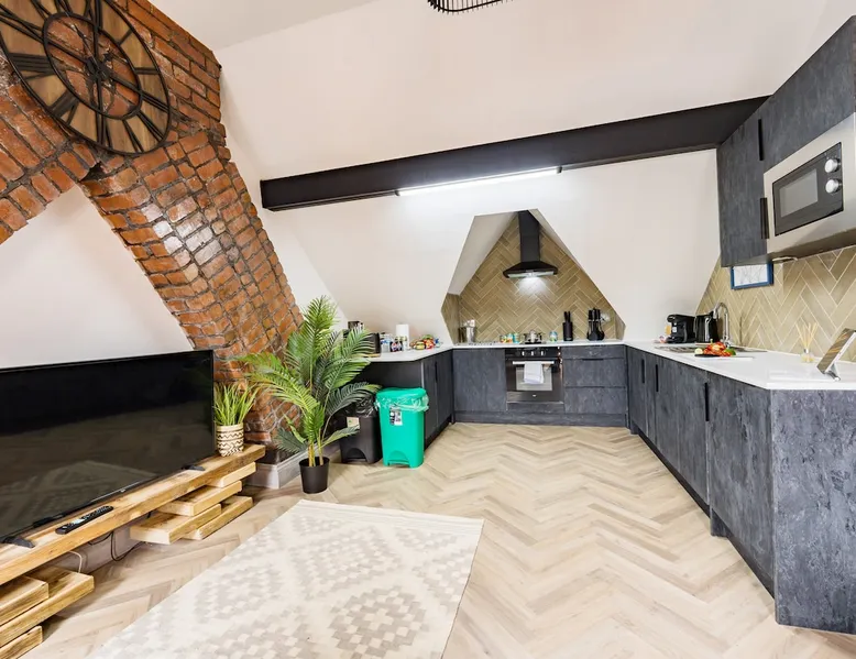 Welcome to our stylish 2-bedroom duplex apartment nestled in the vibrant Roath Park area of Cardiff! Perfect for families, groups, or business travellers, this modern space comfortably accommodates up to 6 guests. The space As you step inside, you'll be greeted by a contemporary lobby leading upstairs to your apartment. Inside you'll find two bedrooms and the living area in the loft space featuring a Cocoon double sofa bed, ensuring everyone has a cosy spot to relax or sleep. Enjoy movie nights on the Smart TV or connect to the high-speed Wi-Fi to stay entertained and connected throughout your stay. The spacious, fully equipped kitchen invites you to channel your inner chef and whip up delicious meals with ease. Whether you're preparing a quick breakfast before exploring the city or hosting a dinner party, you'll find everything you need right at your fingertips. After a day of adventures, retreat to one of the two inviting bedrooms, each thoughtfully designed to provide a peaceful night's sleep. With comfortable beds and ample storage space, you'll wake up refreshed and ready to take on another day! For added convenience, our apartment features a smart lock self-check-in and door entry system, allowing you to arrive and depart at your own convenience without the hassle of keys. Guest access This property has four individually accessed apartments. You will have complete privacy and exclusive use of the whole apartment. Other things to note A complimentary Welcome Pack offers a selection of essentials to help you settle in and feel right at home when you arrive. For stays over seven nights, a weekly mid-stay clean will be required (charged at the same price as the cleaning fee). This will include a complete change of bed linen and towels and general cleaning. We will contact you to arrange a suitable schedule. We use noise monitoring devices across all our properties. These devices only monitor the decibel noise level and cannot record or listen to any activity in the property. To avoid disturbance and parties on our premises, we have our Quiet Time rule and are alerted only if it's too noisy. You'd agree everyone deserves a comfortable and peaceful night's sleep when they stay with us. GROUP BOOKINGS—We offer four apartments in this building. If you have more than four people to accommodate, please check our profile for further availability and prices. Please feel free to contact us if you have any questions. Staying Weekly or Monthly, we're always happy to discount our standard rates.