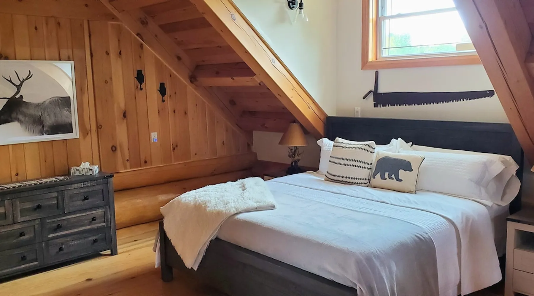Escape to rustic charm in this cozy log cabin, perfect for a romantic retreat or family getaway! With 2 bedrooms, 1.5 baths, and an open-concept living area, it offers modern comforts alongside nature's beauty. Enjoy kayaking on the nearby French River, hiking scenic provincial park trails, or unwinding in the sauna. Book your perfect escape today! Note: not on the water. Public beach and boat launch 5 min drive. The space Welcome to our Timber Pines log cabin retreat. With 2 large bedrooms, 1.5 baths, an open concept living room and kitchen/dining area, there's ample space for enjoying your stay. Large outdoor seating area with BBQ, fire table, deck and private wood sauna. Guest access Guests are welcome to the entire cabin and patio area with outdoor seating and sauna. Other things to note We kindly request that you leave the place just as you found it upon arrival, ensuring it's in the same pristine condition. Your cooperation helps maintain the welcoming atmosphere for future guests. Thank you for your understanding and enjoy the rest of your stay! STR License # STRFR-2025-02