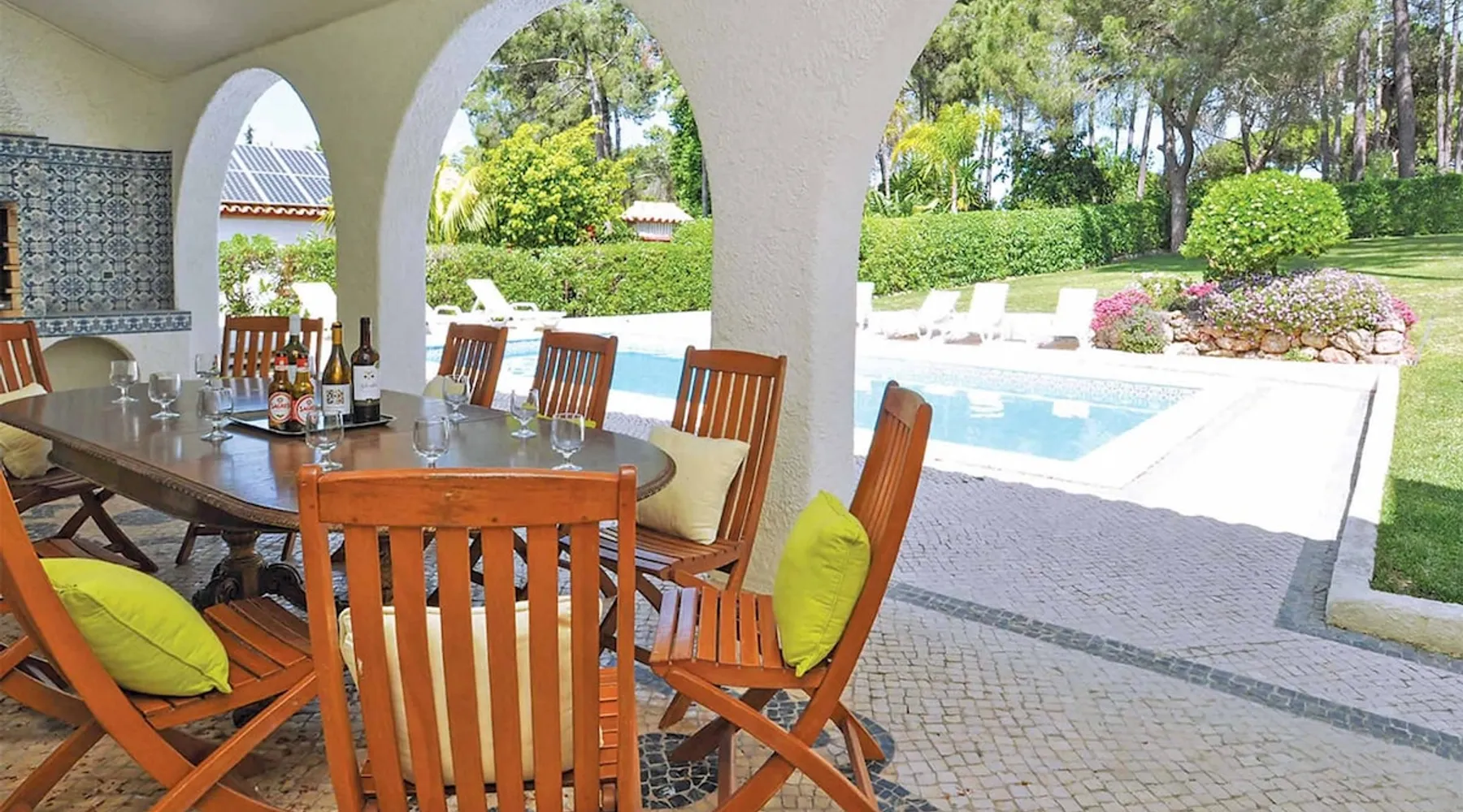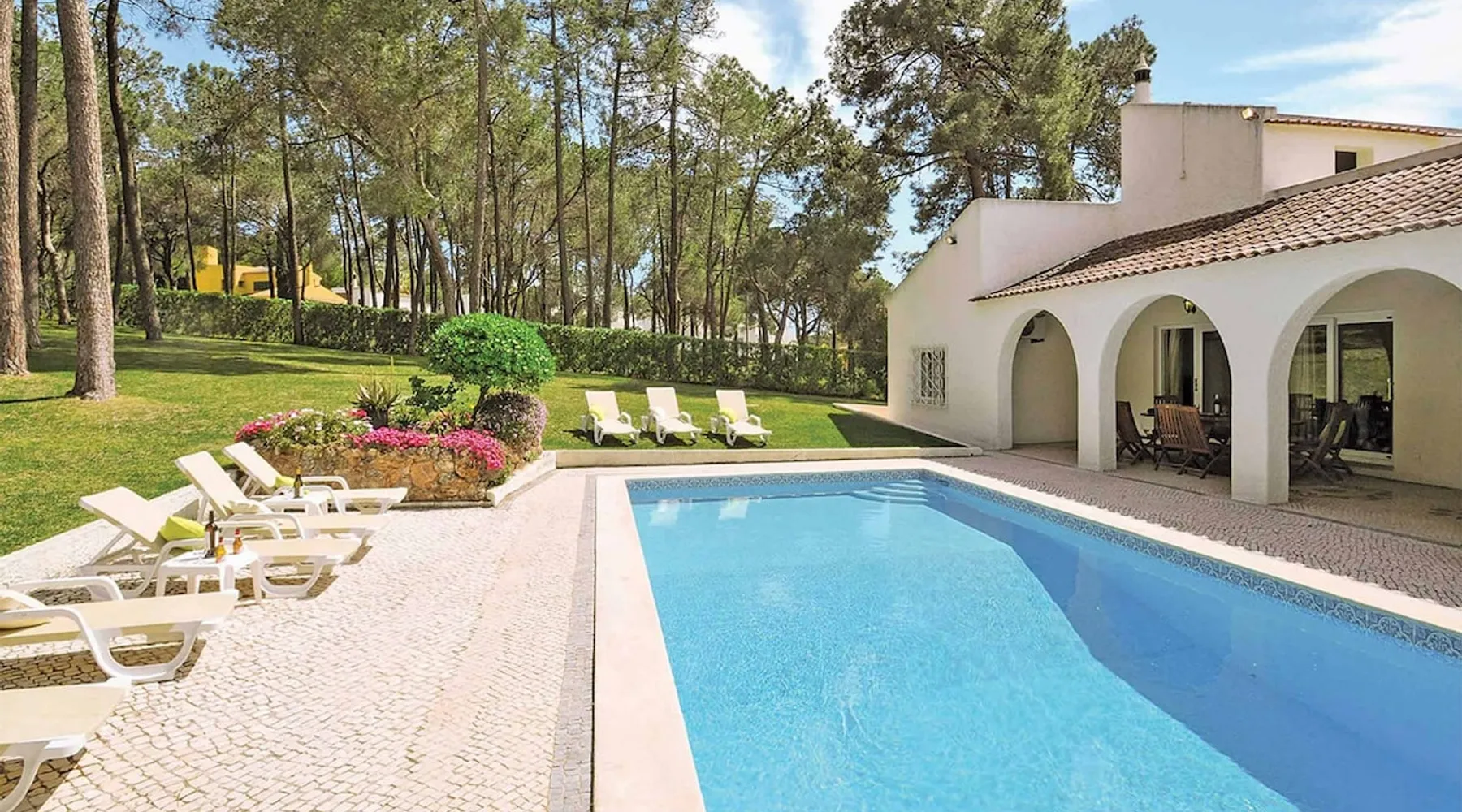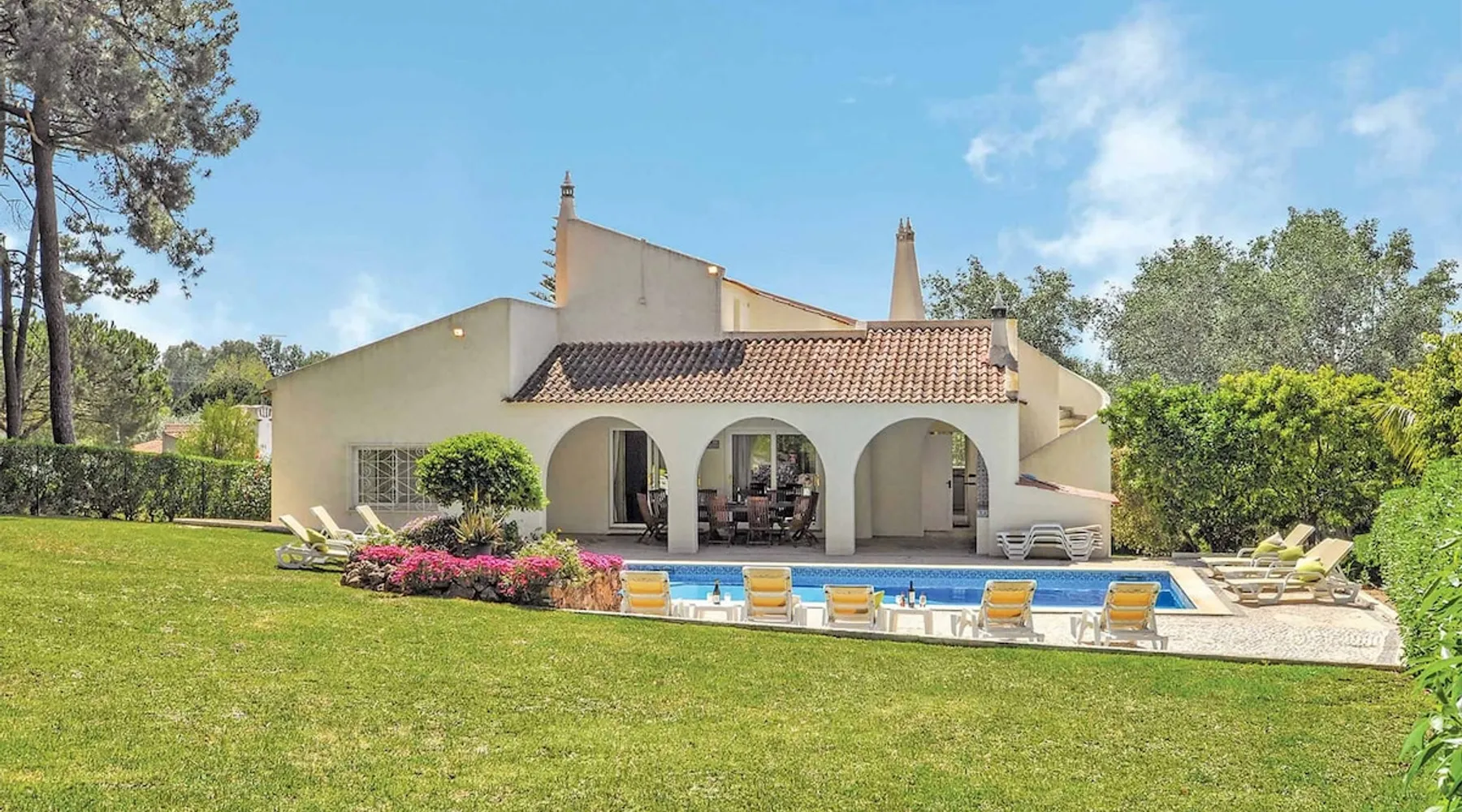 Nestled in the serene enclave of Vilamoura, the exquisite Villa Holly beckons with an air of opulence and tranquillity. This impressive six-bedroom haven boasts a private swimming pool*, offering an oasis of relaxation for discerning travellers seeking an indulgent escape. Step into a world of modern elegance as you enter the villa, where contemporary furnishings create an inviting atmosphere. The six spacious bedrooms, each meticulously designed, provide a retreat of comfort and style. The space Air-conditioned for your utmost convenience, five of these bedrooms boast the added opulence of private ensuites, ensuring a heightened sense of exclusivity and comfort. Villa Holly stands as the perfect choice for large families or groups, offering ample space to accommodate gatherings and create lasting memories. The villa's strategic location allows guests to enjoy the bustling charm of Vilamoura, with its array of shops, restaurants, bars, and sun-kissed sandy beaches, all within easy reach. Surrounded by meticulously maintained green lawns, the villa's outdoor space is a haven of relaxation. The private swimming pool beckons for refreshing dips, while sun loungers offer the ideal spot for soaking up the warm Portuguese sun. A covered dining terrace, complete with a built-in barbecue, sets the stage for delightful alfresco meals during those enchanting summer evenings. Indulge in the epitome of opulence at Villa Holly, where every detail has been carefully curated to ensure a truly memorable and rejuvenating escape. Whether you seek serenity by the poolside or adventure in the nearby resort center, this villa promises an unparalleled retreat in the heart of Vilamoura. *Please note, the ground floor is accessed via an external staircase. Lower Ground Floor Bedroom 1 - Double Bed, Air Conditioning Bedroom 1 Ensuite - Toilet, Basin, Shower Bedroom 2 - Twin Beds, Air Conditioning Bedroom 2 Ensuite - Toilet, Basin, Shower Bedroom 3 - King Size Bed, Air Conditioning Bedroom 3 Ensuite - Toilet, Basin, Shower Ground Floor Lounge - Comfortable Seating, Air Conditioning, Smart TV Kitchen - Oven, Hob, Fridge Freezer, Dishwasher, Microwave Dining Room - Dining Facilities, Air Conditioning, Fridge Freezer, Doors to Terrace Utility Room - Washing Machine Bedroom 4 - Double Bed, Air Conditioning Bedroom 4 Ensuite - Toilet, Basin, Shower Bedroom 5 - Twin Beds, Air Conditioning Bedroom 5 Ensuite - Toilet, Basin, Shower Bedroom 6 - Twin Beds, Air Conditioning Bathroom - Toilet, Basin, Bath with shower over, Bidet Outdoors Terraces and Gardens - Covered Terrace(s), Alfresco Dining Facilities, Brick Built BBQ, Sun Loungers, Garden, Lawn Parking - Off Road Parking Pool - Private Outdoor Pool, Pool Size: 9.10m x 4.60m, Pool Depth: 0.90m - 1.90m, Heated*, Steps Access *Any items marked with an asterisk may be subject to an additional charge. Registration Details 73072/AL