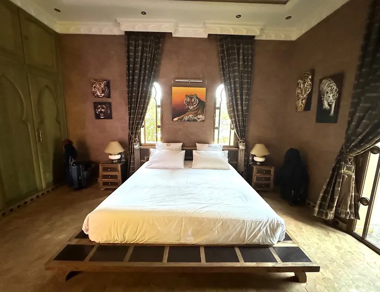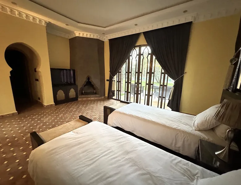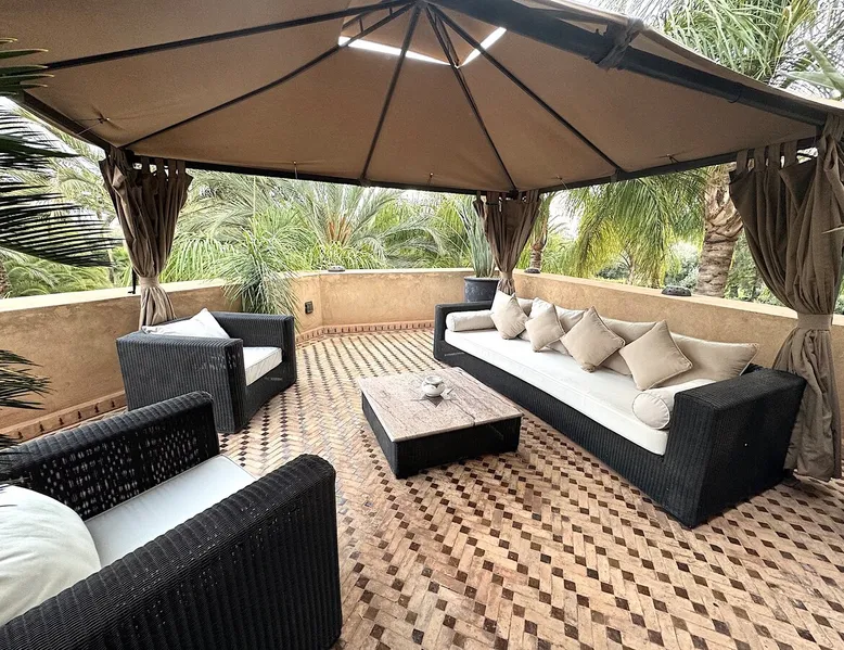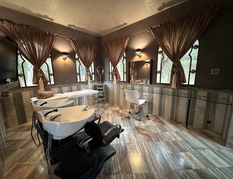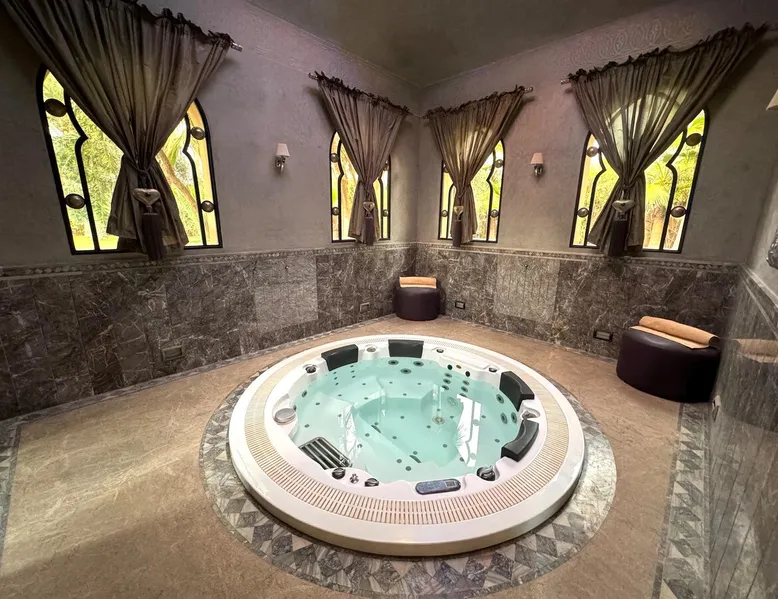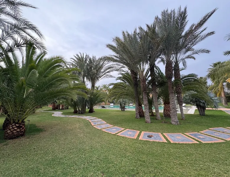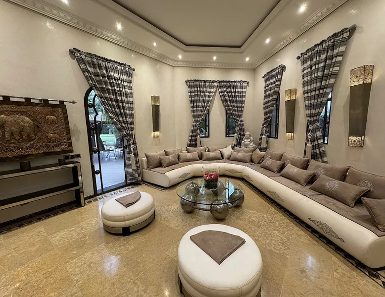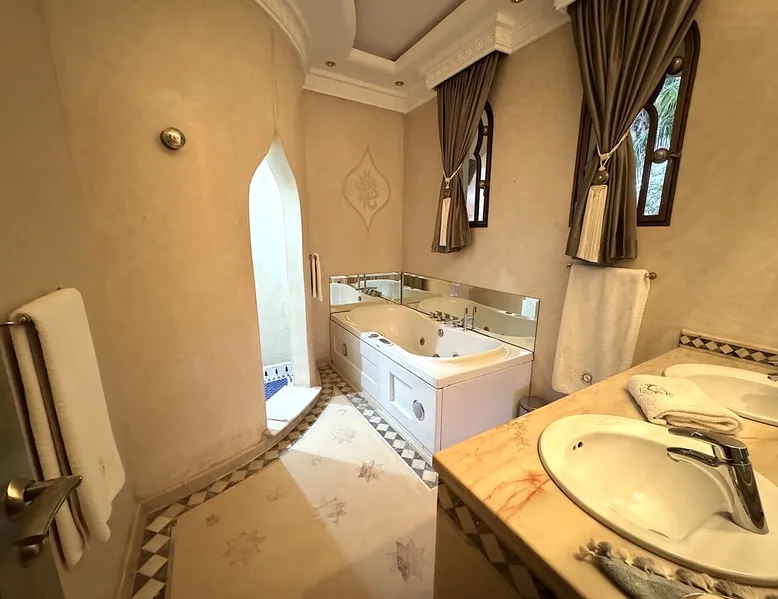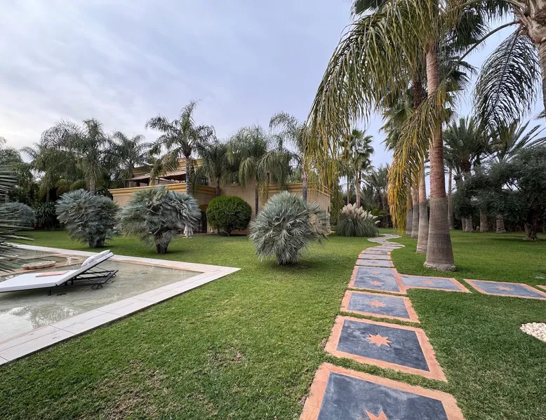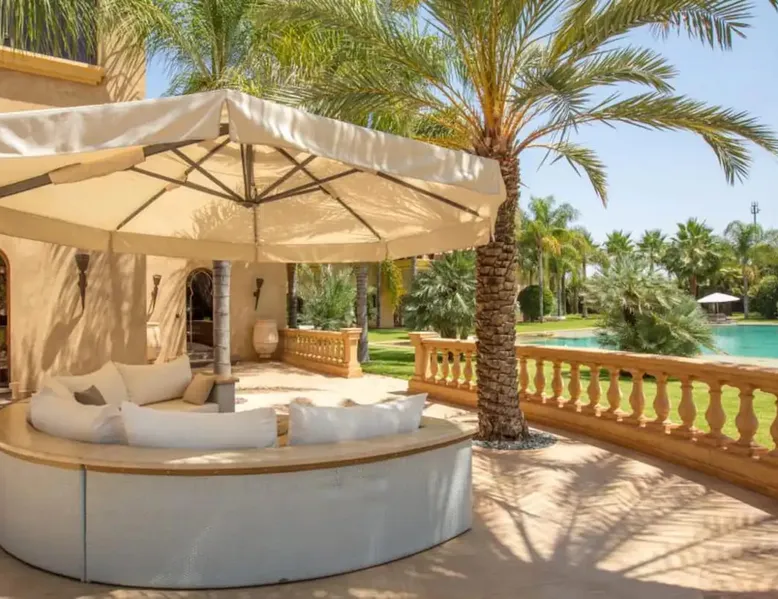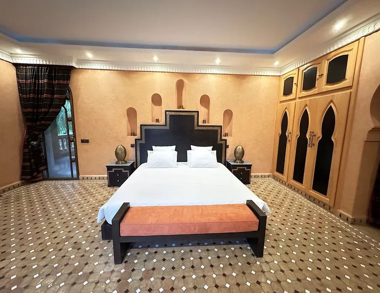 Welcome to Palais Mirage, where traditional Moroccan opulence converges with contemporary luxury, crafting an extraordinary experience. Each corner of this majestic palace narrates a tale of exquisite craftsmanship, from enchanting mosaics to verdant gardens. Indulge in sumptuous interiors exuding unparalleled elegance, offering breathtaking views of Marrakech's grandeur. The space Step into our lavish palace, just 20 minutes from Marrakech! This exceptional abode boasts 10 elegantly appointed rooms, each featuring a mini-bar, a safe, a dressing room, a luxurious bathroom, a desk with impeccable WiFi, and of course, air conditioning. Every room includes a private terrace overlooking the majestic Atlas Mountains, while wood-fired fireplaces elevate your evenings. Savor the meticulously designed details for your utmost comfort. Outside, immerse yourself in our infinity pool boasting 14 diving boards, or unwind on our water-edge sunbeds. Picture-perfect gardens adorned with majestic palm trees and vibrant roses await, with lemon trees lending a Mediterranean ambiance. Embark on a total wellness journey with our spa offering hairdressing and massage services. Rejuvenate in our hammam, where tranquility reigns supreme, or explore our hot tub for ultimate relaxation. Extend your leisure with a heated swimming pool (at an additional cost). Our dedicated staff is on hand to ensure an unforgettable stay. **Please note that the listed price is for maximum accommodation. We are happy to offer different rates for groups of up to 4 people or up to 6 people. Please inquire for more details.** Guest access Situated 17km from the city center and 25 minutes from Marrakech airport, guests enjoy full access to the entire property (except for certain amenities at an additional fee). Other things to note The estate is secured by a 24/7 caretaker. Please note: Moroccan law prohibits the hosting of unmarried Moroccan couples, with no exceptions. Hosting "paid" guests at Palais Mirage is strictly prohibited by Moroccan law. Only registered guests are allowed on the property; no exceptions will be made. **Please note that the listed price is for maximum accommodation. We are happy to offer different rates for groups of up to 4 people or up to 6 people. Please inquire for more details.**