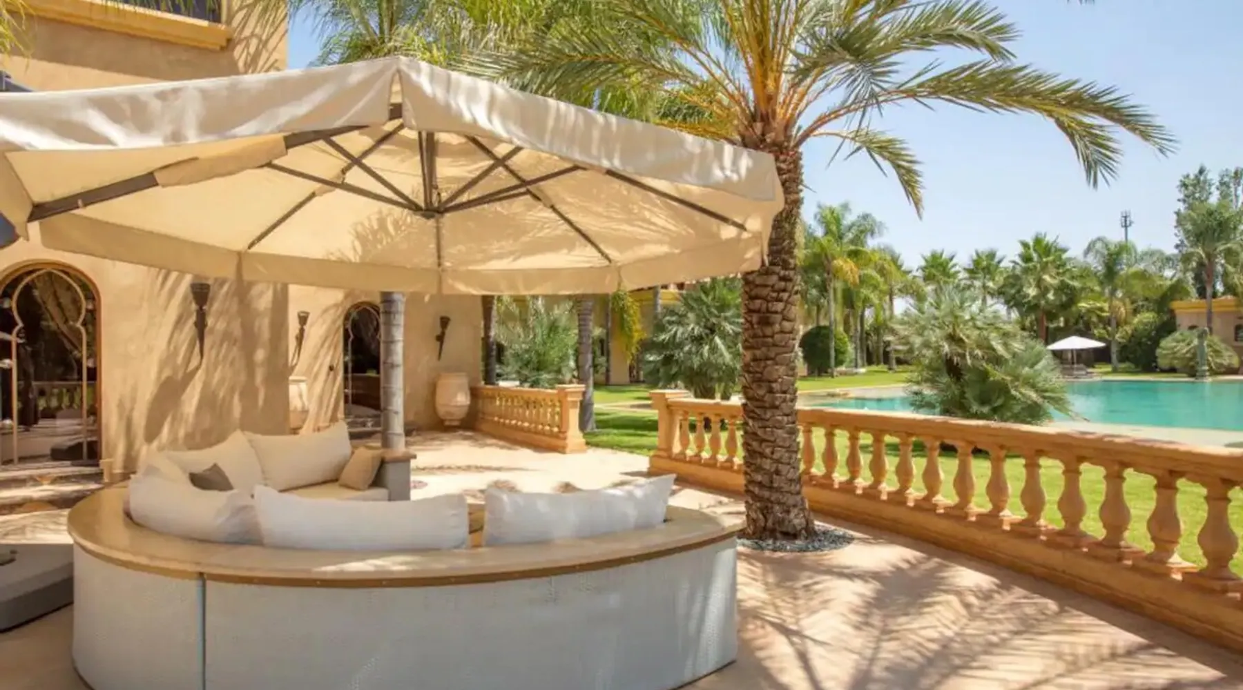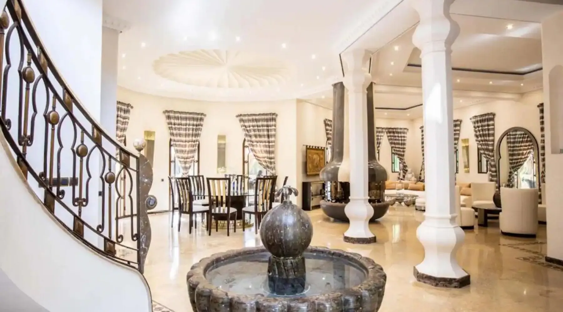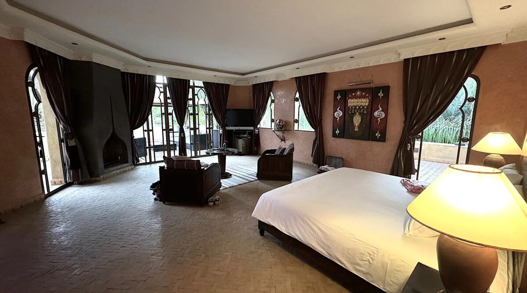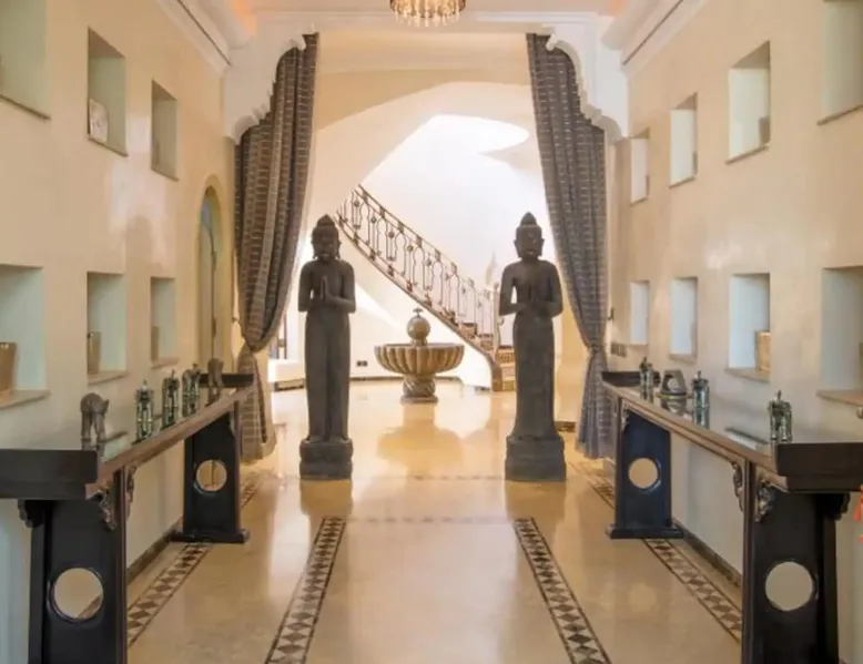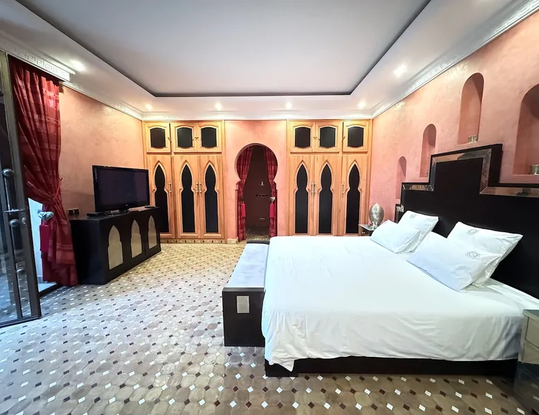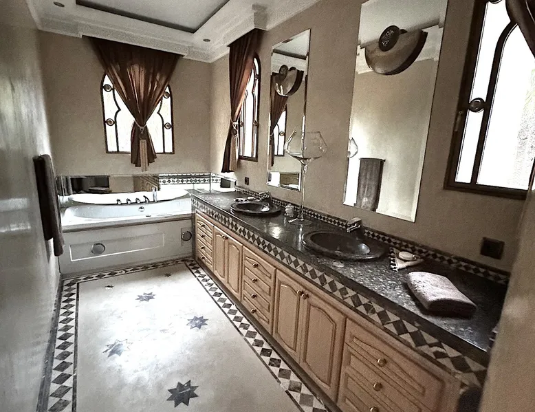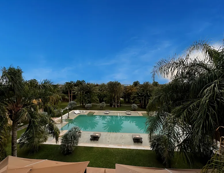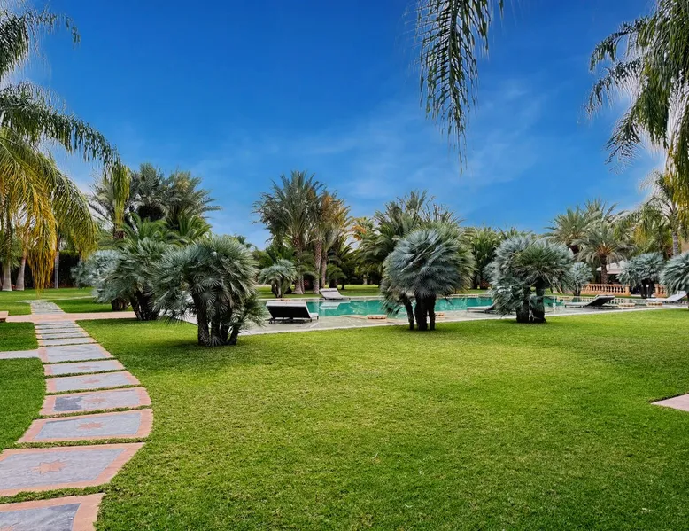 Welcome to Palais Mirage, where traditional Moroccan opulence converges with contemporary luxury, crafting an extraordinary experience. Each corner of this majestic palace narrates a tale of exquisite craftsmanship, from enchanting mosaics to verdant gardens. Indulge in sumptuous interiors exuding unparalleled elegance, offering breathtaking views of Marrakech's grandeur. The space Step into our lavish palace, just 20 minutes from Marrakech! This exceptional abode boasts 10 elegantly appointed rooms, each featuring a mini-bar, a safe, a dressing room, a luxurious bathroom, a desk with impeccable WiFi, and of course, air conditioning. Every room includes a private terrace overlooking the majestic Atlas Mountains, while wood-fired fireplaces elevate your evenings. Savor the meticulously designed details for your utmost comfort. Outside, immerse yourself in our infinity pool boasting 14 diving boards, or unwind on our water-edge sunbeds. Picture-perfect gardens adorned with majestic palm trees and vibrant roses await, with lemon trees lending a Mediterranean ambiance. Embark on a total wellness journey with our spa offering hairdressing and massage services. Rejuvenate in our hammam, where tranquility reigns supreme, or explore our hot tub for ultimate relaxation. Extend your leisure with a heated swimming pool (at an additional cost). Our dedicated staff is on hand to ensure an unforgettable stay. **Please note that the listed price is for maximum accommodation. We are happy to offer different rates for groups of up to 4 people or up to 6 people. Please inquire for more details.** Guest access Situated 17km from the city center and 25 minutes from Marrakech airport, guests enjoy full access to the entire property (except for certain amenities at an additional fee). Other things to note The estate is secured by a 24/7 caretaker. Please note: Moroccan law prohibits the hosting of unmarried Moroccan couples, with no exceptions. Hosting "paid" guests at Palais Mirage is strictly prohibited by Moroccan law. Only registered guests are allowed on the property; no exceptions will be made. **Please note that the listed price is for maximum accommodation. We are happy to offer different rates for groups of up to 4 people or up to 6 people. Please inquire for more details.**
