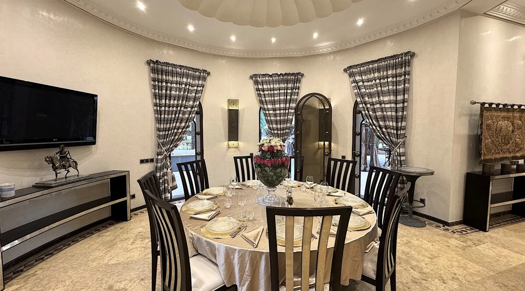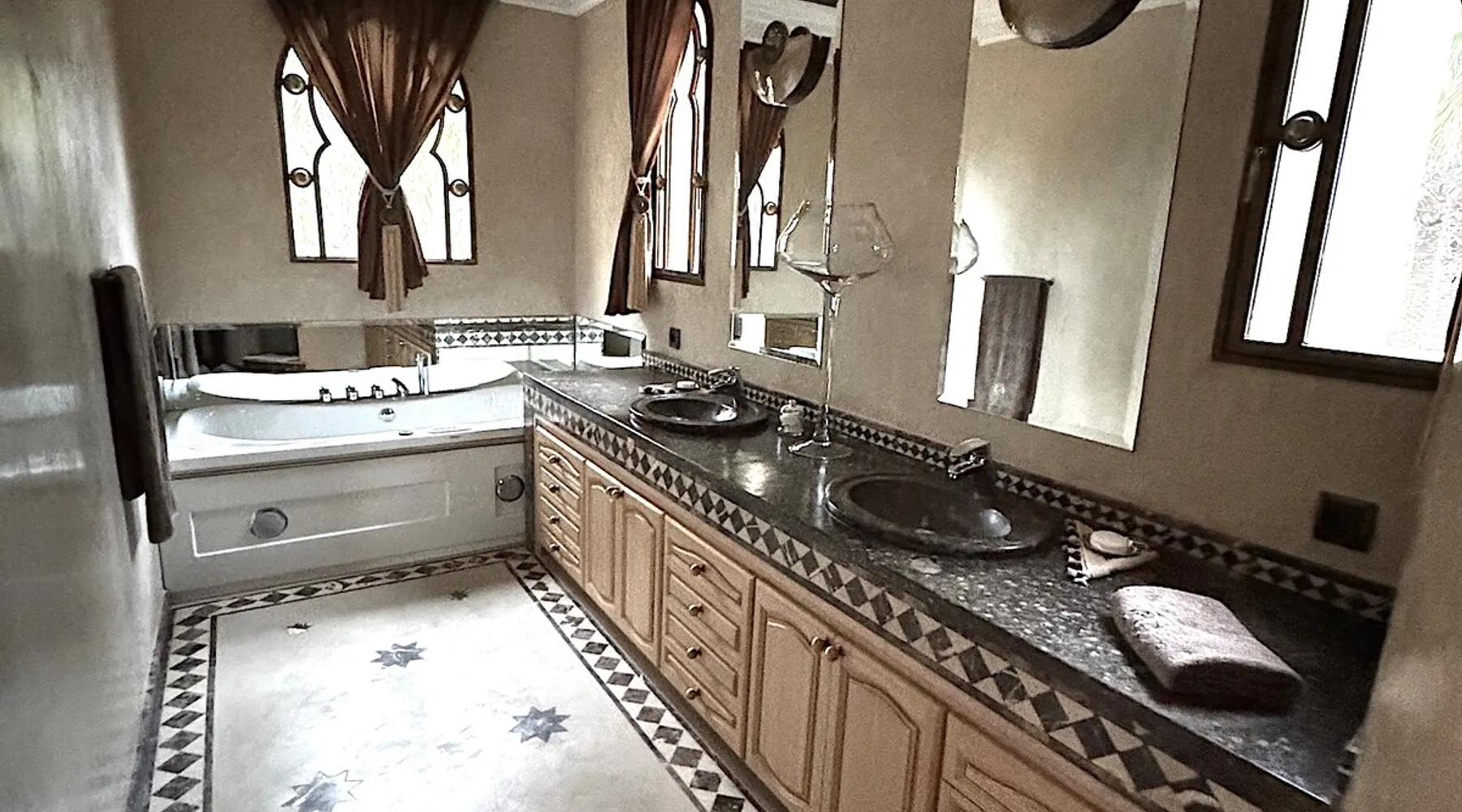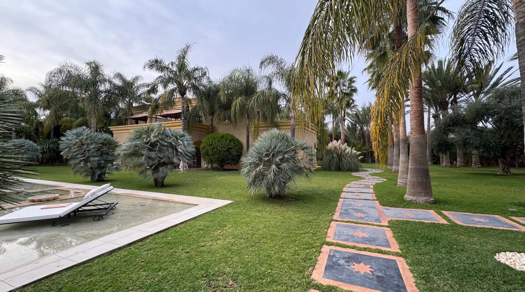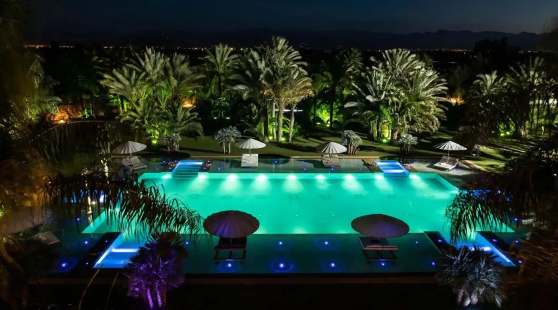 Welcome to Palais Mirage, where traditional Moroccan opulence converges with contemporary luxury, crafting an extraordinary experience. Each corner of this majestic palace narrates a tale of exquisite craftsmanship, from enchanting mosaics to verdant gardens. Indulge in sumptuous interiors exuding unparalleled elegance, offering breathtaking views of Marrakech's grandeur. The space Step into our lavish palace, just 20 minutes from Marrakech! This exceptional abode boasts 10 elegantly appointed rooms, each featuring a mini-bar, a safe, a dressing room, a luxurious bathroom, a desk with impeccable WiFi, and of course, air conditioning. Every room includes a private terrace overlooking the majestic Atlas Mountains, while wood-fired fireplaces elevate your evenings. Savor the meticulously designed details for your utmost comfort. Outside, immerse yourself in our infinity pool boasting 14 diving boards, or unwind on our water-edge sunbeds. Picture-perfect gardens adorned with majestic palm trees and vibrant roses await, with lemon trees lending a Mediterranean ambiance. Embark on a total wellness journey with our spa offering hairdressing and massage services. Rejuvenate in our hammam, where tranquility reigns supreme, or explore our hot tub for ultimate relaxation. Extend your leisure with a heated swimming pool (at an additional cost). Our dedicated staff is on hand to ensure an unforgettable stay. **Please note that the listed price is for maximum accommodation. We are happy to offer different rates for groups of up to 4 people or up to 6 people. Please inquire for more details.** Guest access Situated 17km from the city center and 25 minutes from Marrakech airport, guests enjoy full access to the entire property (except for certain amenities at an additional fee). Other things to note The estate is secured by a 24/7 caretaker. Please note: Moroccan law prohibits the hosting of unmarried Moroccan couples, with no exceptions. Hosting "paid" guests at Palais Mirage is strictly prohibited by Moroccan law. Only registered guests are allowed on the property; no exceptions will be made. **Please note that the listed price is for maximum accommodation. We are happy to offer different rates for groups of up to 4 people or up to 6 people. Please inquire for more details.**