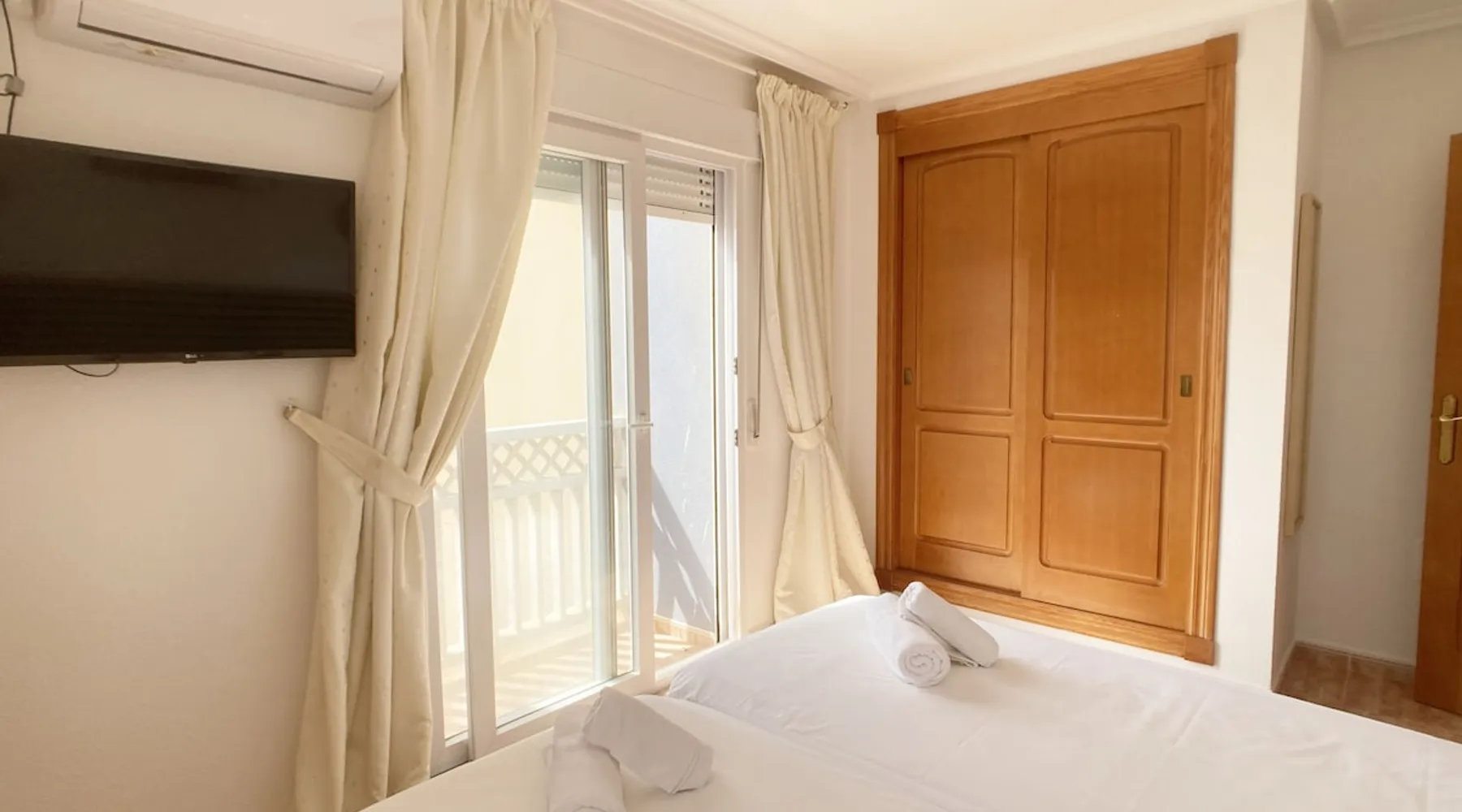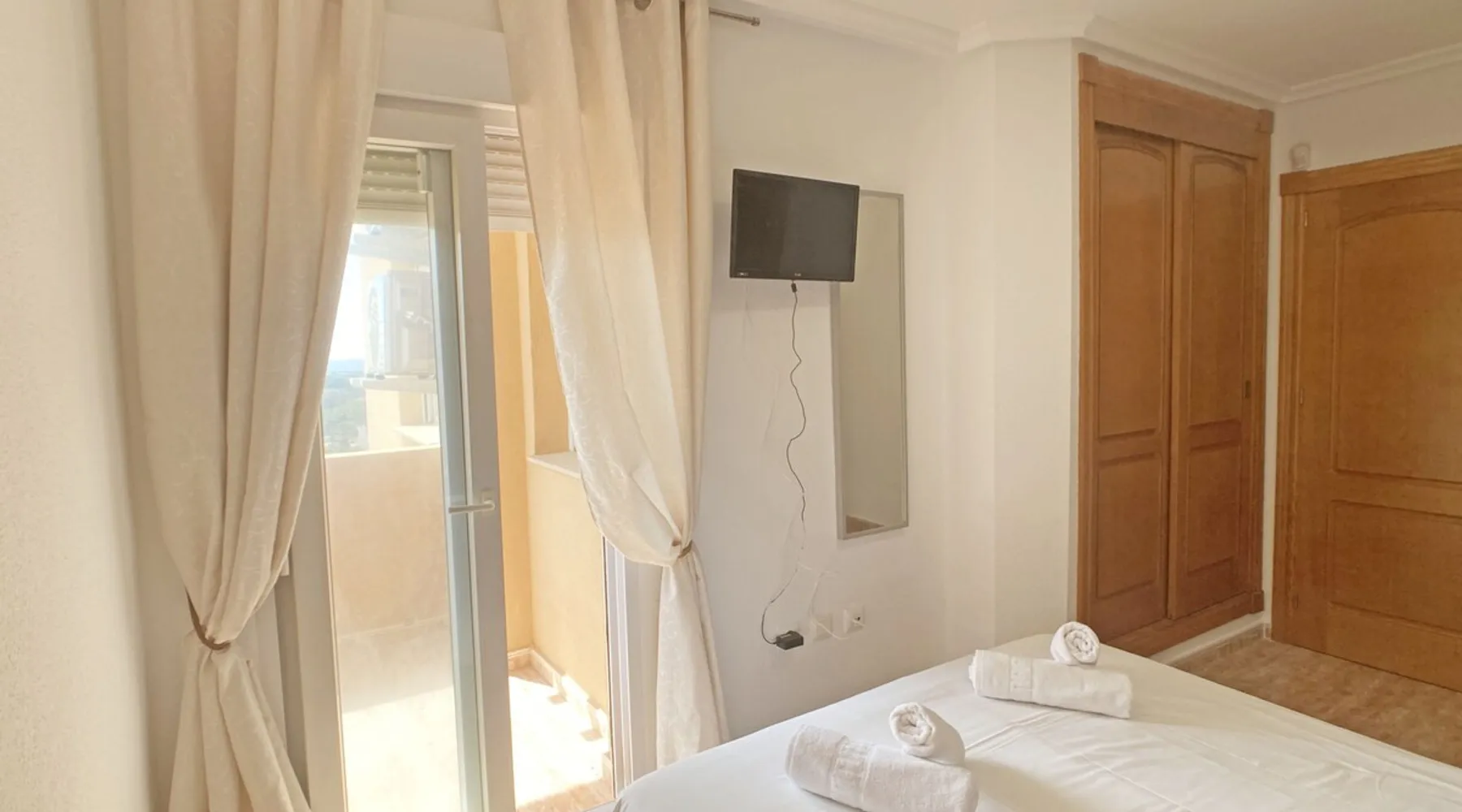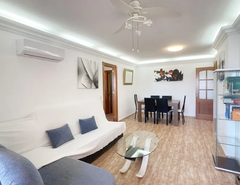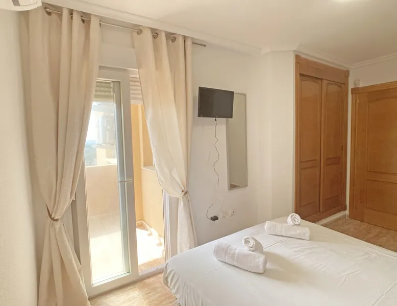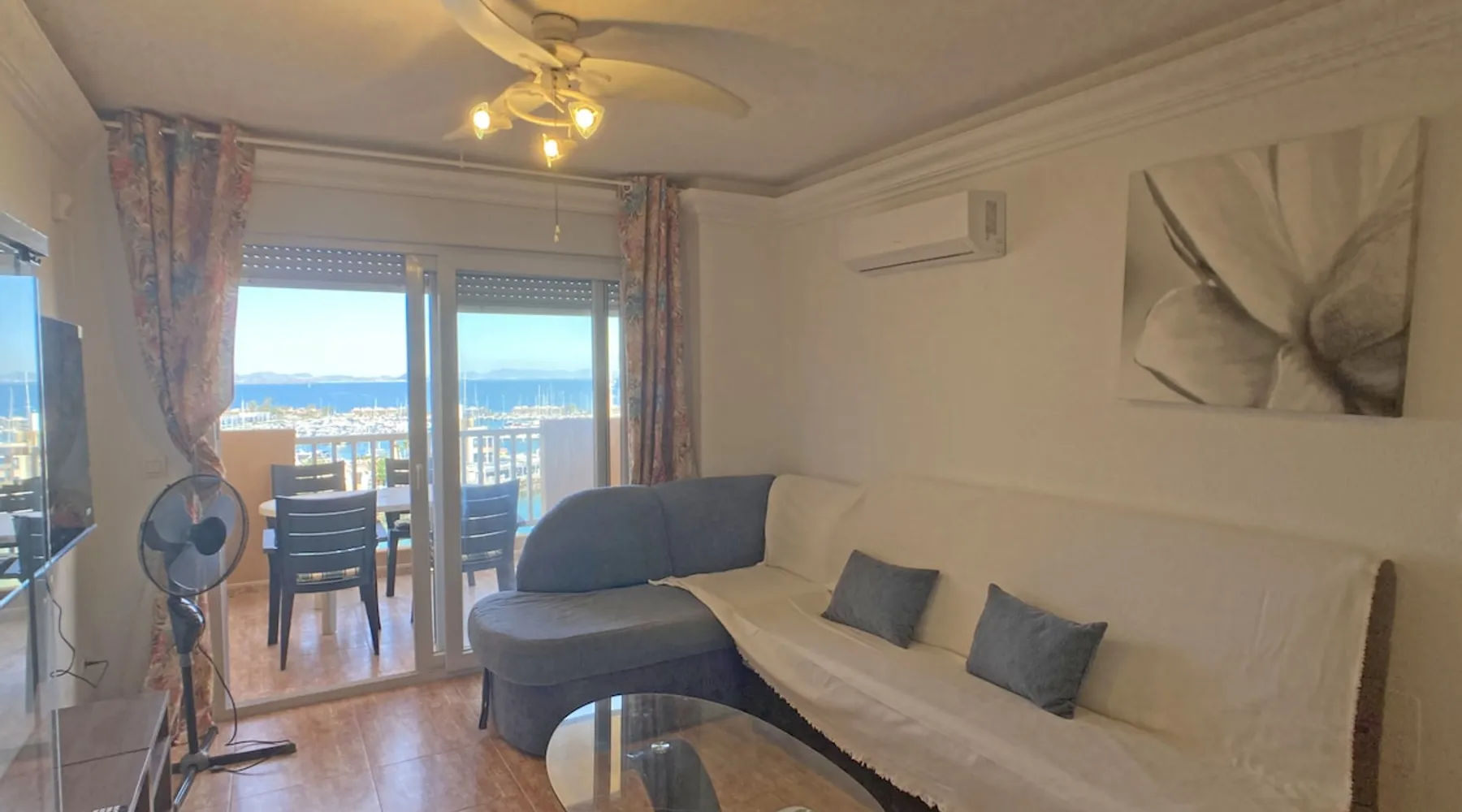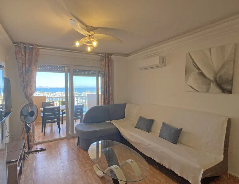 Two-bedroom apartment with views of the port in Los Miradores del Puerto, km 14 of La Manga. This beautiful apartment is very spacious, comfortable and bright. It has two bedrooms, the main one, with a double bed, is very spacious and has air conditioning and Smart Tv, it also has its own bathroom with a bathtub and access to a small terrace. The second bedroom has two single beds, air conditioning and television. It has a full bathroom with a bathtub in the hallway. The space Two-bedroom apartment with views of the port in Los Miradores del Puerto, km 14 of La Manga. This beautiful apartment is very spacious, comfortable and bright. It has two bedrooms, the main one, with a double bed, is very spacious and has air conditioning and Smart Tv, it also has its own bathroom with a bathtub and access to a small terrace. The second bedroom has two single beds, air conditioning and television. It has a full bathroom with a bathtub in the hallway. The living room, very spacious, has a dining area for 6 people, another with a sofa bed (recommended for 2 children or one adult), television and air conditioning, and also has access to a wide terrace with views of the Puerto de Tomás Maestre. From the living room, you can also access the kitchen, independent and very well-equipped with oven, ceramic hob, toaster, mixer, Italian coffee maker and a gallery with a washing machine. The apartment is on the 6th floor, which ensures that the temperature, especially in the hottest months, is perfect, and yet it has air conditioning in the living room and bedroom and a ceiling fan in the living room. The apartment has WiFi connection. Location: The urbanisation, Los Miradores del Puerto, at km 14, has a large community area with a garden, paddle tennis court and swimming pool. About 50 metres away there is a large supermarket (Spar), and in the area there are numerous bars, restaurants, supermarkets... It is about 10-15 minutes walking from the Tomás Maestre Port, where there are numerous restaurants, bars, shops and a large supermarket (Supercor) next to which a local market takes place on Saturday mornings. In addition, in this same Tomás Maestre area there is a sports centre with tennis, paddle and five-a-side football courts as well as very comprehensive indoor facilities, such as a large gym with sea views, where anyone can buy a pass for the use and enjoyment of the courts and attendance to the different classes offered, such as Zumba, Pilates, Strength Training... We offer the flexible rate option, for a 10% supplement with the possibility of cancellation up to 5 days before arrival, rate available from September to June, both included. If you are interested in booking with this rate, please let us know in advance or when making the reservation, add the comment in the observations section and we will proceed to change the rate and conditions. Closed parking space with prior reservation, subject to availability, 6€ per night. No pets allowed. Smoking is strictly prohibited inside the apartment. For arrivals between 9pm and 12am, prior confirmation is necessary before booking and incurs an extra fee of 30€. Professional cleaning before and after the stay. Other things to note Included services - Final Cleaning - Internet Access - Towels - Bed linen - Air conditioning - Heating Optional services - Cot/Crib: Price: EUR 15.00 per booking. - Parking: Price: EUR 6.00 per day. - Arrival out of schedule: Price: EUR 30.00 per booking. - Baby high chair: Price: EUR 10.00 per booking. - flexible rate: Price: % 10 of the booking price. Registration Details Spain - National registration number ESFCTU00003003200063863200000000000000000000A.MU.2470