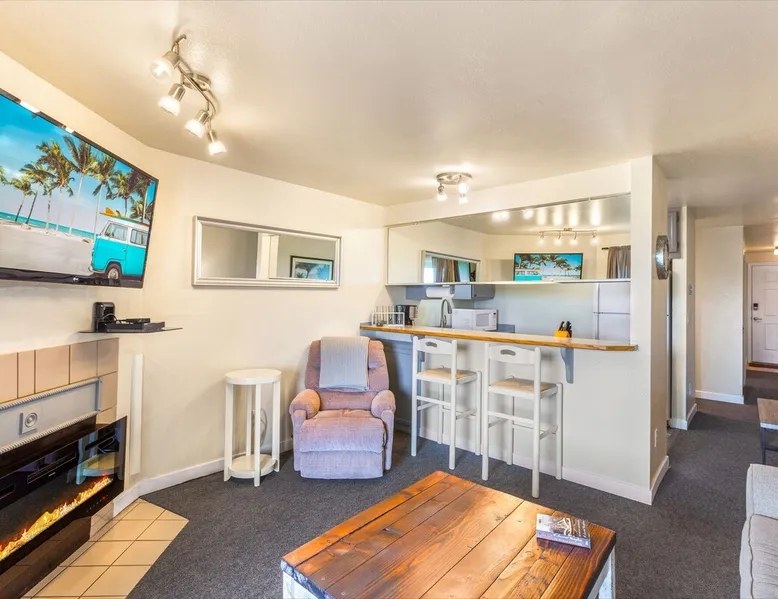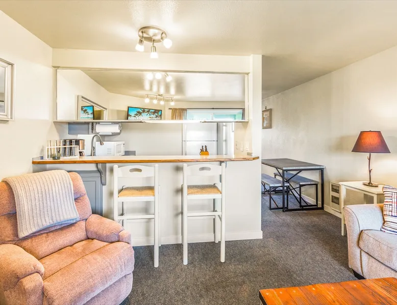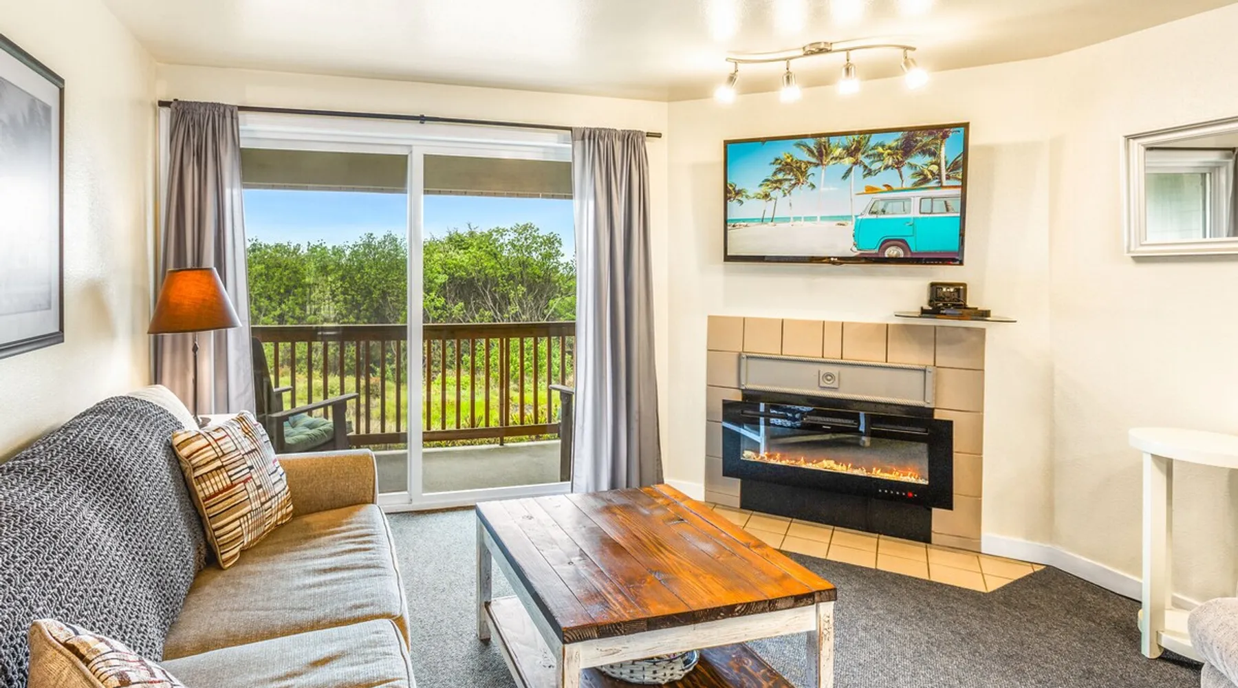 Take a load off and relax ocean side at So Very Nice, a comfortable condo on the main drag of Ocean Shores, Washington. The space ABOUT SO VERY NICE This cozy living area features a large and comfy couch and recliner, a coffee table, flat screen TV and a gas fireplace to set the mood. Relax and take in the view of the Pacific Ocean, the dunes, and the seabirds overhead as your stress of daily life melts away. In good weather, you can adjourn to the private deck and smell the fragrant sea air roll in with the warm breeze. This modest condo sleeps up to four guests comfortably between the bedroom fitted with a queen bed and the sleeper sofa in the living area, which can easily accommodate two guests. With a full kitchen stocked with pots & pans, flatware and dinnerware, you'll have everything you need to cook a hot meal while on vacation. Pull out the dining table to seat four comfortably or dine out on the open deck, overlooking the picnic area and the mighty Pacific Ocean. MORE ABOUT SO VERY NICE To get to the beach simply follow the forest trail through some small pines and across the sand to the beach. The five minute walk is a nice way to get to the ocean without having to drive, but don't fear, because if you'd rather drive, you can. The greater Ocean Shores area permits vehicles to drive onto the beach for a unique experience and an adventure you'll not soon forget. Since The Nautilus is right on the main drive of Ocean Shores, when you need supplies, you'll have many options, from grocery stores, coffee shops, kite stores, local restaurants and dives. Not feeling the town scene? Take a scenic drive up the coast toward Olympic National Park on Highway 1 and explore the coastal forests and further reaches that this enchanting part of Washington has to offer. Dogs are welcome with our standard per dog, per night fee. ABOUT OCEAN SHORES When booking with any of our properties in Ocean Shores, you will have endless options for seaside activities. When bringing your friends or family along, we're sure that each and every one of you will find an adventure worth diving into. There are plenty of activities and shops to check out while you visit. Just a few blocks away is an arcade for the video game fanatics who visit. Check out the local antique shop or go to the movie theater to see any of the latest releases. The warmer days also mean horseback riding along the beach or whale watching tours, all within a short distance of all of our units. Visiting during the warm weather? Get ready for the best season to visit us! Rent a moped or bike and take a ride into town, where you'll find the main drag. Here you'll find locally hand-crafted meals served in the town's restaurants, as well as boutiques filled with souvenirs to take home! Want to head to the beach during winter too? That's not a problem! The views are just as beautiful, and it's still a great getaway from your everyday life. The main drag is still just as active, with bowling alleys, shops and galleries to keep you busy. THE BY THE SEA VACATION RENTAL PROMISE By The Sea Vacation Rentals is the only full-stack vacation rental management company in the area. We vow to make booking with us simple and exciting. While others know their way around it, we know that booking a rental property home for your vacation can be unfamiliar territory for some. Because we know this, we ensure that each of our properties is up to high-quality standards. We do our absolute best to provide support to our guests when booking. We are available to assist you every day of the year if you have any questions or concerns before, during or after you visit our home. We have onsite property management that is available 24/7 for anything concerning that may arise. MANAGED: Property requires good behavior and adherence to instructions, house rules, terms, conditions, onsite instructions, and may require online registration, accidental damage protection, and electronic signature before final booking confirmation, or you may cancel before proceeding at that time. Instruction including access will be sent by email. Phones open 9am to 7pm every day. Unless otherwise arranged, check-in is between 5 and 7pm and check-out is before 11am. If dogs are allowed, they must be approved in advance, with a quantity, weight limit, and a per-dog, per-day fee. Due to government and owner requirements, occupancy may never exceed the number of registered guests, dogs and vehicles. Drop-in guests are not allowed. For security, there may be outwardly facing security cameras, capable of constant recording, and interior decibel meters to monitor noise. Bookings over 30 days or longer are with Prospera VIP.