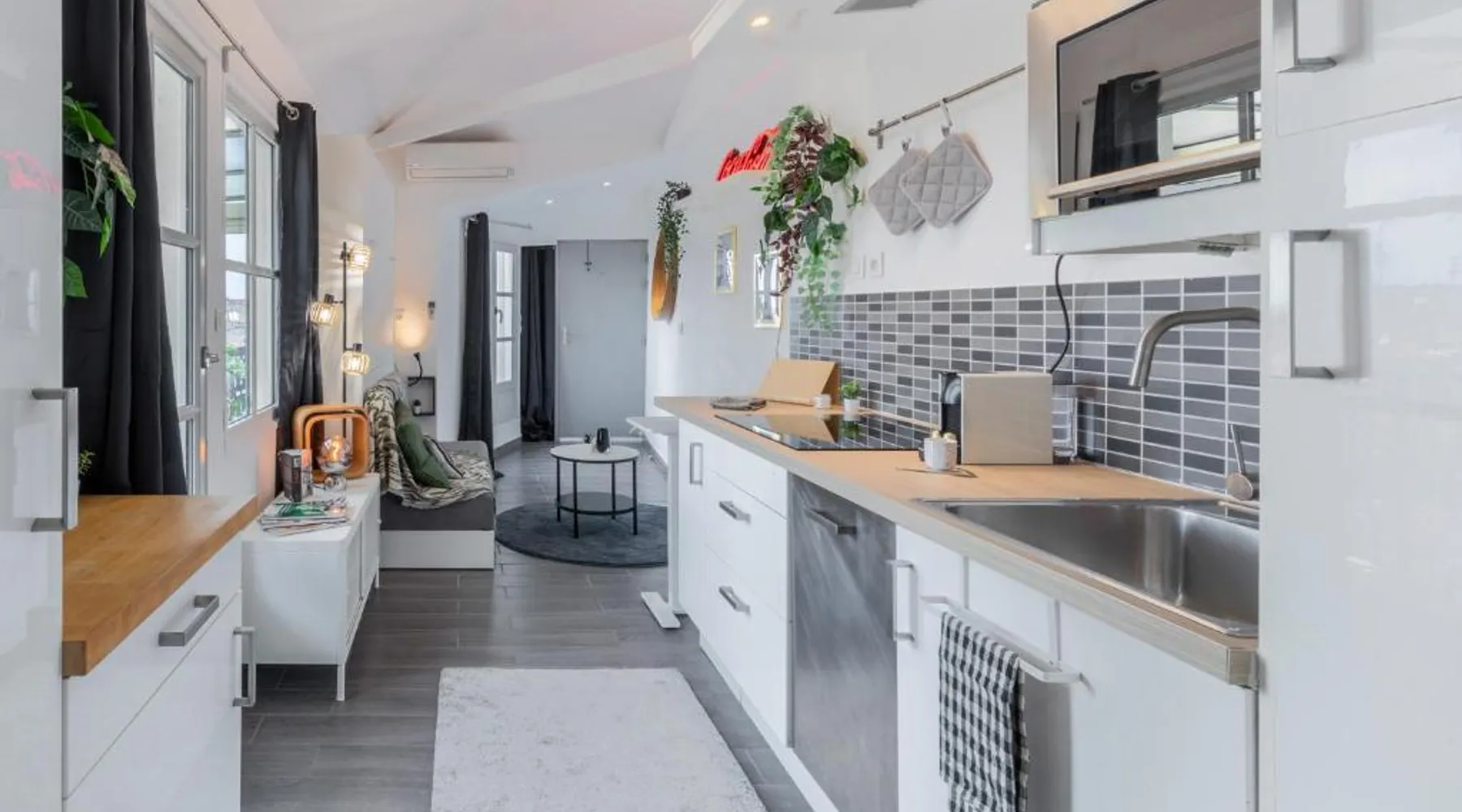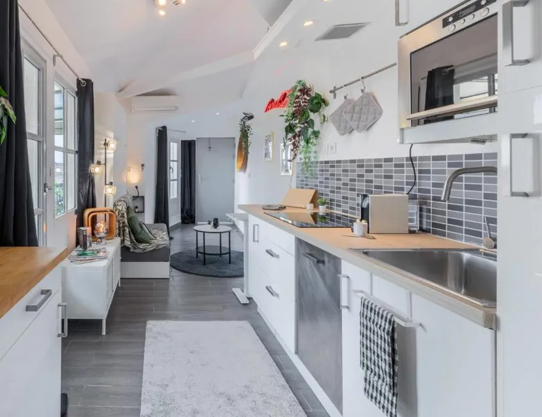 Prime City Center Location: La terrasse, vue sur les toits de Montpellier is located in Montpellier city center, offering a terrace with city views. The apartment is located on the fourth floor (last floor) of 5 Rue Saint-Pierre, 34000. Comfortable Accommodations: The apartment features family rooms, air-conditioning, and a balcony. Guests can enjoy a fully equipped kitchen with modern appliances, including a dishwasher and microwave. Additional amenities include a washing machine, private bathroom, and free WiFi. Nearby Attractions: Montpellier Cathedral of Saint Peter is just a few steps away, while The Corum lies less than 0.6 mi from the property. Fabre Museum is a 7-minute walk, and Place de la Comédie is less than 0.6 mi. Montpellier National Opera is an 8-minute walk. Guest Favorites: Guests appreciate the terrace, city views, and convenient location. The apartment offers a relaxing outdoor dining area and outdoor furniture, enhancing the stay experience. Guests can make meals in the kitchen that is equipped with a stovetop, a refrigerator, a dishwasher and kitchenware. The studio provides air conditioning, a washing machine, a terrace with city views as well as a private bathroom featuring a shower. The unit offers 1 bed.