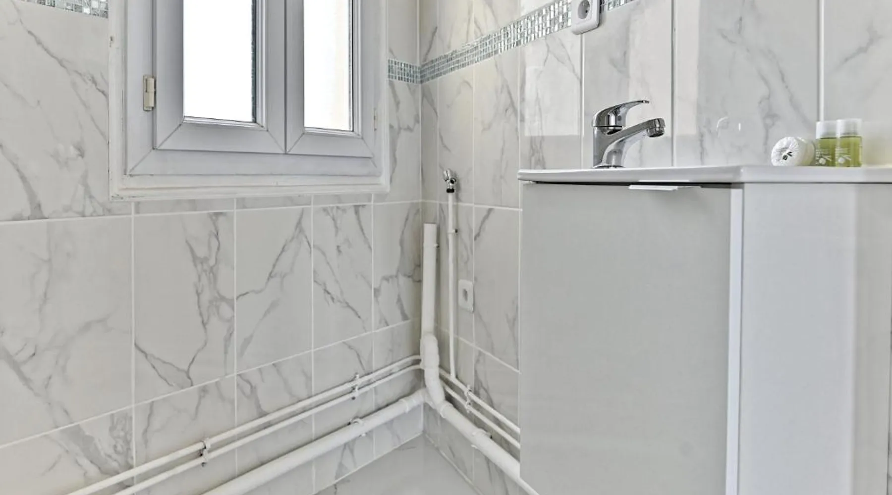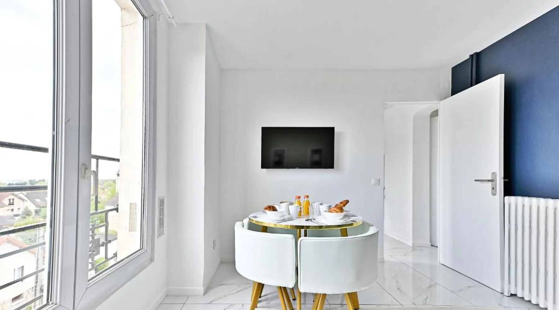 Comfortable Living Space: Séjour Authentique près de Paris à Gagny offers a two-bedroom apartment with a living room. The property includes a fully equipped kitchen, dining area, and a sofa bed. Modern Amenities: Guests enjoy free WiFi, a tea and coffee maker, coffee machine, refrigerator, oven, and a shower. The apartment features a seating area and a dining table, ensuring a pleasant stay. Convenient Location: Located in Gagny, the apartment is 11 mi from Paris Charles de Gaulle Airport and Gare de l'Est, La Cigale Concert Hall, and Pompidou Center. Nearby attractions include Stade de France and Noter Dame Cathedral. Local Surroundings: A restaurant and an ice-skating rink are available in the vicinity, providing additional leisure options. This apartment is consisted of of 1 living room, 2 separate bedrooms and 1 bathroom with a shower. The well-equipped kitchen features a refrigerator, an oven and a tea and coffee maker. The apartment comes with a seating area, a dining area, a sofa as well as heating. The unit offers 2 beds.