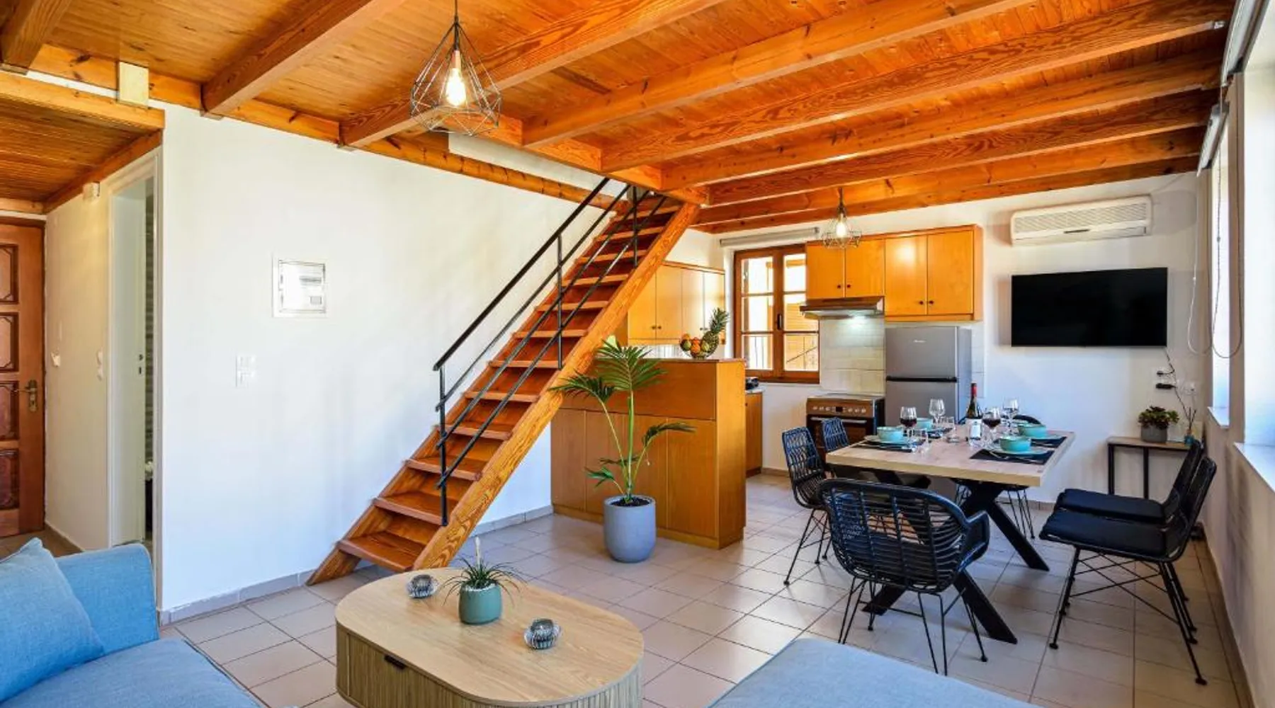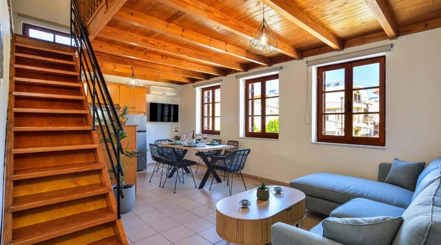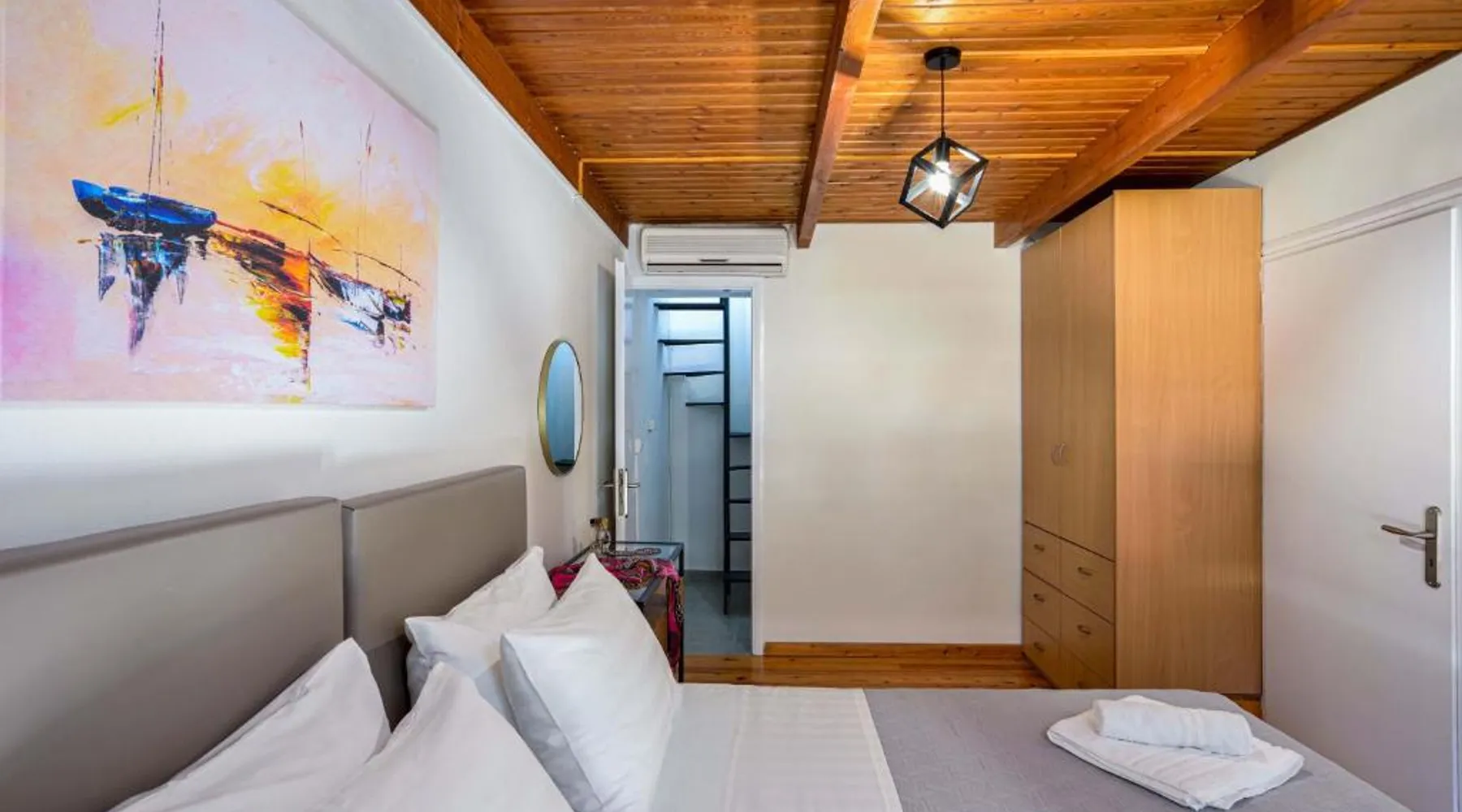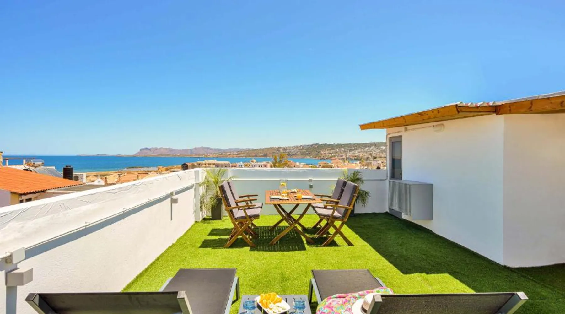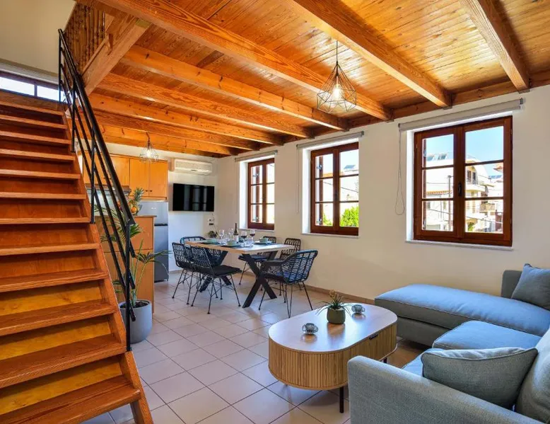 Modern Comforts: Old Town Loft with Sea View Roof Terrace and Private Parking in Chania offers a recently renovated apartment with two bedrooms and a living room. Guests enjoy free WiFi, air-conditioning, and a sun terrace with sea views. Convenient Facilities: The property features private check-in and check-out services, a paid shuttle, concierge, outdoor seating area, family rooms, express services, bike and car hire. Free on-site private parking is available. Prime Location: Located in the city center, the apartment is less than 0.6 mi from Koum Kapi Beach and 984 feet from Chania Old Venetian Harbor. Chania International Airport is 8.7 mi away. Nearby attractions include the Folklore Museum and Etz Hayyim Synagogue. Highly Rated: Guests appreciate the modern amenities and excellent service, making it a highly rated choice. Boasting a private entrance, this air-conditioned apartment features 1 living room, 2 separate bedrooms and 1 bathroom with a shower and a hairdryer. In the well-equipped kitchen, guests will find a stovetop, a refrigerator, kitchenware and an oven. Featuring a terrace with sea views, this apartment also features a washing machine and a flat-screen TV. The unit has 3 beds.