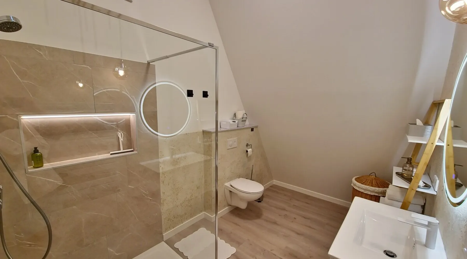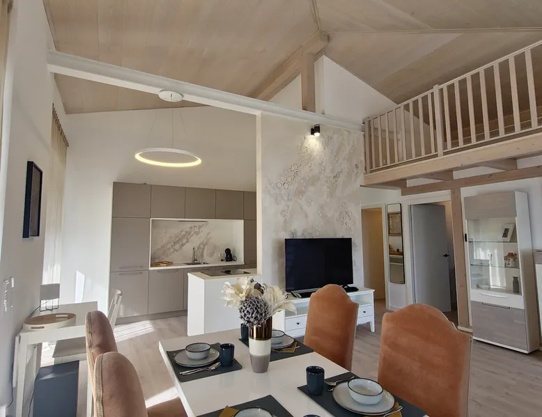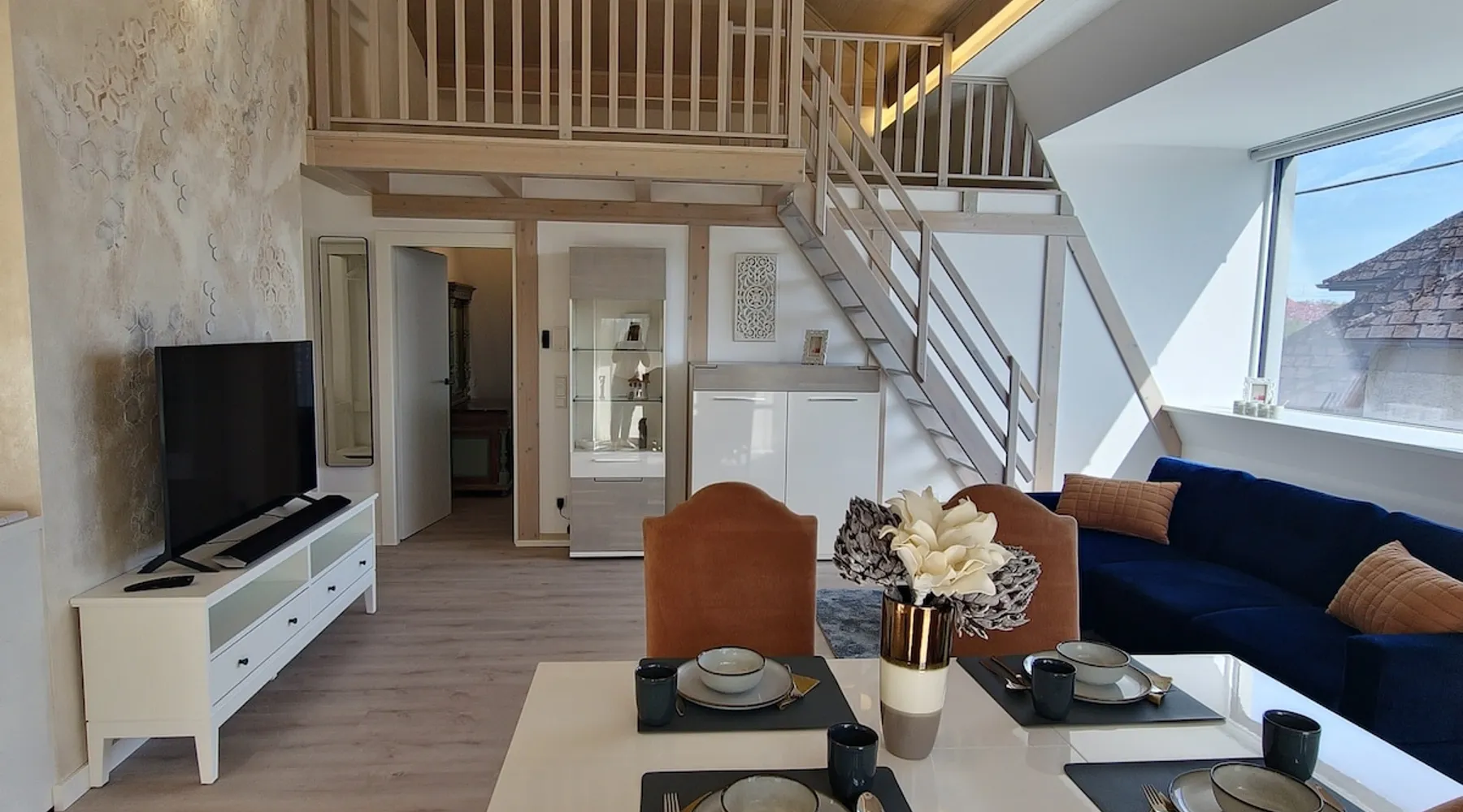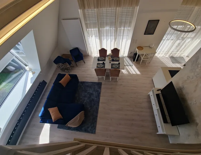 Unique attic apartment in Schärding!** Charming loft apartment with high rooms and tasteful furnishings. (73 m²) Spacious terrace (shared use) overlooking the countryside. Close to the center, with private parking for car and bicycle. ***charging option for electric cars.*** Pets welcome. Hospital proximity. Book now for an unforgettable stay in Schärding. The space Only a 5 minute walk away: - Hospital - Historical city center - Innpromenade - Stadtbad Schärding - Techno Zentrum Schärding - Restaurants - Supermarkets Guest access The entire apartment, garden, private parking spaces are accessible to guests. The 60 m2 terrace is shared with the other Airbnb apartment.