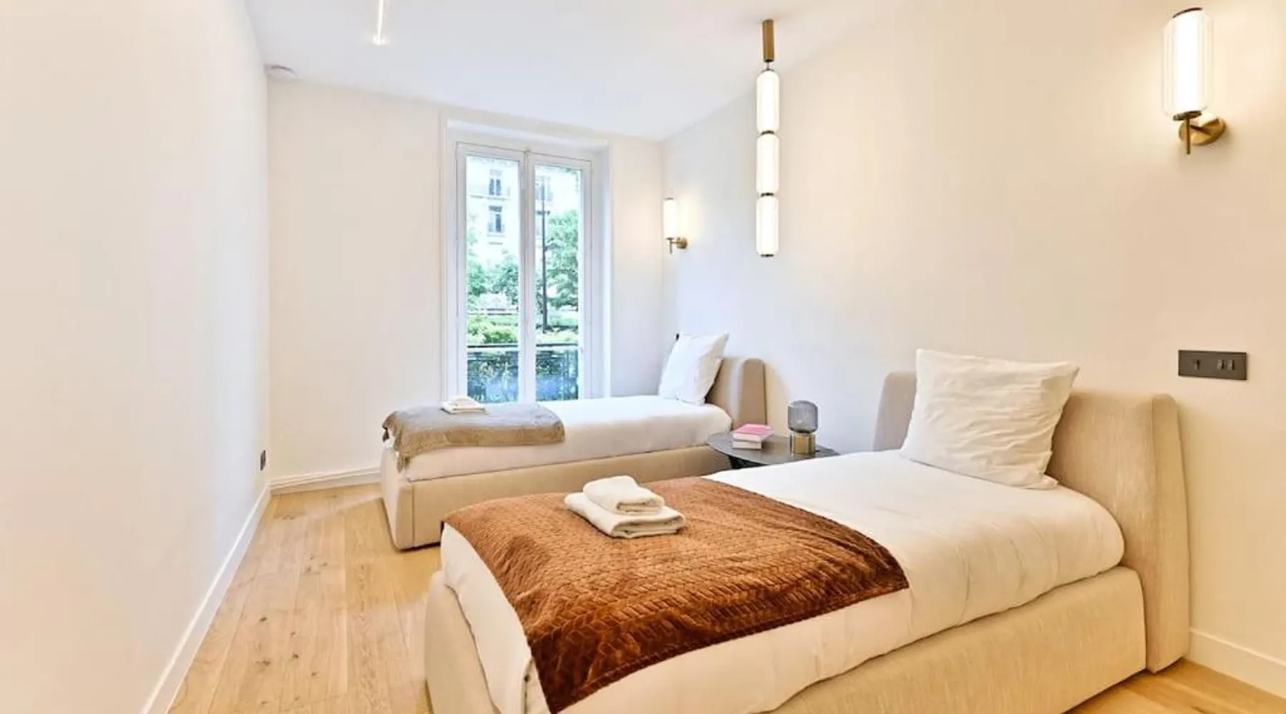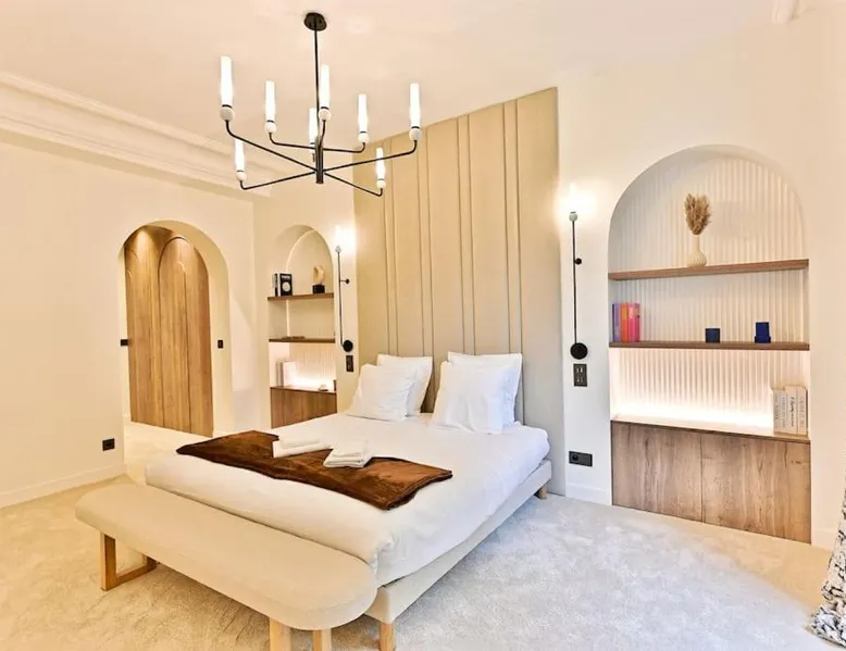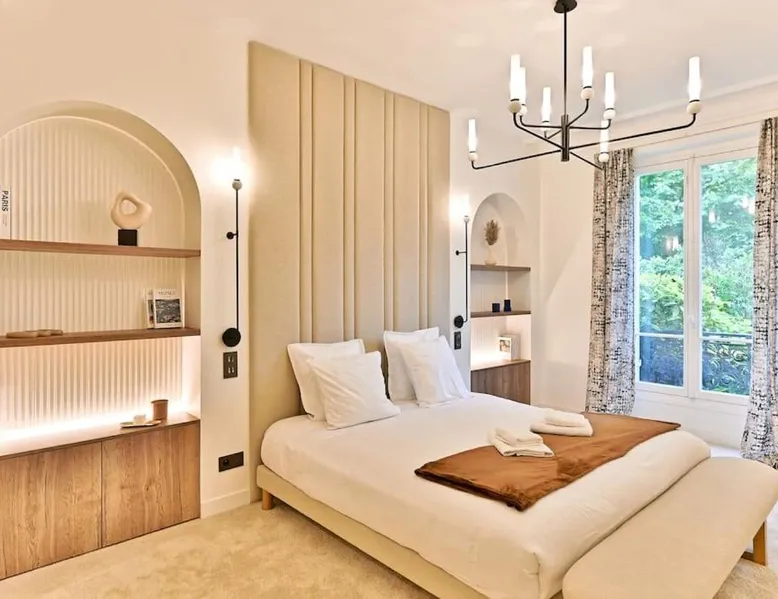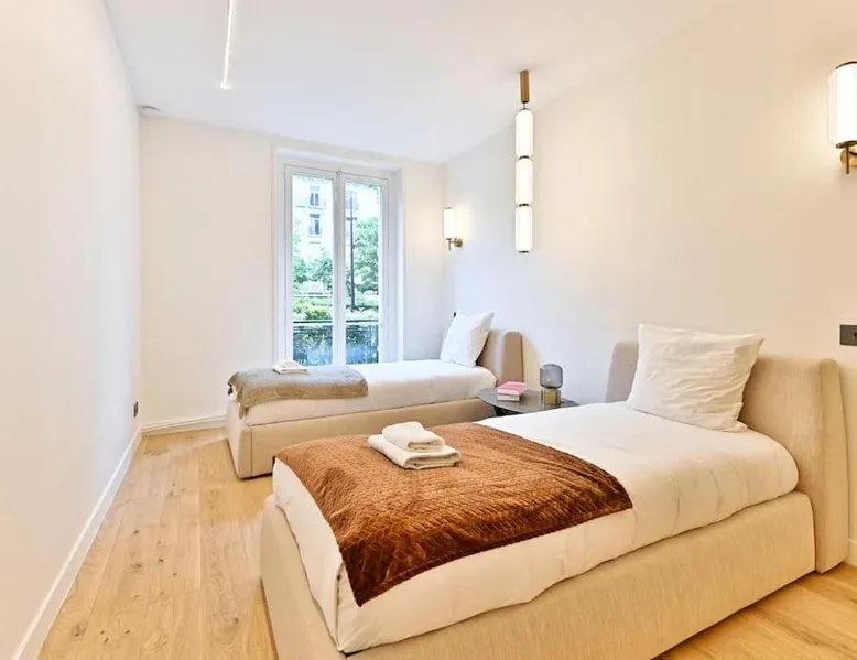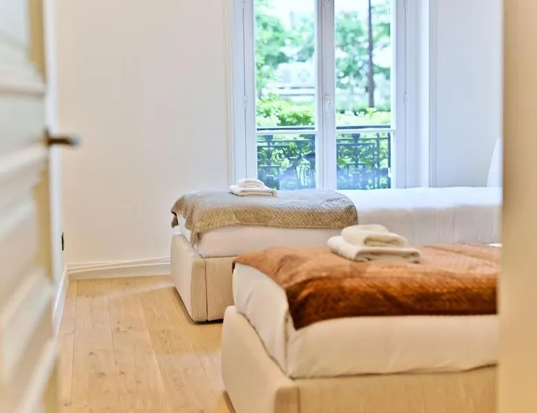 Spacious Accommodations: Appartement d'architecte luxueux Neuilly-sur-Seine offers a spacious apartment in Neuilly-sur-Seine. The property features four bedrooms and three bathrooms, ensuring ample space for all guests. Modern Amenities: Guests enjoy a fully equipped kitchen, washing machine, and free WiFi. Additional amenities include a dining area, sofa bed, and work desk, catering to both leisure and business travelers. Outdoor Spaces: A beautiful garden provides a relaxing outdoor area, perfect for unwinding. The property also offers garden views and an ice-skating rink in the surrounding area. Prime Location: Located 16 mi from Paris Charles de Gaulle Airport, the apartment is a 15-minute walk from Palais des Congrès de Paris. Nearby attractions include the Arc de Triomphe (1.2 mi) and Eiffel Tower (2.5 mi). Highly rated by guests. This spacious apartment is consisted of of 1 living room, 4 separate bedrooms and 3 bathrooms with a bath and a shower. The apartment's kitchen, which features a refrigerator and an oven, is available for cooking and storing food. The apartment is furnished with a desk and a seating area and offers a washing machine, a tea and coffee maker and garden views. The unit offers 6 beds.