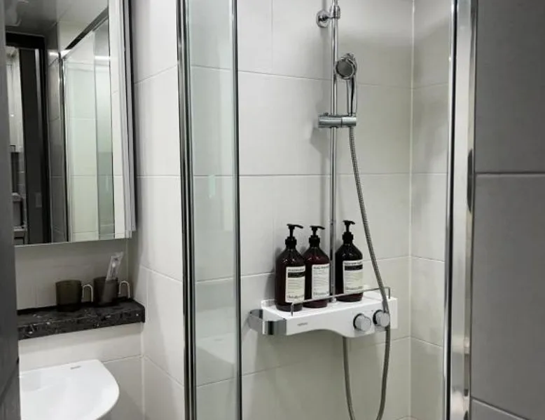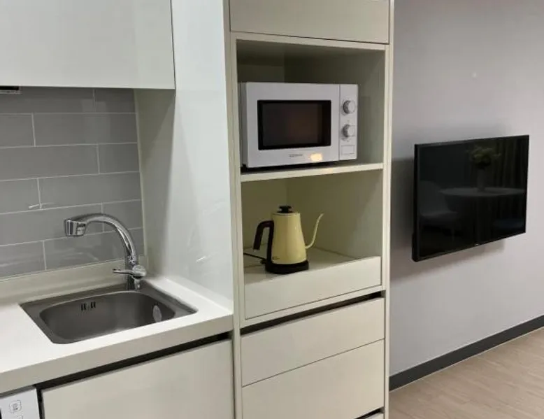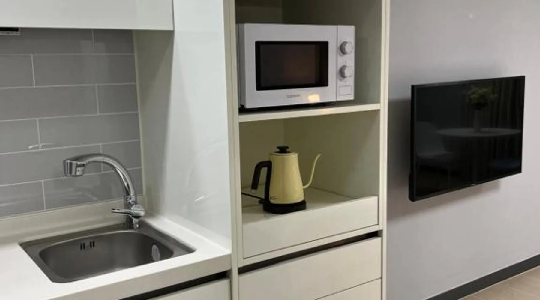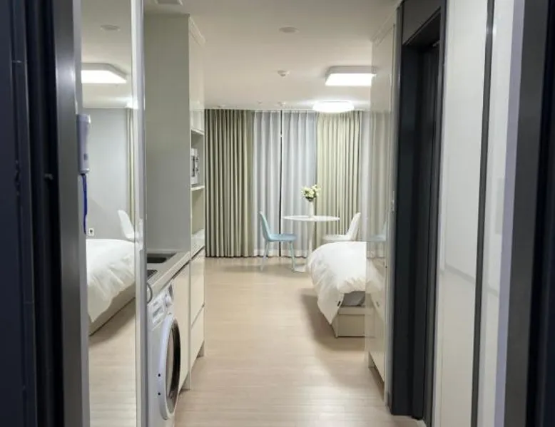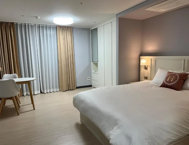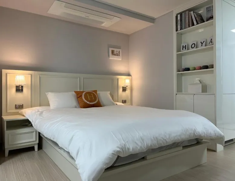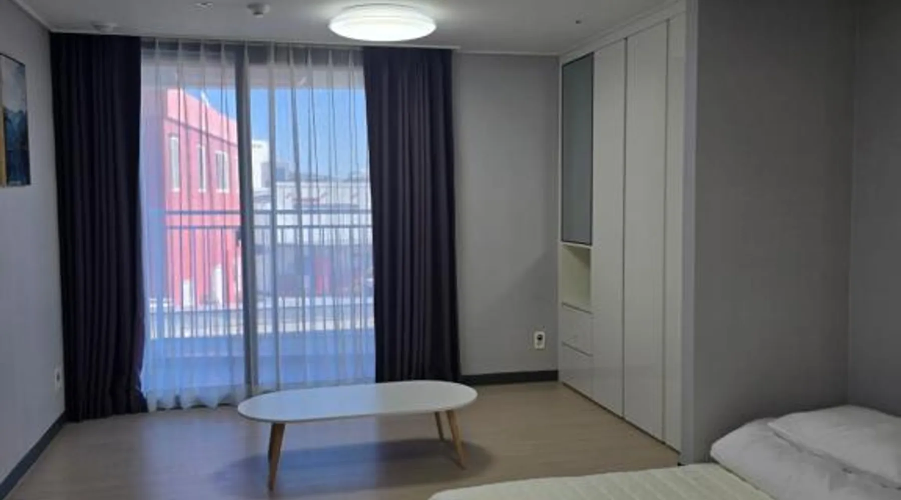 Comfortable Accommodations: Hoya stay in Yeosu offers family rooms with private bathrooms, air-conditioning, and mountain views. Each room includes a balcony, washing machine, and free WiFi. Modern Facilities: Guests can enjoy a terrace, electric vehicle charging station, and free on-site parking. Additional amenities include streaming services, a work desk, and a dining area. Convenient Location: Located 11 mi from Yeosu Airport, the hotel is a 6-minute walk from Chonnam National University Guk-dong and 1.2 mi from Dolsan Bridge. Nearby attractions include Turtle Ship and Dolsan Park. Guest Satisfaction: Highly rated for room cleanliness, comfort, and bed comfort, Hoya stay ensures a pleasant stay for all visitors. Guests can make meals in the kitchen that is equipped with a refrigerator, kitchenware, a microwave and an electric kettle. The spacious double room provides air conditioning, a washing machine, a terrace with mountain views as well as a private bathroom featuring a shower. The unit offers 1 bed.
