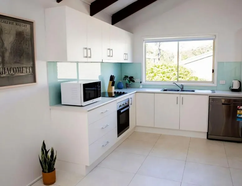 Spacious Accommodations: Blissful Stay Moments From the Beach in Surf Beach offers a spacious holiday home with four bedrooms and two bathrooms. The property features a fully equipped kitchen, dining area, and a comfortable seating space. Outdoor Amenities: Guests can relax in the private garden or on the balcony, enjoying the serene surroundings. The property includes a patio, perfect for outdoor gatherings. Free WiFi is available throughout the holiday home. Convenient Facilities: The holiday home provides free on-site private parking, a washing machine, and a work desk. Additional amenities include a dishwasher, microwave, and TV, ensuring a comfortable stay. Local Attractions: Surf Beach is a 13-minute walk away, while Batemans Bay Marina lies 4.3 mi from the property. Moruya Airport is 12 mi distant, offering convenient travel options. The spacious holiday home has 4 bedrooms and 2 bathrooms with a bath and free toiletries. The fully equipped kitchen features a stovetop, a refrigerator, a dishwasher and kitchenware. A seating area with a flat-screen TV, a washing machine and a patio are available in this holiday home. The unit has 4 beds.