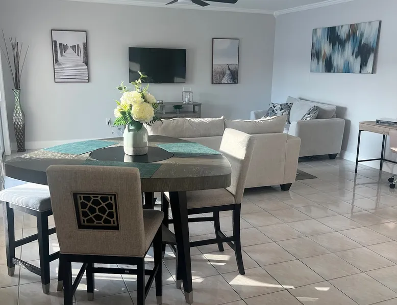 Discover your beachside getaway in our cozy 1BR/1BA condo, nestled in the heart of Fort Lauderdale. Just 2 blocks from the sun-kissed beach and vibrant dining scene, this gem offers stunning views of passing boats on the Intracoastal Waterway. Unwind in our complex featuring a refreshing pool and charming outdoor dining area. Perfect for beach lovers and explorers alike, our condo is your ideal base for a memorable Floridian escape and centrally-located place.