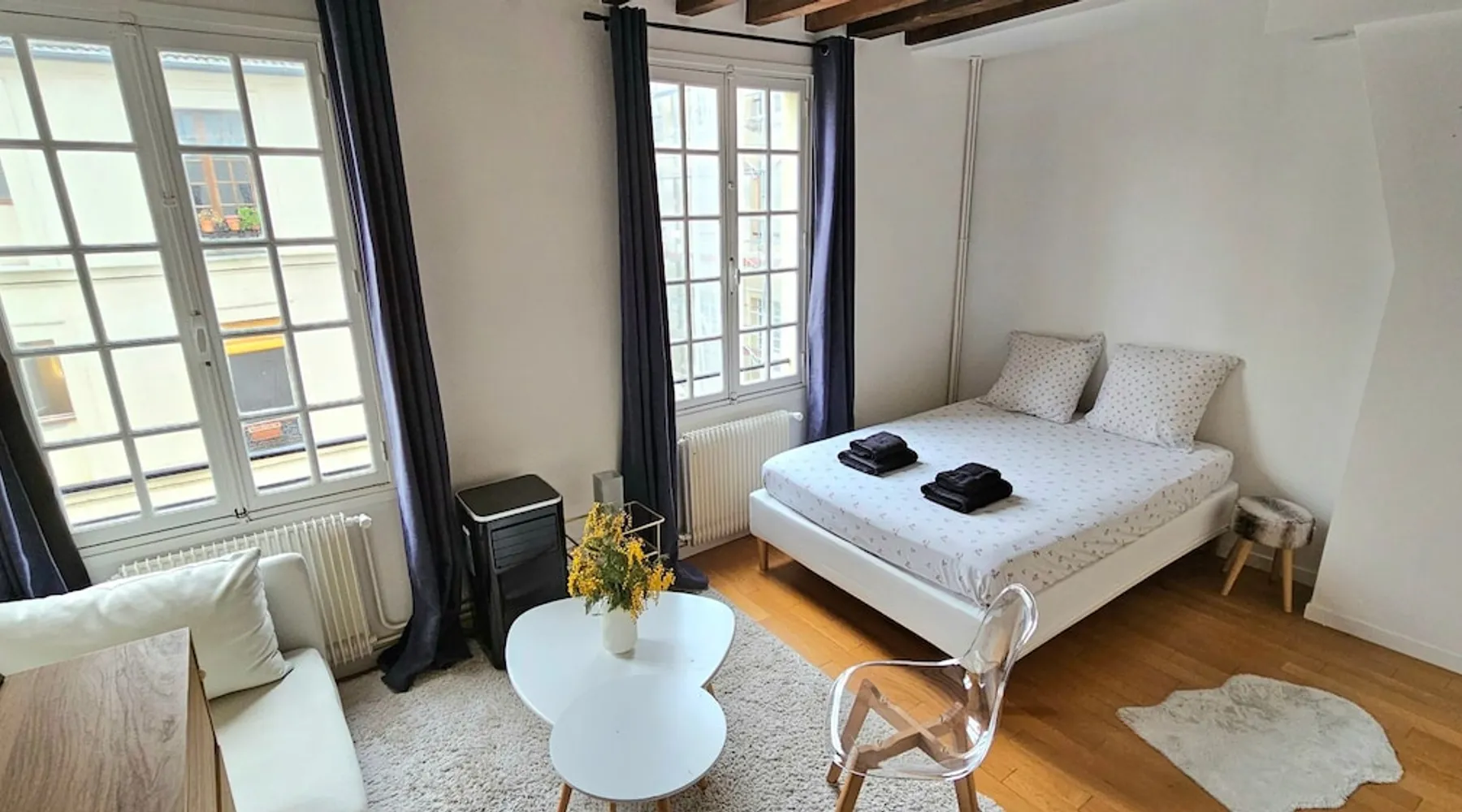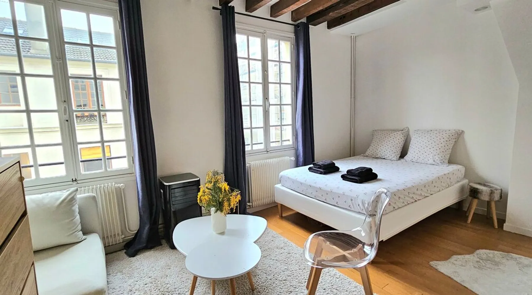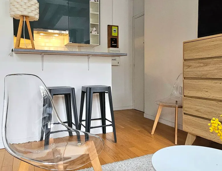 Welcome to this beautiful apartment in the heart of the 7th arrondissement of Paris and a short walk to the Eiffel Tower. Located on a shopping street and close to many amenities, it is an ideal location to discover the French capital. (two minutes walk from the station "Ecole Militaire" - Line 8) Convenient, bright and charming, this studio with exposed beams consists of a master bedroom/living room, an equipped open kitchen as well as a bathroom with shower and wc. The space Bright, in an ideal and central area of the city, this charming apartment completely renovated will make the pleasure of a couple passing through Paris. With its partial view of the Eiffel Tower, you can admire it day or night (please note that in case of work, the view of it could be obstructed). Close to many shops (Rue Cler), restaurants and public transport, it is ideal to enjoy a short or long stay in Paris. Just a 15-minute walk from the Eiffel Tower and 2 minutes from the famous Rue Saint Dominique known for its many shops, it is a prime location on the capital. The main room consists of: - a seating area with an armchair, small decorative table, chairs, to share a glass of wine as a couple, a TV and a dresser to arrange your belongings throughout the stay. - a bedroom area with a comfy double bed The kitchen open to the main room is fully equipped (stove, refrigerator, washing machine, Nespresso coffee maker, as well as all the necessary utensils to prepare good homemade dishes). It also has a bar with two high stools allowing you to share meals for two. The bathroom consists of a shower, sink and toilet. The apartment is on the 4th floor accessible without elevator. It will be provided in the accommodation: 1 large white towel per person provided by the linen company 1 white bath mat provided by the linen company rolls of toilet paper 1 sponge 1 dish soap 1 Hand soap 1 Shampoo 1 shower gel We disclaim all liability in the event of an allergy Trash bags (non-contractual photos, bed linen provided will be from a linen company and towels will be white) For any additional request a supplement may be requested Guest access The complete apartment Other things to note Additional services are offered: Laundry Cleaning service Reservation in Paris: restaurant, activity, museum, taxi, do your shopping with the list you will provide us before or during your stay. For any request please contact us via Airbnb messaging for our rates Following Covid-19, we are putting in place cleaning and disinfection measures. All surfaces are disinfected, linen and towel are rented to a hotel linen professional service Registration Details 7510715000052