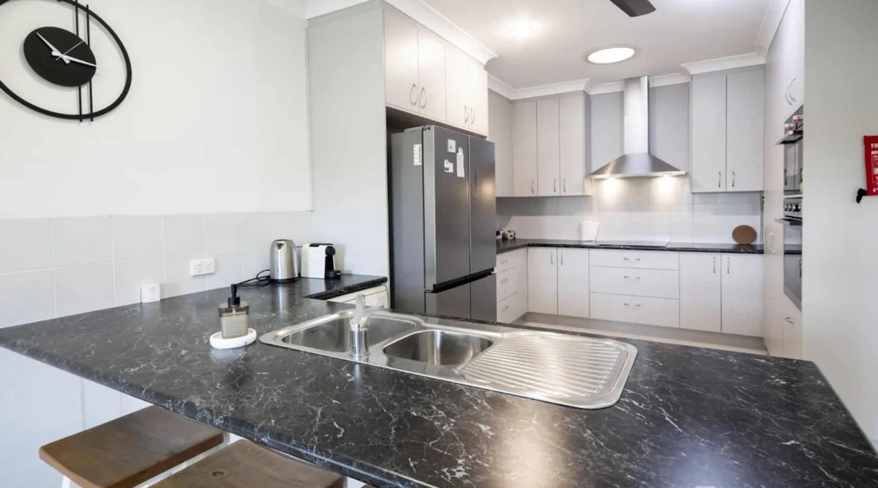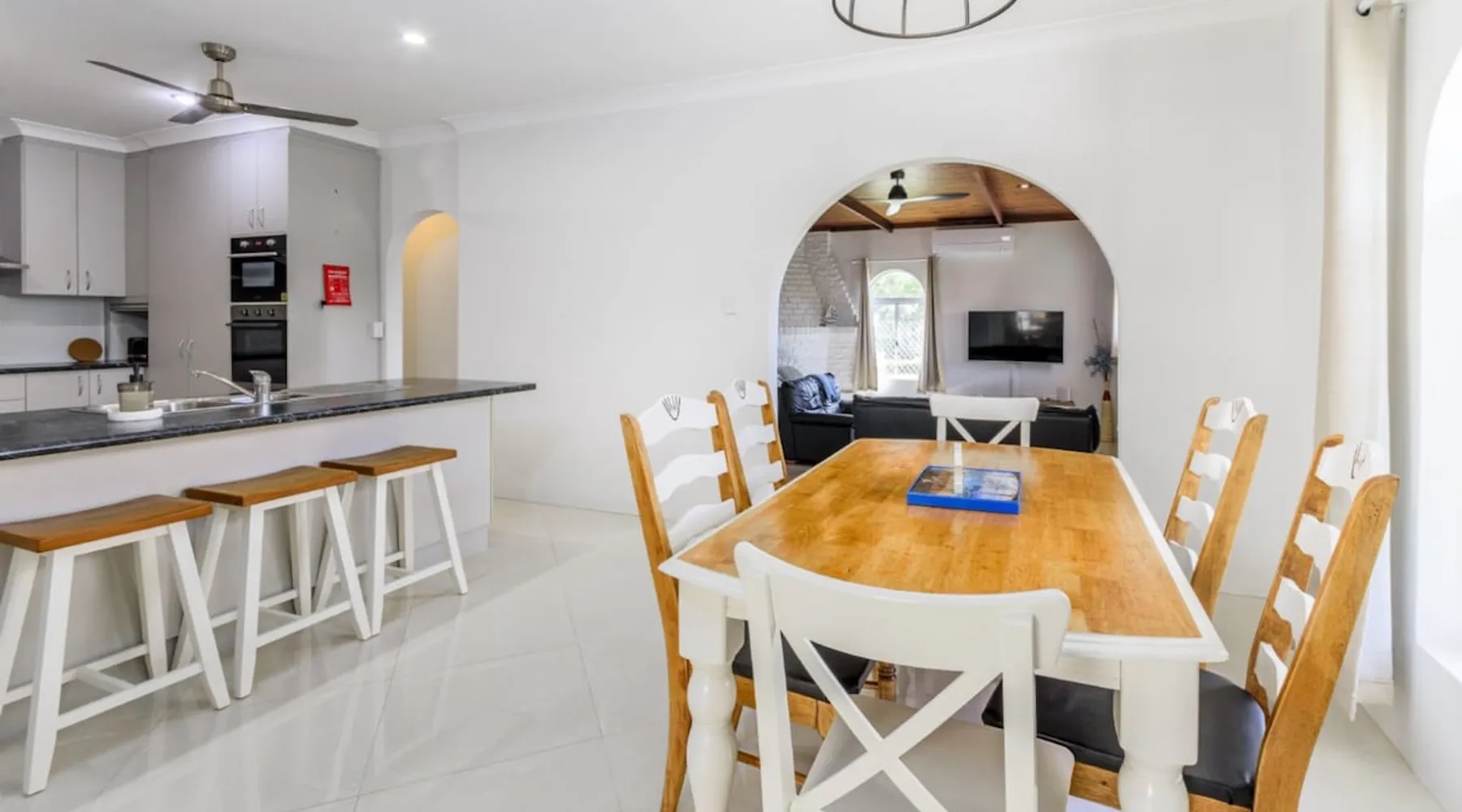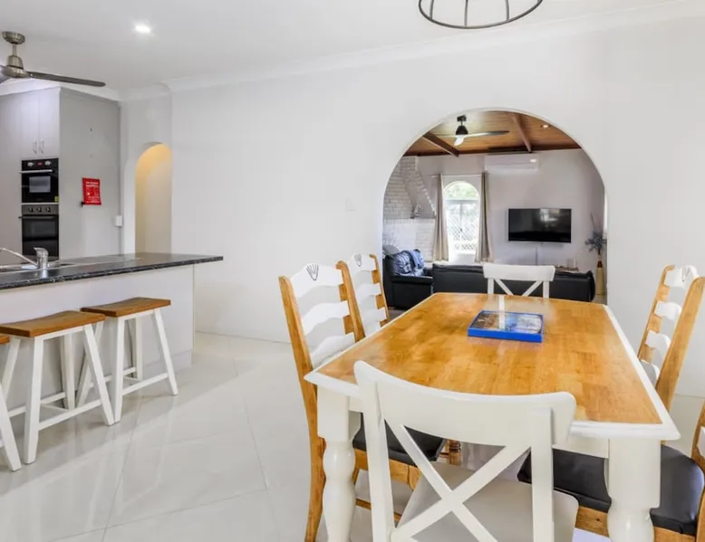 Pack up the family and make yourself at home in this 4 bedroom renovated home close to the waterfront. This spacious home away from home will tick all the boxes for your family holiday. You can curl up together and watch a movie or spend the days lounging by the pool. This property will be the perfect base for your visit to Bribie Island where you can check out the sites and enjoy the beauty of our little piece of paradise. The space * 4 bedrooms * 2 bathrooms * Unlimited WiFi * Air-conditioned lounge room * Fully equipped kitchen with dishwasher * Nespresso DeLongi coffee machine * Ceiling fans throughout * Laundry with washing machine * In-ground swimming pool (May require servicing during your stay) * Short stroll to the waterfront * 2 night minimum. Please enjoy the linen provided as part of your booking. We ask that you please ensure that there is no makeup removed on towels, hand towels and face washers. Beach towels will not be provided as part of the linen package. The information contained within the property description and photographs is subject to change. Guest access Everything Other things to note * A Refundable Security Deposit of $500. 00 is payable if you are checking in outside office hours. * Please Note: We do not offer 'serviced' accommodation. You will be provided some start up items such as a roll of toilet paper and some cleaning supplies but they will not be replenished during your stay. * You are required to leave the property in a clean and tidy condition or additional charges will apply. * If you require an after-hours check in you will need to arrange this during business hours. Any after-hours call outs will incur a $100. 00 fee. * First National Real Estate Bribie Island is closed on the following public holidays and therefore no incoming or outgoing bookings or transactions can be made on these days: Good Friday, Easter Sunday, Anzac Day, Christmas Day, Boxing Day, New Years Day. * As also stated in our terms and conditions, all bookings for December - January holiday period must be paid in full by 1st November each year. * All bookings are subject to First National Real Estate Bribie Island's Terms and Conditions. Prices are subject to change without notice.