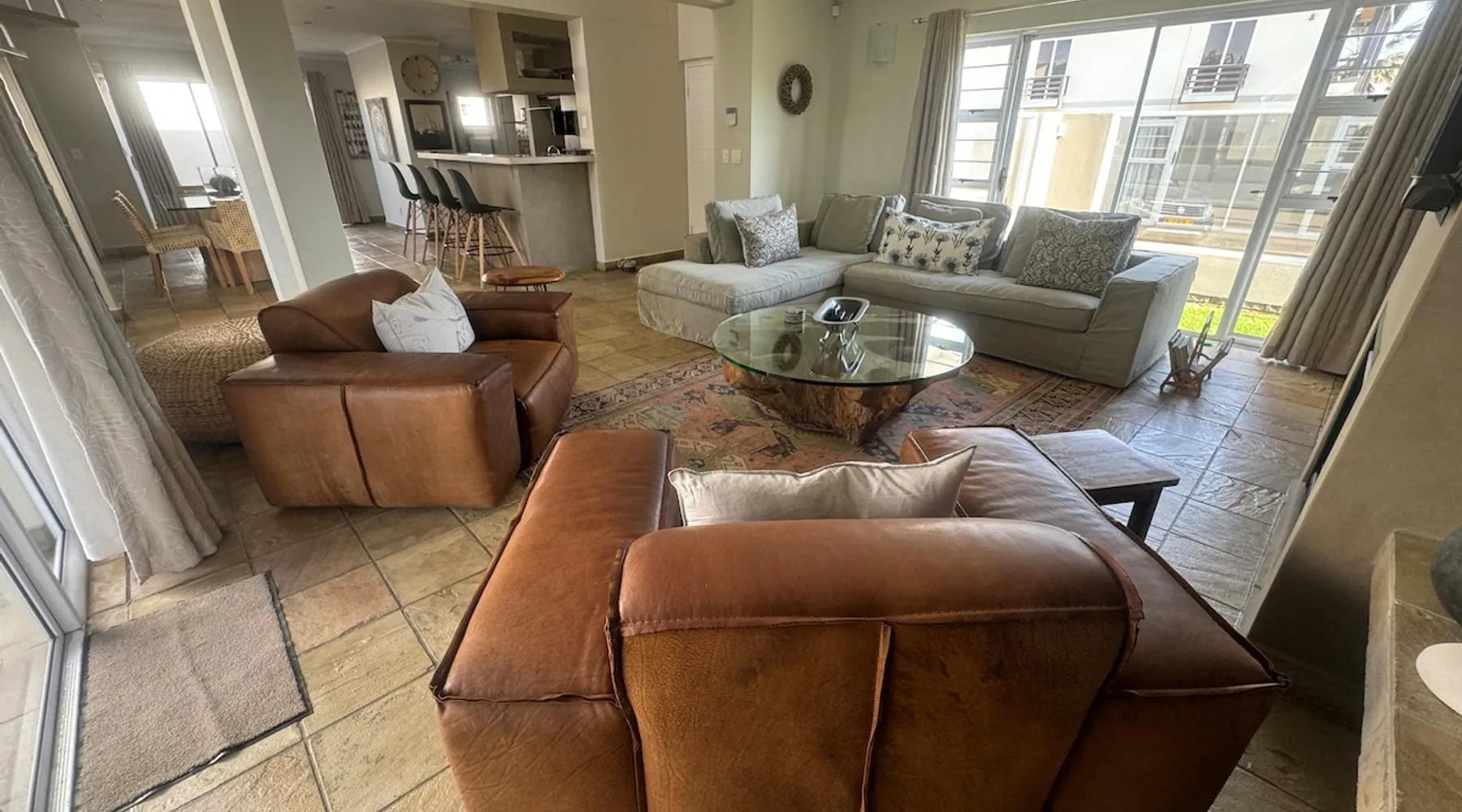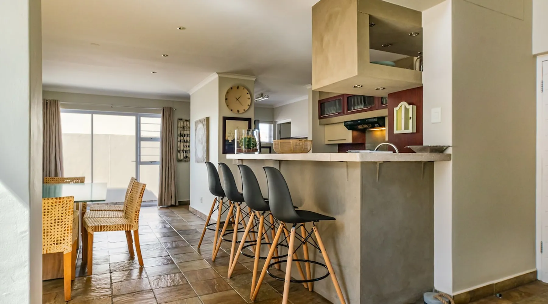 Welcome to your serene escape in this cozy 3-bedroom holiday home just a short walk from the beach. Enjoy tranquil mornings with coffee on the patio, explore the vibrant local area, or simply relax in our comfortable bedrooms after a long day of sun. With ample amenities and easy access to the beach, our home is perfect for anyone seeking relaxation and rejuvenation. Book your peaceful vacation today! The space Possession Island is a duplex house (ground floor and upper floor) which offers a lovely living/dining area which can seat up to 6, open plan fully equipped kitchen, 3 bedrooms , two full bathrooms and separate guest toilet. Outside you have a private patio with seating available and a BBQ The kitchen is fully equipped and offers a dishwasher and washing machine. Free wifi is included in the rate, should guests want to make use of DSTV this can be arrange at an additional cost Guest access Guests will have full access to the entire property downstairs and upstairs, plus a lovely well maitained garden. The property is private and shared with nobody Wifi is included for free, parking is offered in a double lockable garage and ample street parking is offered in front of the garages which is free Other things to note Tuesdays the gardner and garden service will attend to the garden