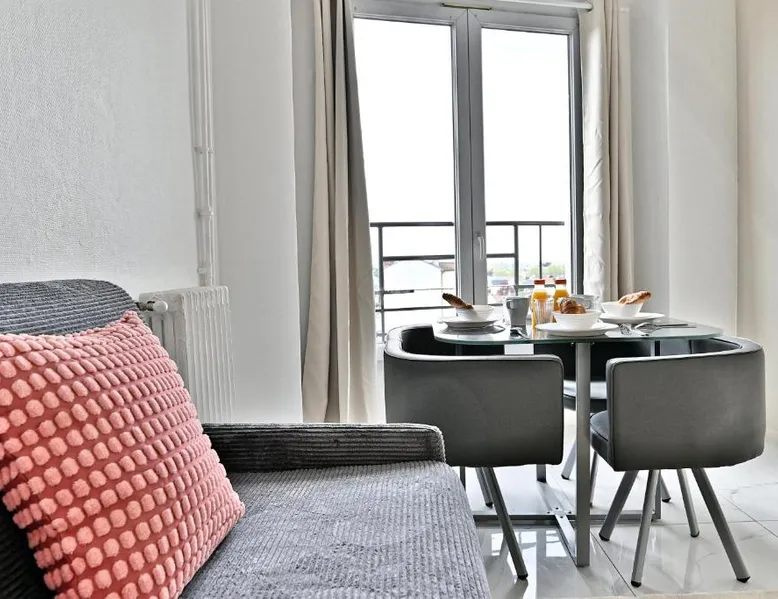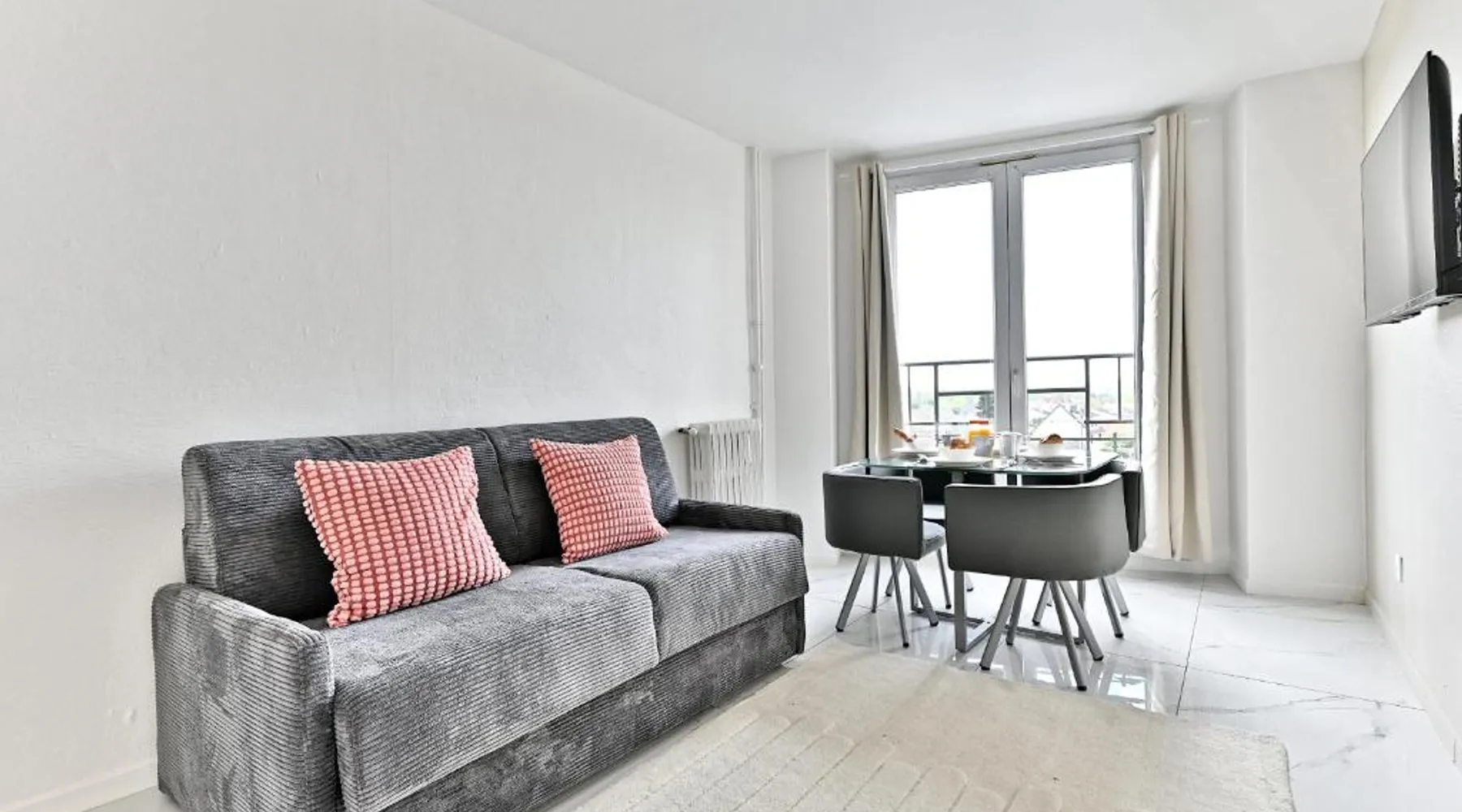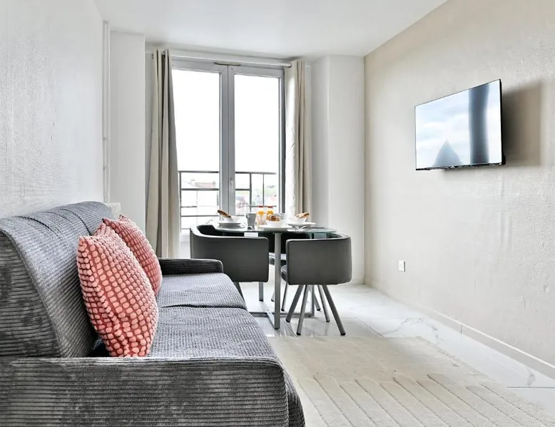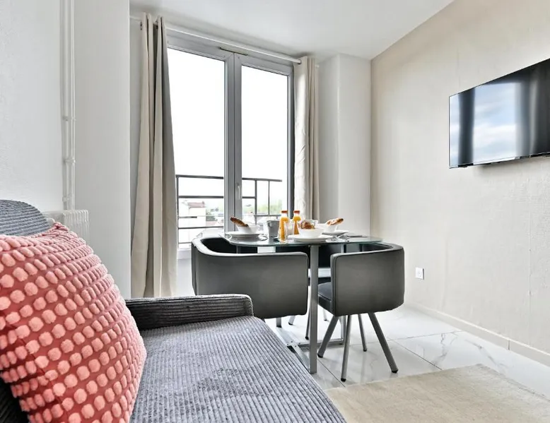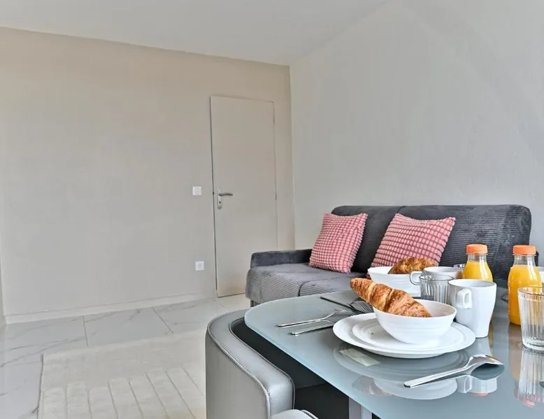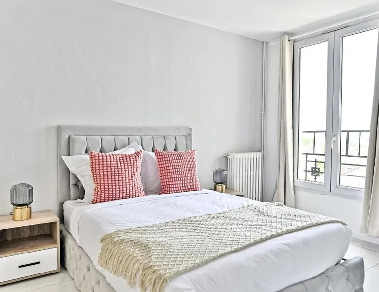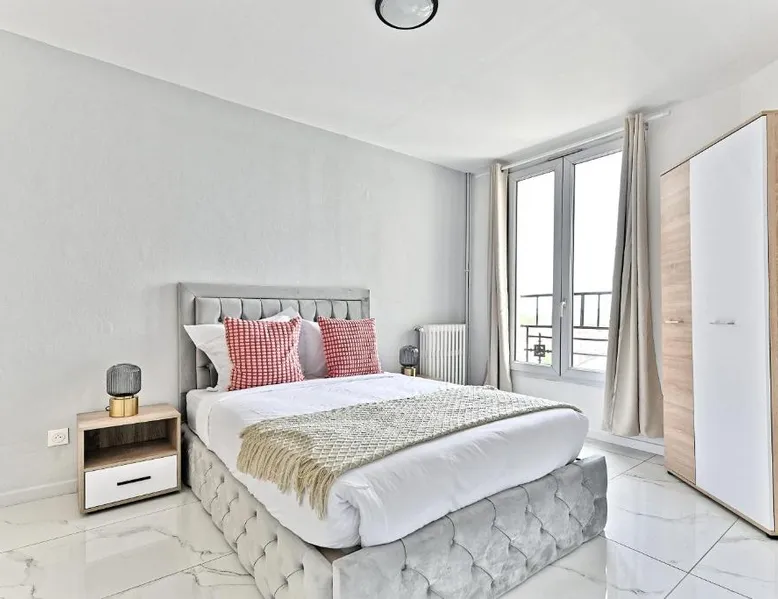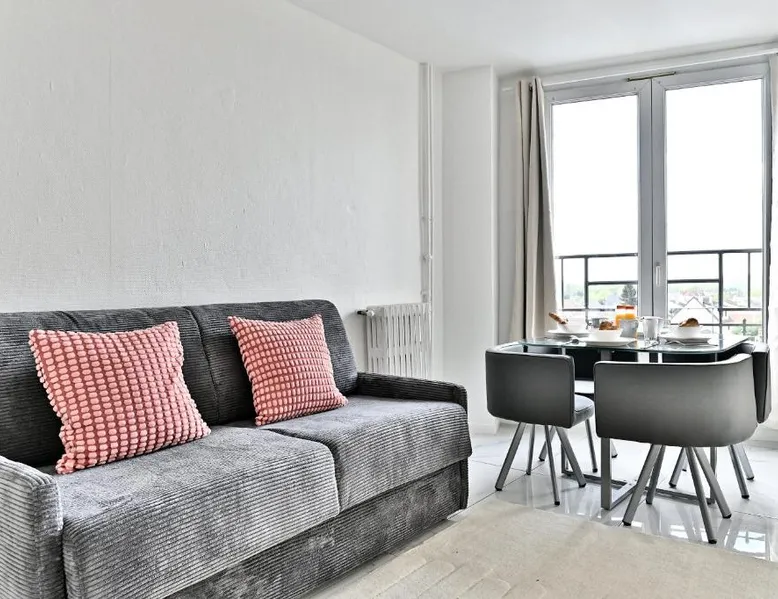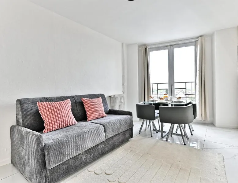 Modern Comforts: Appartement paisible et moderne - Gagny in Gagny offers a comfortable apartment with one bedroom and a living room. The property includes a dining area, sofa bed, and a fully equipped kitchen with a refrigerator, oven, and coffee machine. Essential Amenities: Guests can enjoy a tea and coffee maker, shower, and a seating area. The apartment features a city view and a dining table, providing a relaxing and convenient stay. Convenient Location: Located 11 mi from Paris Charles de Gaulle Airport, the apartment is close to Gare du Nord (9.9 mi), Gare de l'Est (11 mi), and La Cigale Concert Hall (11 mi). Nearby attractions include Pompidou Center and Stade de France, each 11 mi away. Local Surroundings: The area offers a restaurant and an ice-skating rink, providing additional leisure options for guests. This apartment features 1 living room, 1 separate bedroom and 1 bathroom with a shower. The unit has a seating area, a tea and coffee maker, a dining area and also has city views. The unit has 2 beds.