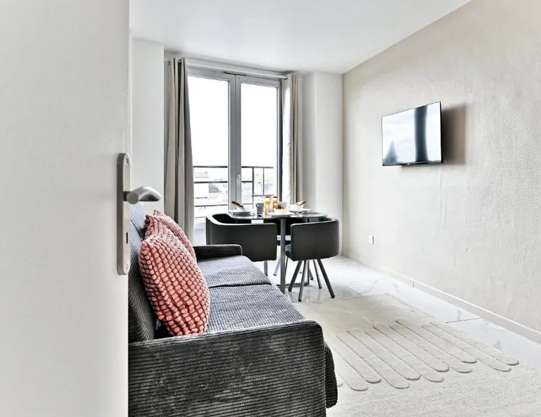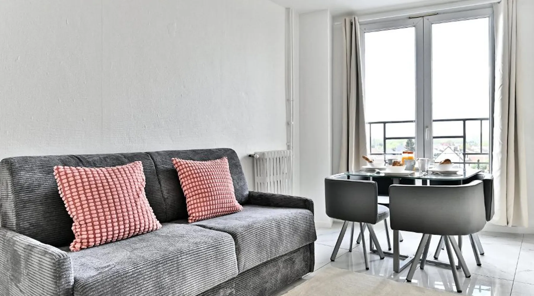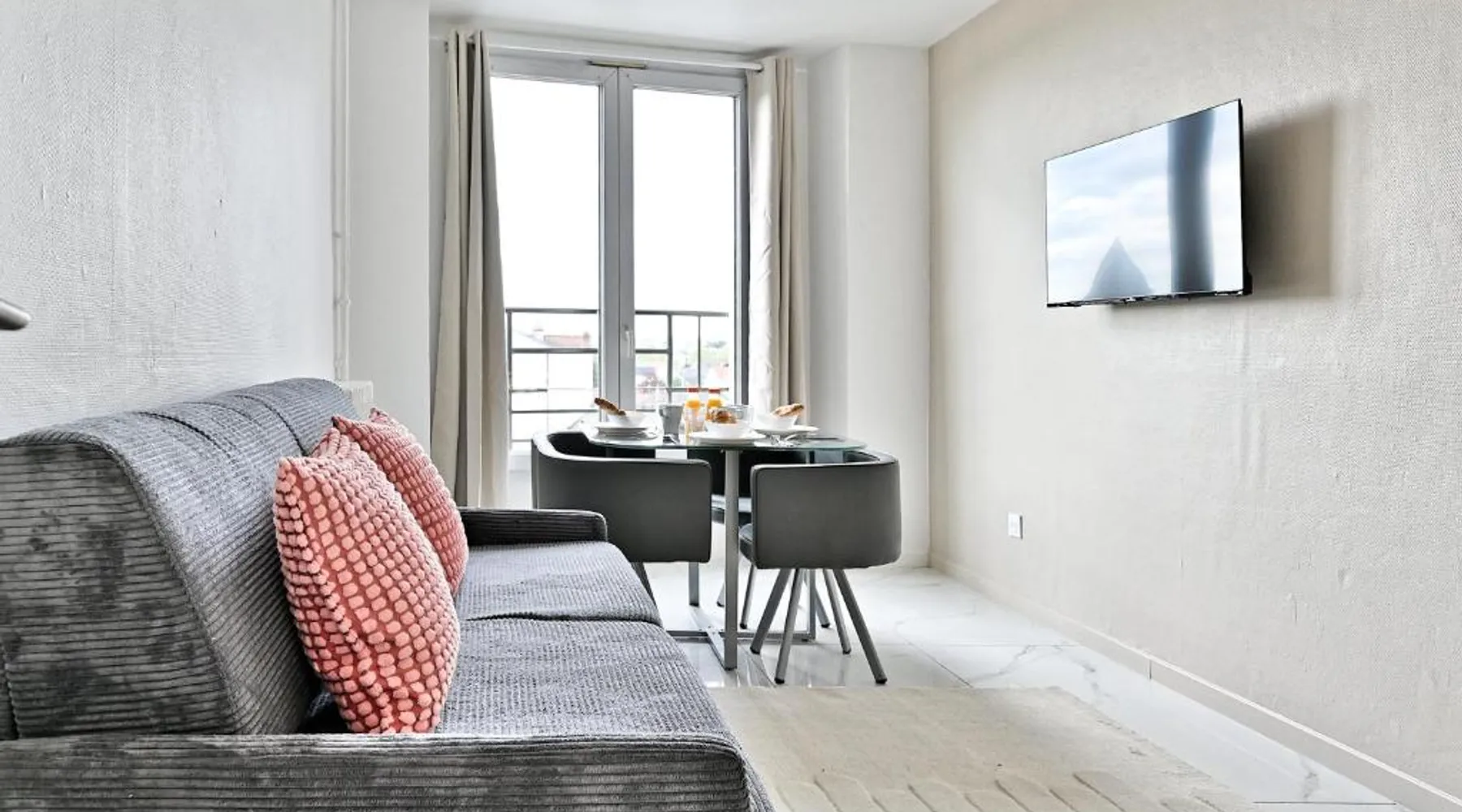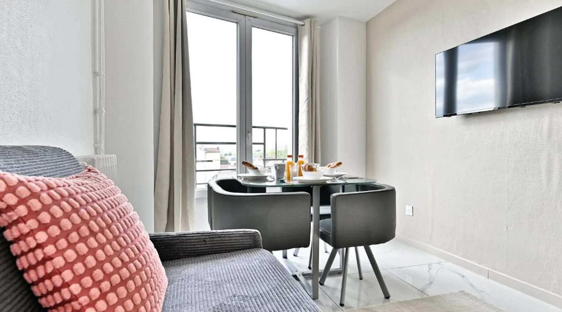 Modern Comforts: Appartement paisible et moderne - Gagny in Gagny offers a comfortable apartment with one bedroom and a living room. The property includes a dining area, sofa bed, and a fully equipped kitchen with a refrigerator, oven, and coffee machine. Essential Amenities: Guests can enjoy a tea and coffee maker, shower, and a seating area. The apartment features a city view and a dining table, providing a relaxing and convenient stay. Convenient Location: Located 11 mi from Paris Charles de Gaulle Airport, the apartment is close to Gare du Nord (9.9 mi), Gare de l'Est (11 mi), and La Cigale Concert Hall (11 mi). Nearby attractions include Pompidou Center and Stade de France, each 11 mi away. Local Surroundings: The area offers a restaurant and an ice-skating rink, providing additional leisure options for guests. This apartment features 1 living room, 1 separate bedroom and 1 bathroom with a shower. The unit has a seating area, a tea and coffee maker, a dining area and also has city views. The unit has 2 beds.