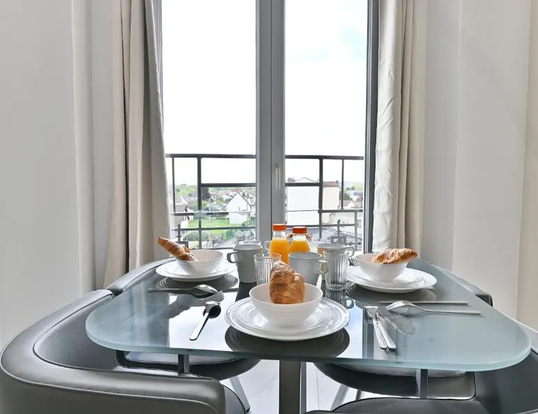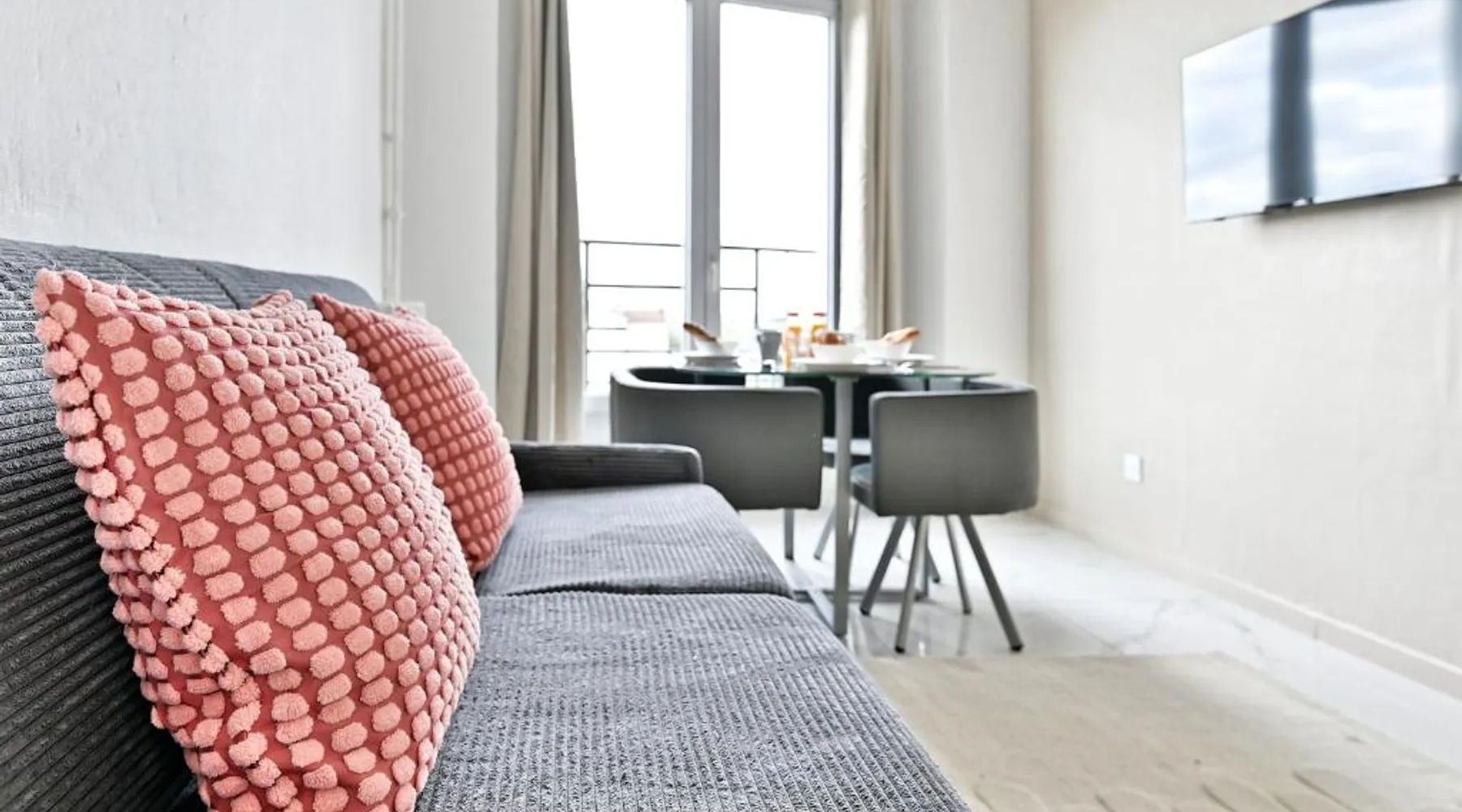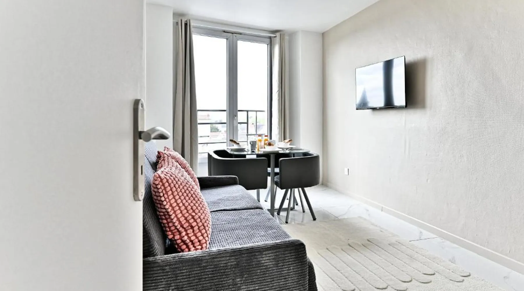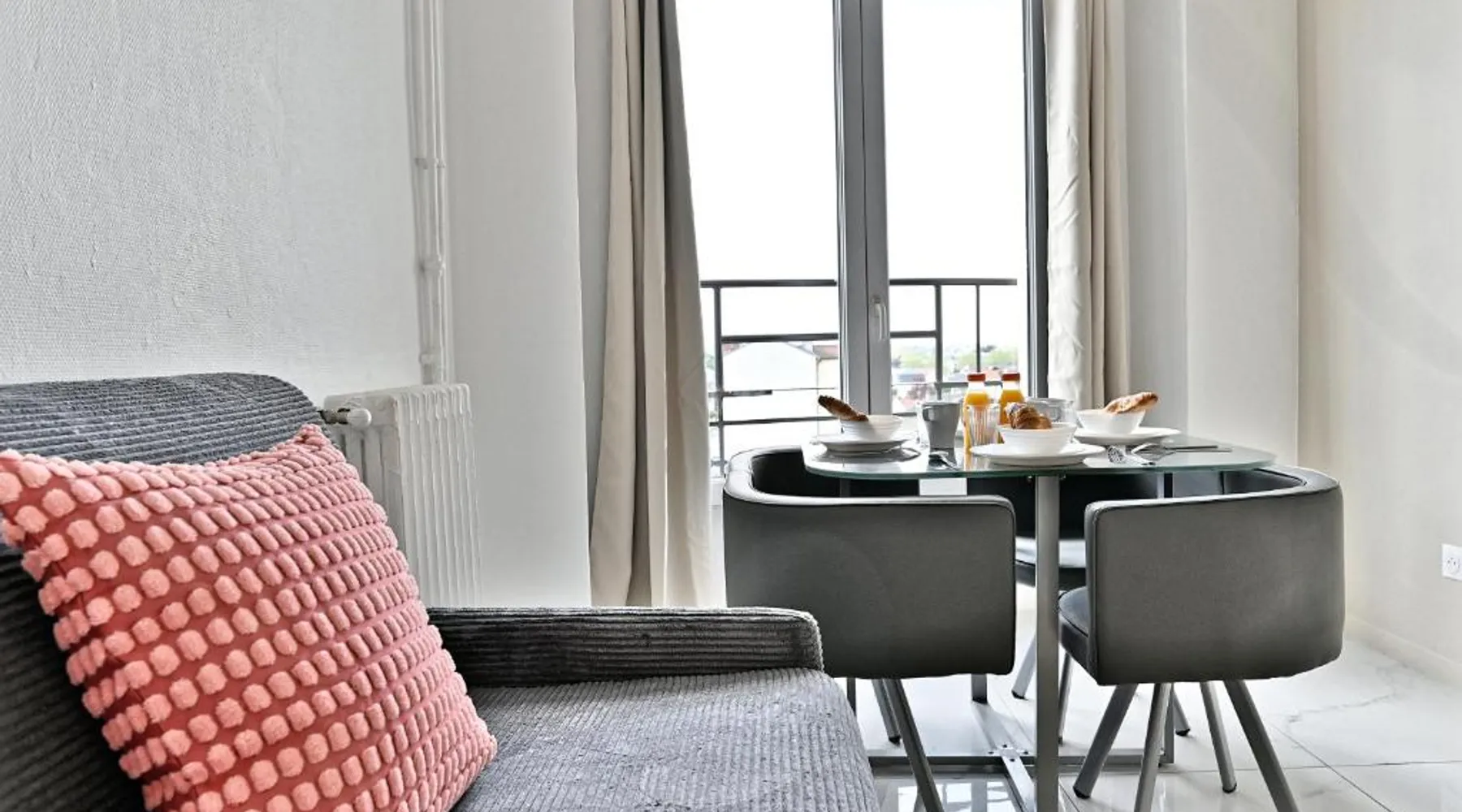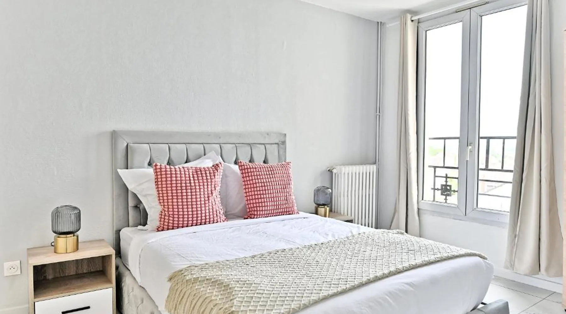 Modern Comforts: Appartement paisible et moderne - Gagny in Gagny offers a comfortable apartment with one bedroom and a living room. The property includes a dining area, sofa bed, and a fully equipped kitchen with a refrigerator, oven, and coffee machine. Essential Amenities: Guests can enjoy a tea and coffee maker, shower, and a seating area. The apartment features a city view and a dining table, providing a relaxing and convenient stay. Convenient Location: Located 11 mi from Paris Charles de Gaulle Airport, the apartment is close to Gare du Nord (9.9 mi), Gare de l'Est (11 mi), and La Cigale Concert Hall (11 mi). Nearby attractions include Pompidou Center and Stade de France, each 11 mi away. Local Surroundings: The area offers a restaurant and an ice-skating rink, providing additional leisure options for guests. This apartment features 1 living room, 1 separate bedroom and 1 bathroom with a shower. The unit has a seating area, a tea and coffee maker, a dining area and also has city views. The unit has 2 beds.