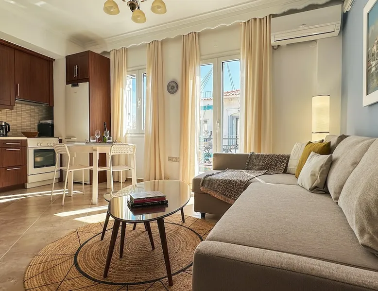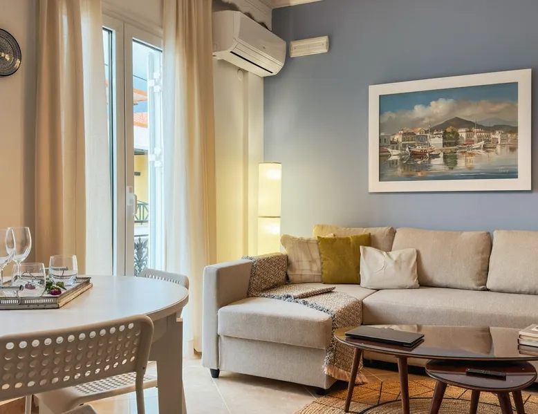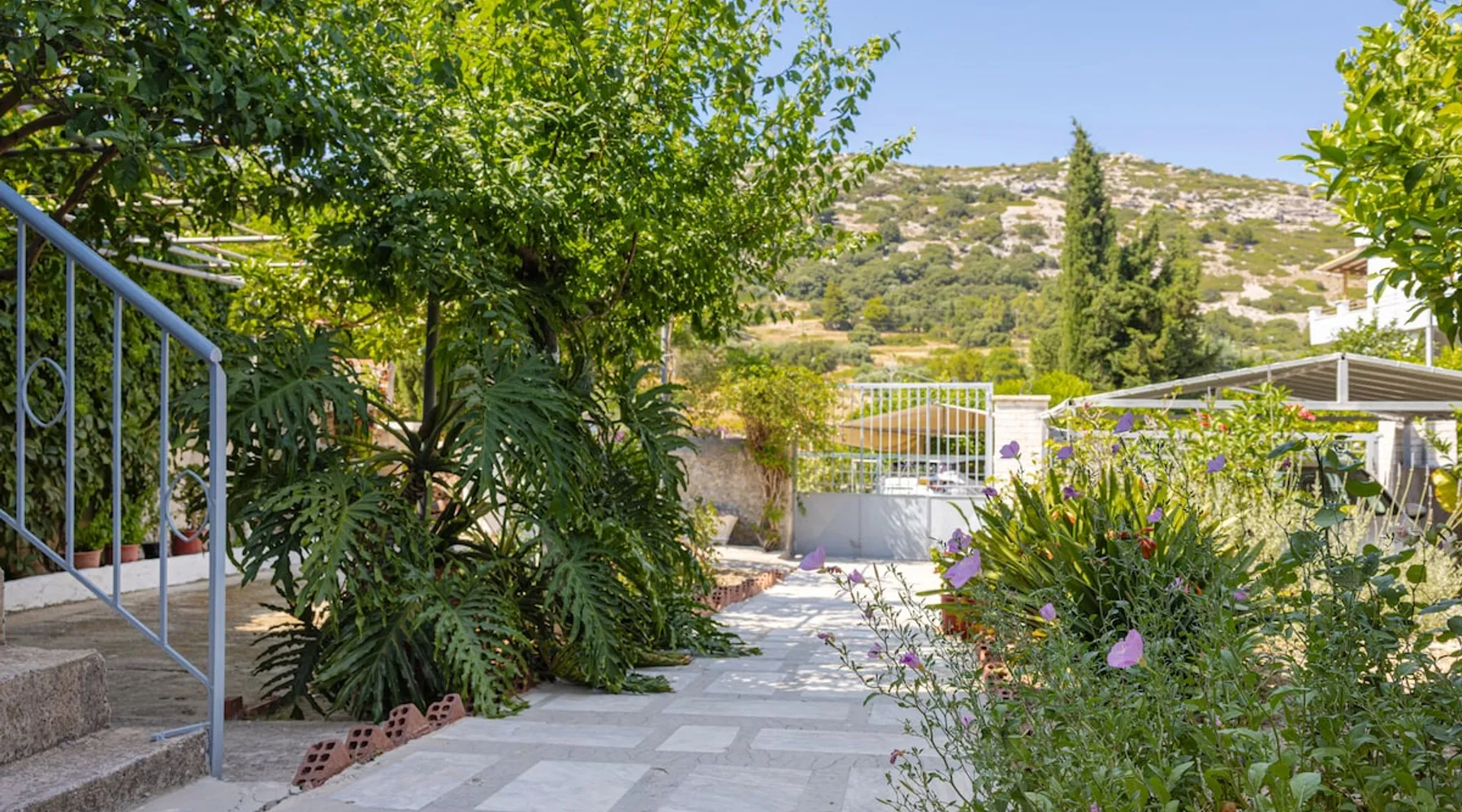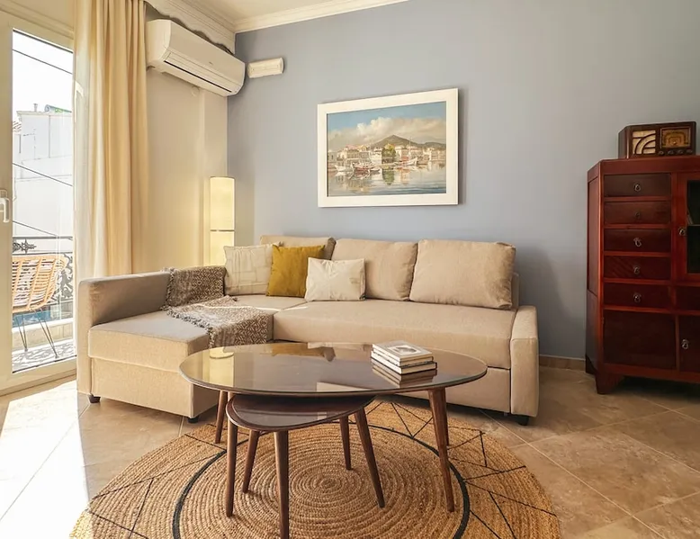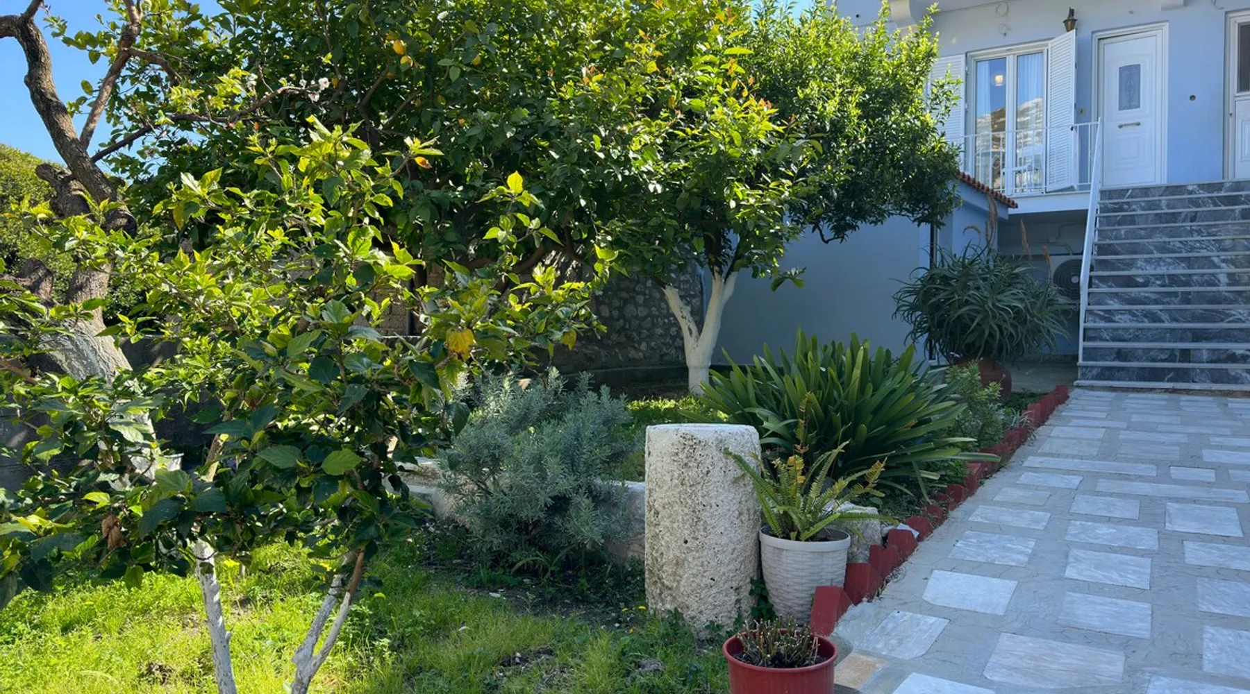 The 50m2 apartment combines comfort and style, fully renovated (2024) to ensure you an excellent quality of stay. It is in a very central location, 3km from Samos airport, 100m from the Archaeological Museum, 150m from the nearest beach and very close to all points of archaeological or tourist interest. It has direct access to the main pedestrian street which allows you to reach all the popular restaurants, tourist shops and coffee bars in 2 to 5 minutes on foot. The space The house can accommodate up to three (3) people (ideally up to 2 adults and up to 1 children), with a queen-size bed (160x200cm) in the main bedroom and a large comfortable corner sofa (140X200cm) in the living room. The bedroom, featuring a queen-size bed (160x200cm), a spacious wardrobe, and a balcony, offers a direct view of the property's large garden and the mountain. In the living room, there is a large (150X230cm) and comfortable corner sofa that doubles as a bed for two persons. A large 43-inch high-definition Smart TV is provided for your entertainment. The large living room and dining room are forming a single space, and have access to the main balcony, which offers a view over the main street of Pythagorio. Guest access The visitor during his stay can make use of all areas of the accommodation as well as the large garden located in the front of the apartment. Other things to note Communication is key, and we want to ensure you have a worry-free stay. Prior to your check in we will provide you an analytic guide regarding the apartment, things to do around the island and how to communicate with us. Registration Details 00002452749
