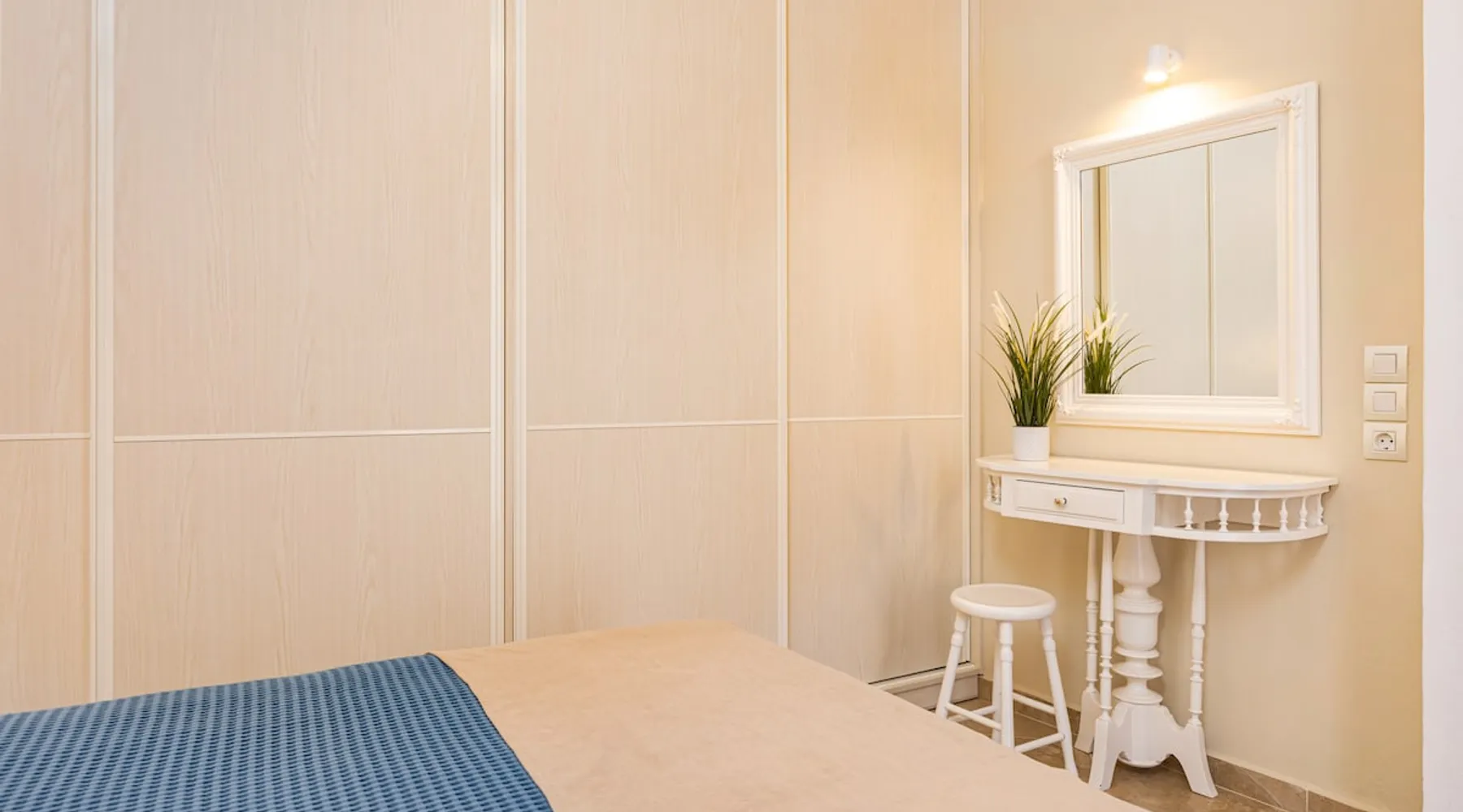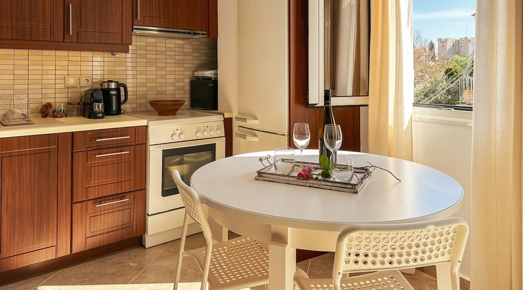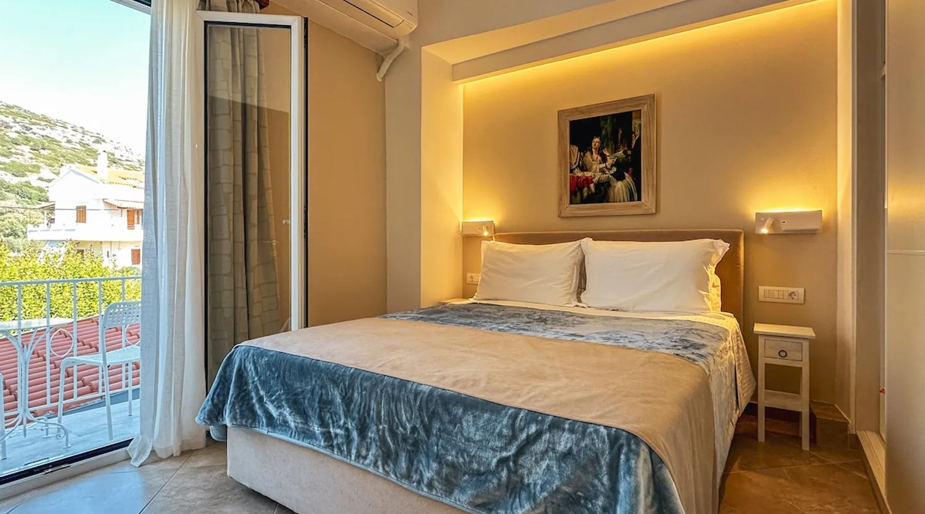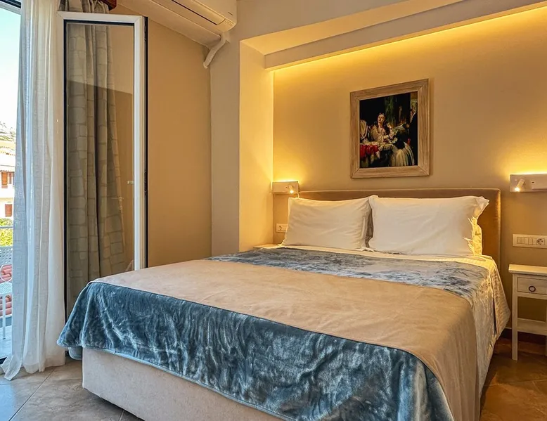 The 50m2 apartment combines comfort and style, fully renovated (2024) to ensure you an excellent quality of stay. It is in a very central location, 3km from Samos airport, 100m from the Archaeological Museum, 150m from the nearest beach and very close to all points of archaeological or tourist interest. It has direct access to the main pedestrian street which allows you to reach all the popular restaurants, tourist shops and coffee bars in 2 to 5 minutes on foot. The space The house can accommodate up to three (3) people (ideally up to 2 adults and up to 1 children), with a queen-size bed (160x200cm) in the main bedroom and a large comfortable corner sofa (140X200cm) in the living room. The bedroom, featuring a queen-size bed (160x200cm), a spacious wardrobe, and a balcony, offers a direct view of the property's large garden and the mountain. In the living room, there is a large (150X230cm) and comfortable corner sofa that doubles as a bed for two persons. A large 43-inch high-definition Smart TV is provided for your entertainment. The large living room and dining room are forming a single space, and have access to the main balcony, which offers a view over the main street of Pythagorio. Guest access The visitor during his stay can make use of all areas of the accommodation as well as the large garden located in the front of the apartment. Other things to note Communication is key, and we want to ensure you have a worry-free stay. Prior to your check in we will provide you an analytic guide regarding the apartment, things to do around the island and how to communicate with us. Registration Details 00002452749