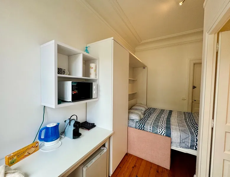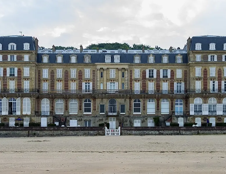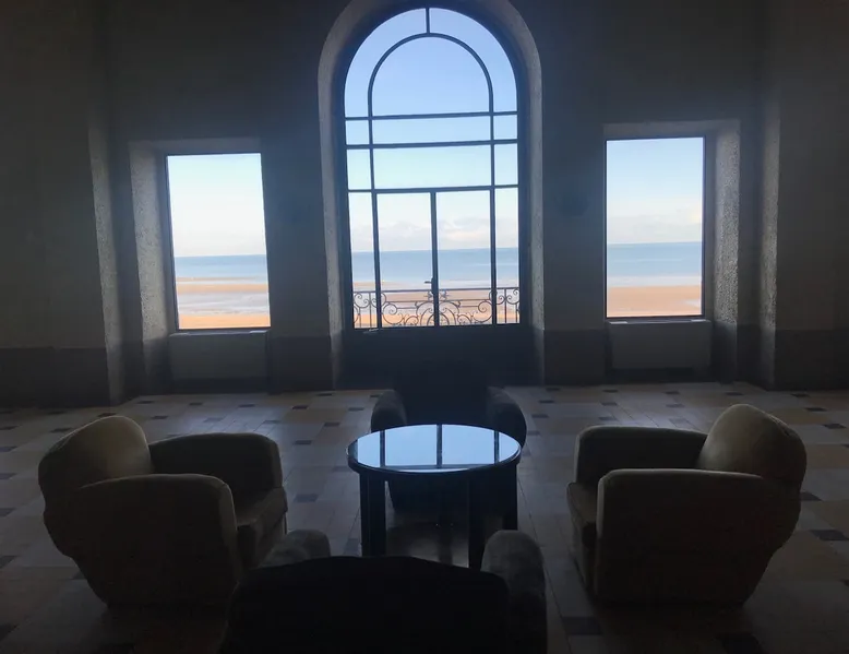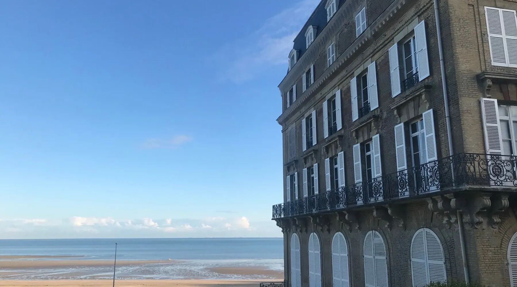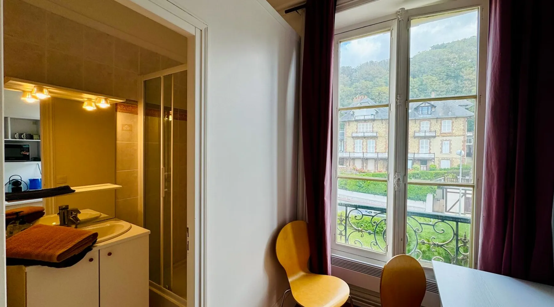 Located in Trouville-sur-Mer, ideally located facing the sea with direct access to the beach. The magnificent hall classified as a historical monument, deck overlooking the sea, private parking, caretaker. Small bedroom (13 m2) refurbished on the 2nd floor floor with elevator elevator elevator. 160 x 190 cm foldaway bed (very comfortable mattress of 24 cm), a 163 cm HD TV, Wi-Fi, private parking, ultra quiet fridge, shower with sink and mirror. Toilet on the landing to be shared with very few residents.