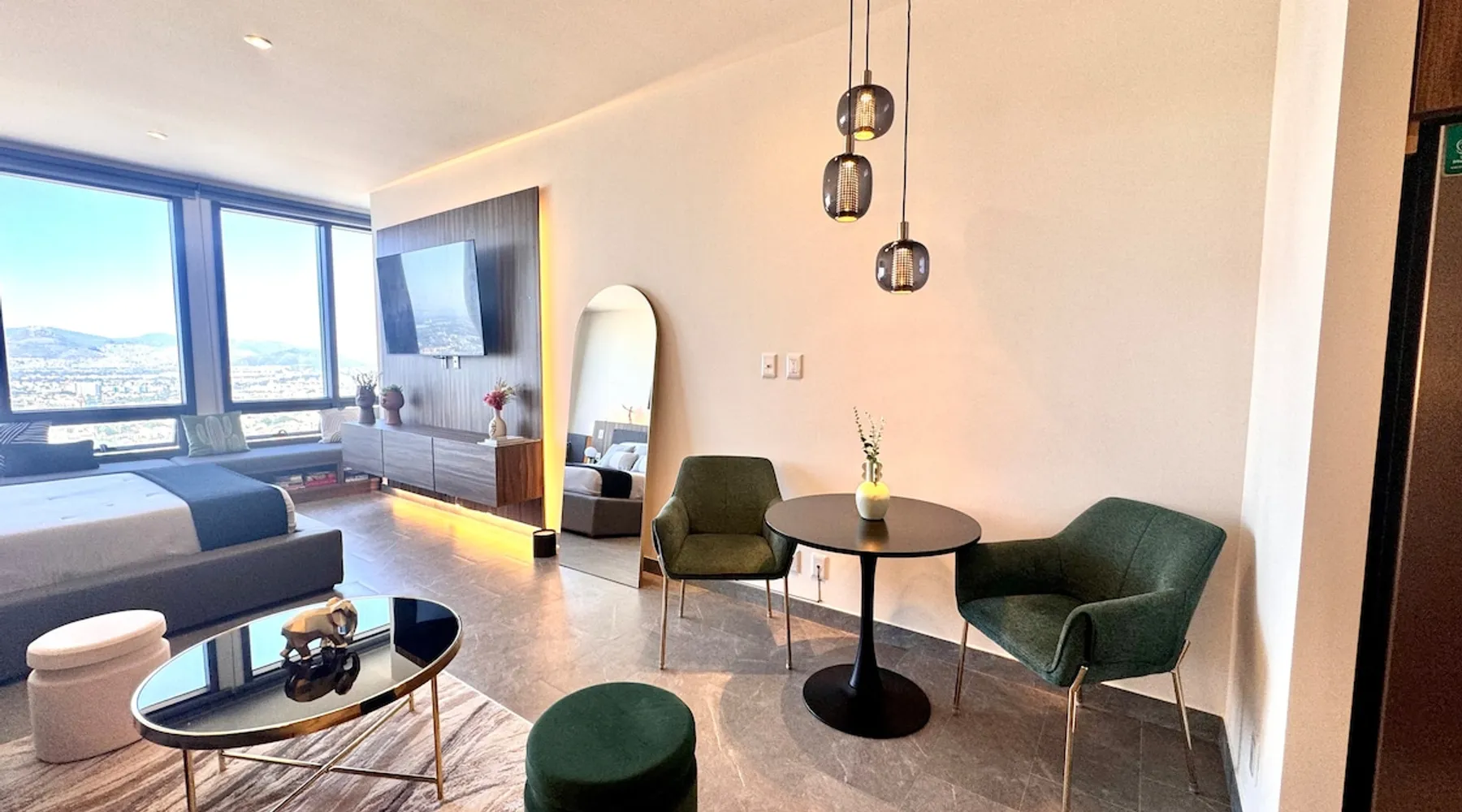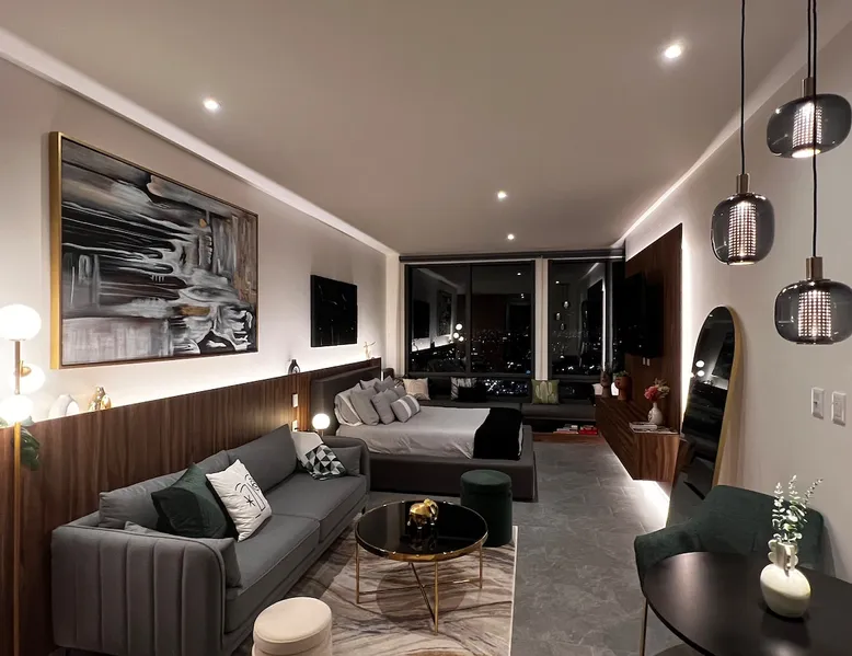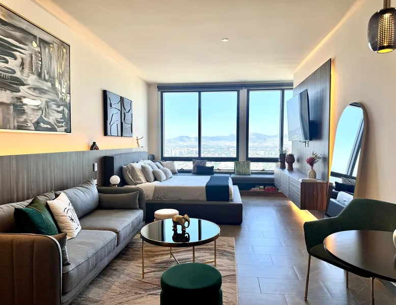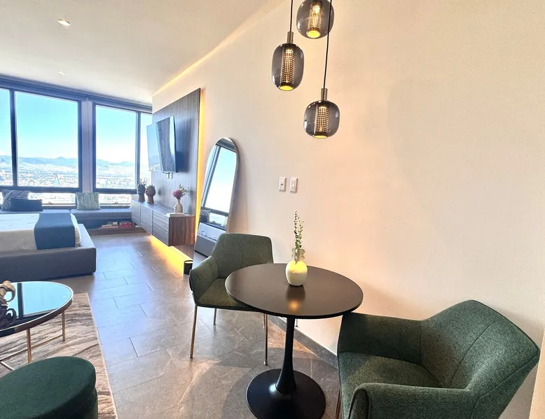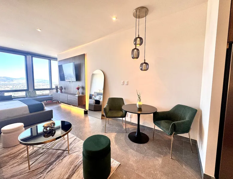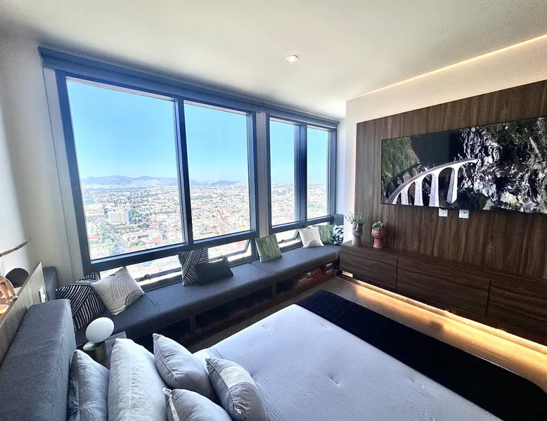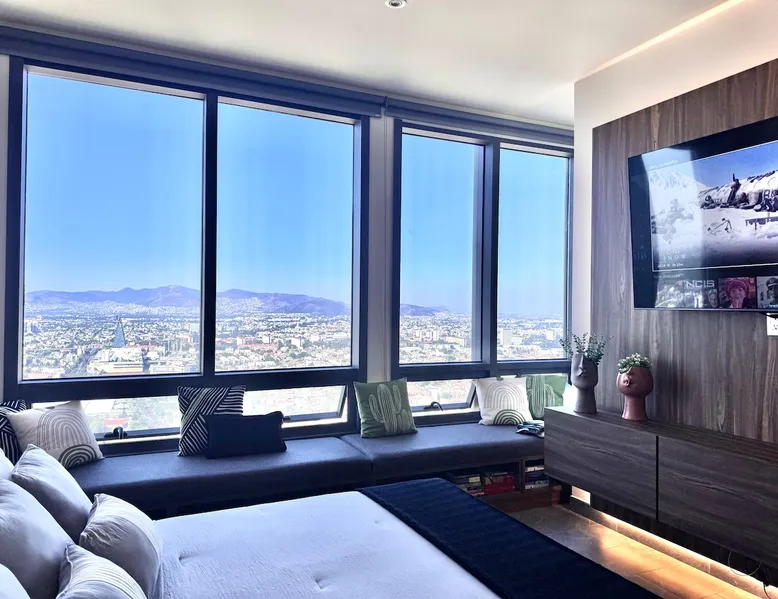 Enjoy one of the most amazing neighborhoods in Mexico City. This place is central and surrounded by restaurants, museums, and iconic landmarks within the city. The area is terrific and very well connected to the whole city. You will love the view from one of the tallest buildings in the city. Undoubtedly, it’s an outstanding place to stay and experience one of the best and biggest cities in the world. The space This brand-new building is located in a central area of Mexico City, just a few steps away from Avenida Reforma and the Monumento a la Revolucion. The suite includes a cozy living room, a dining area, a fully equipped kitchen, a queen-size bed, a closet, a full bathroom, and a fantastic view of one of the most iconic landmarks in Mexico City. In addition, you will have access to a range of amenities, such as a gym, a jacuzzi, a swimming pool, a steam room, a barbershop, a beauty salon, a sports bar, a co-working space, and a balcony area where you can enjoy the weather and the breathtaking views of the city. Guest access The building has 24-hour security, and entry is only permitted through a QR code. Guests have access to various facilities, such as a pool, a jacuzzi, a sauna, bathrooms, and changing rooms. However, the spa requires a reservation for use. Additionally, swim caps are required in the pool for hygiene reasons. This is not required for the jacuzzi. Other things to note The building’s structure does not allow for the installation of air conditioning; however, it does have two ventilation towers for the Summer.