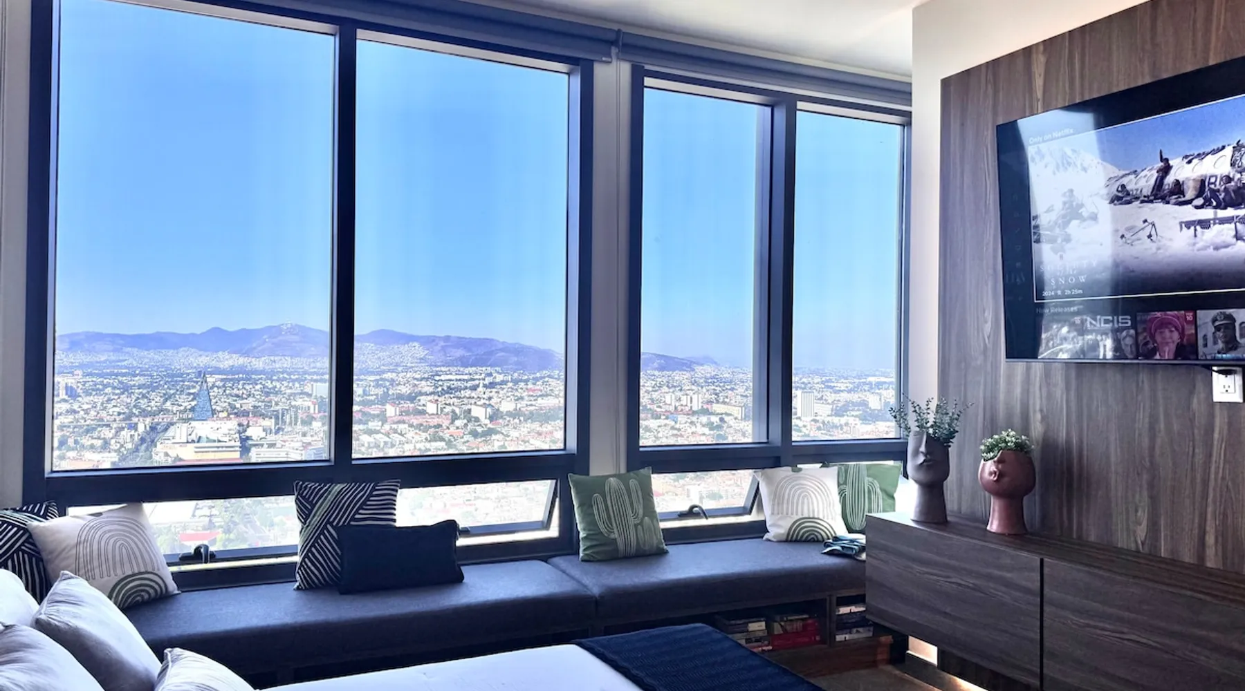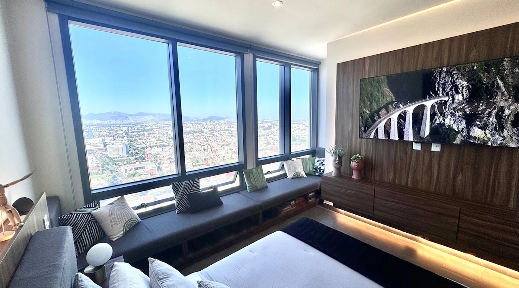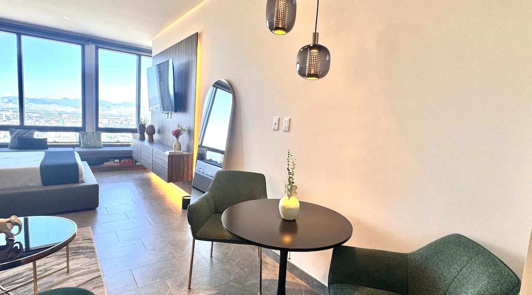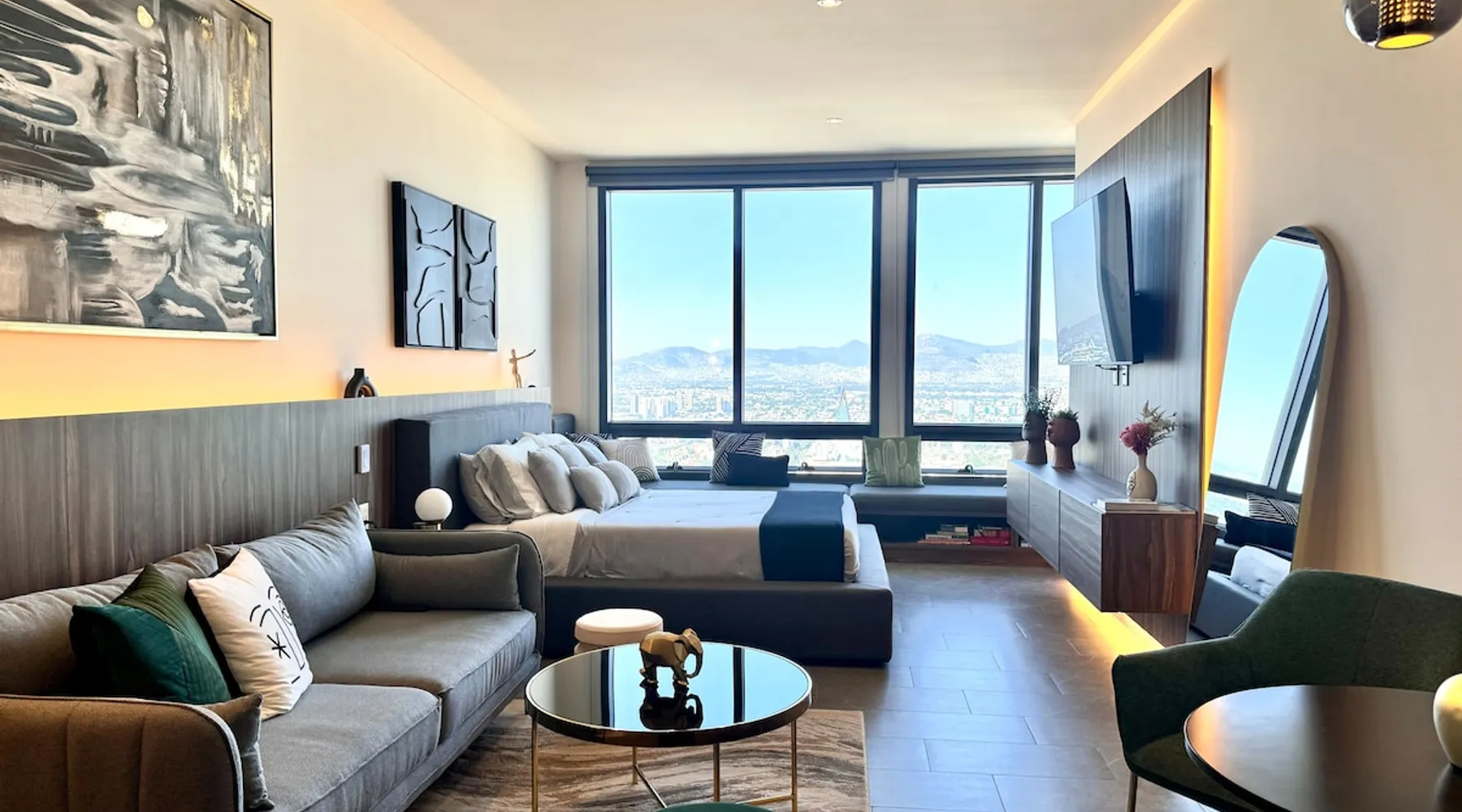 Enjoy one of the most amazing neighborhoods in Mexico City. This place is central and surrounded by restaurants, museums, and iconic landmarks within the city. The area is terrific and very well connected to the whole city. You will love the view from one of the tallest buildings in the city. Undoubtedly, it’s an outstanding place to stay and experience one of the best and biggest cities in the world. The space This brand-new building is located in a central area of Mexico City, just a few steps away from Avenida Reforma and the Monumento a la Revolucion. The suite includes a cozy living room, a dining area, a fully equipped kitchen, a queen-size bed, a closet, a full bathroom, and a fantastic view of one of the most iconic landmarks in Mexico City. In addition, you will have access to a range of amenities, such as a gym, a jacuzzi, a swimming pool, a steam room, a barbershop, a beauty salon, a sports bar, a co-working space, and a balcony area where you can enjoy the weather and the breathtaking views of the city. Guest access The building has 24-hour security, and entry is only permitted through a QR code. Guests have access to various facilities, such as a pool, a jacuzzi, a sauna, bathrooms, and changing rooms. However, the spa requires a reservation for use. Additionally, swim caps are required in the pool for hygiene reasons. This is not required for the jacuzzi. Other things to note The building’s structure does not allow for the installation of air conditioning; however, it does have two ventilation towers for the Summer.