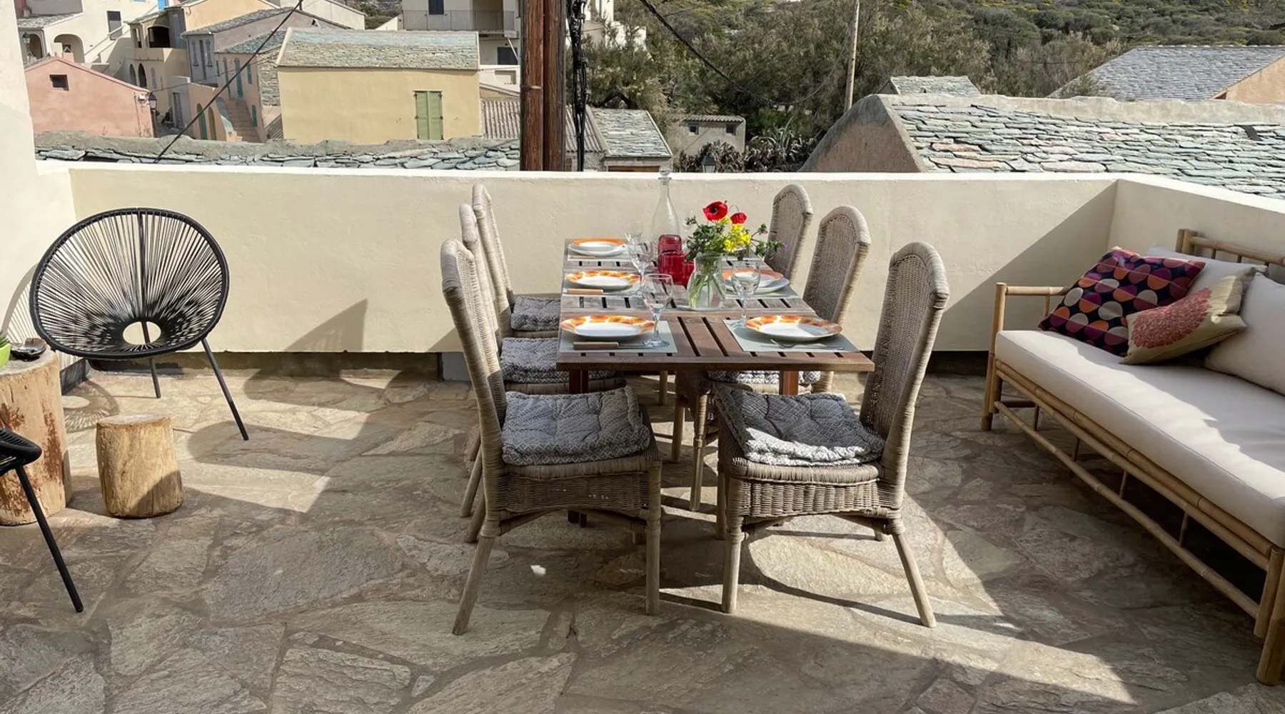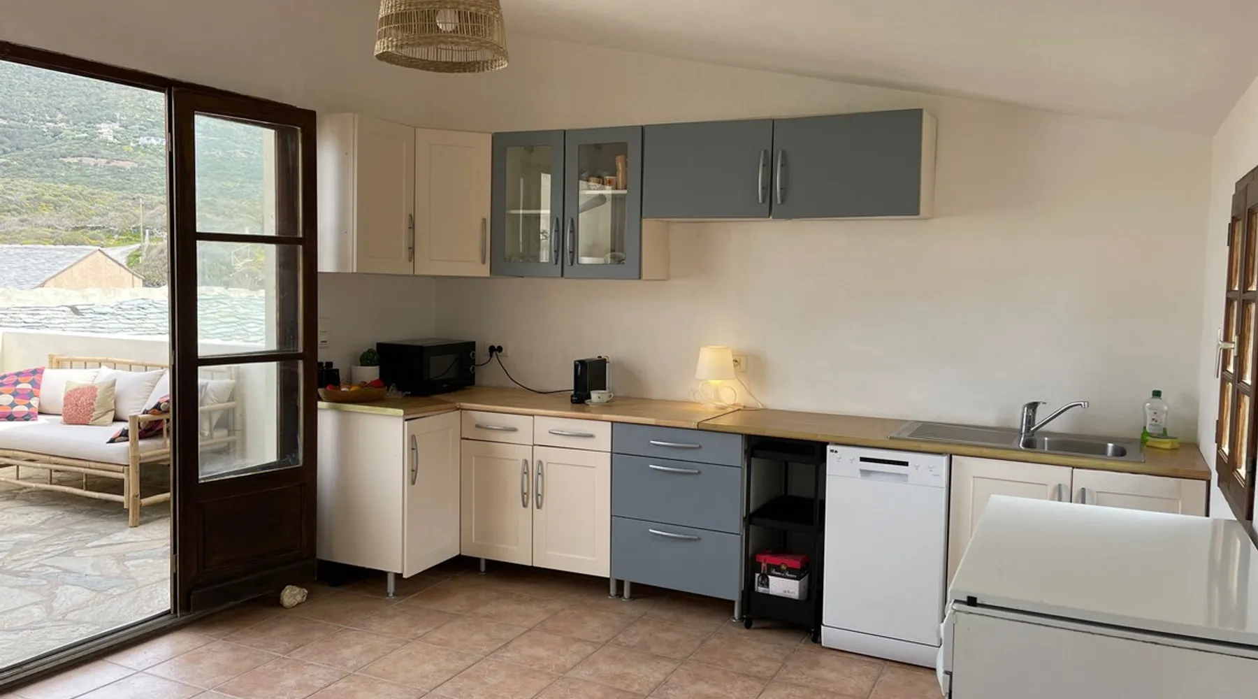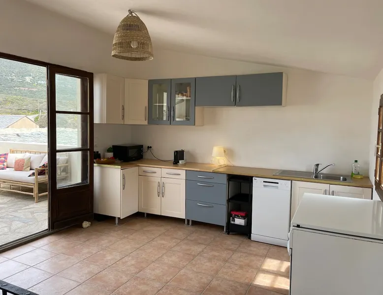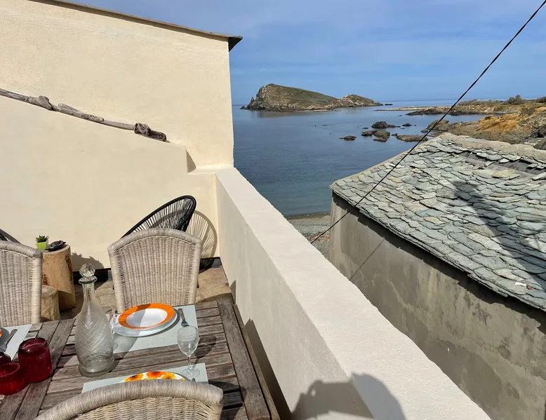House in a car-free village, literally by the sea. La Marine de Mute is a unique place and offers direct access to a charming pebble beach. The port of Centuri, the pearl of Cap Corse, is a 10-minute walk. Here you will find supermarkets, bars and restaurants. In summer, the atmosphere is family-friendly. Off-season, it's an ideal destination to recharge your batteries, take walks on breathtaking trails and relax on still-preserved beaches. The space In the beautiful Marine de Mute, 500 m from the port of Centuri, let yourself be charmed by this beachfront house. Spread over 2 levels, the house includes 2 bedrooms (one bedroom with a double bed and one bedroom with 3 comfortable single beds) and a bathroom with shower on the first floor. On the second floor, a pleasant living room with equipped kitchen awaits you. The spacious terrace offers panoramic views, ideal for admiring sunsets and sharing a meal with family or friends. Everything is provided for your comfort: washing machine, dishwasher, gas stove, microwave, fridge-freezer, iron, toaster, Nespresso coffee machine. Bed linen and towels are provided and included in the rates. The accommodation will seduce you with its views of the sea on one side and the mountains on the other. Other things to note Check-in time is between 4pm and 8pm. Check out before 10:00 a.m. Registration Details 2B17000002018