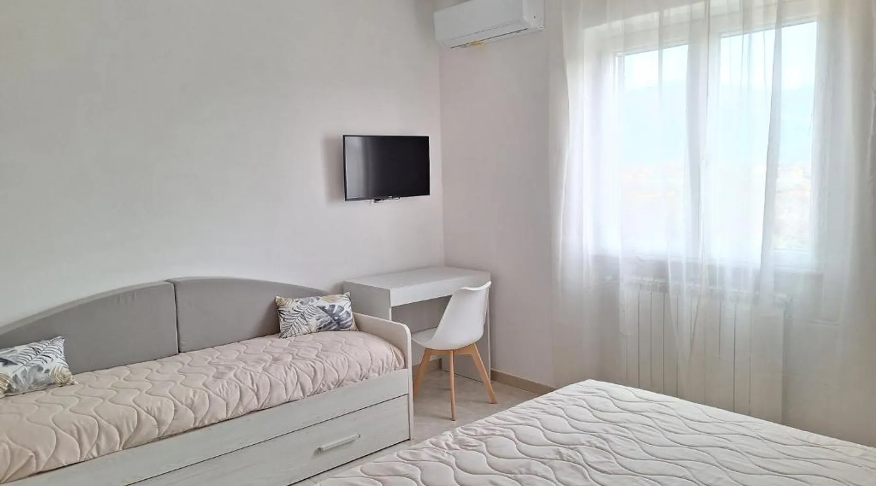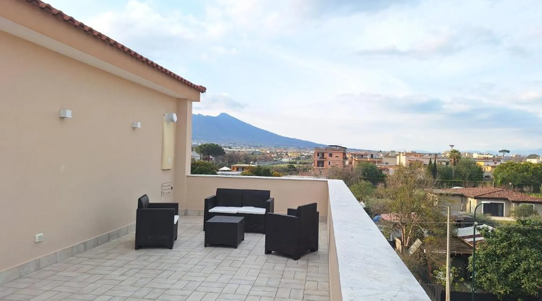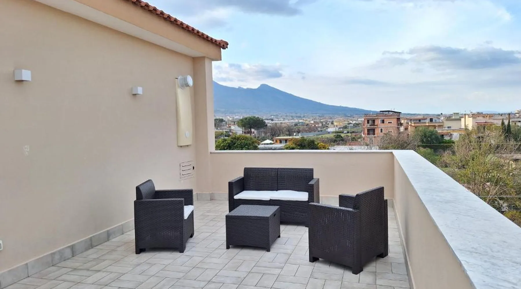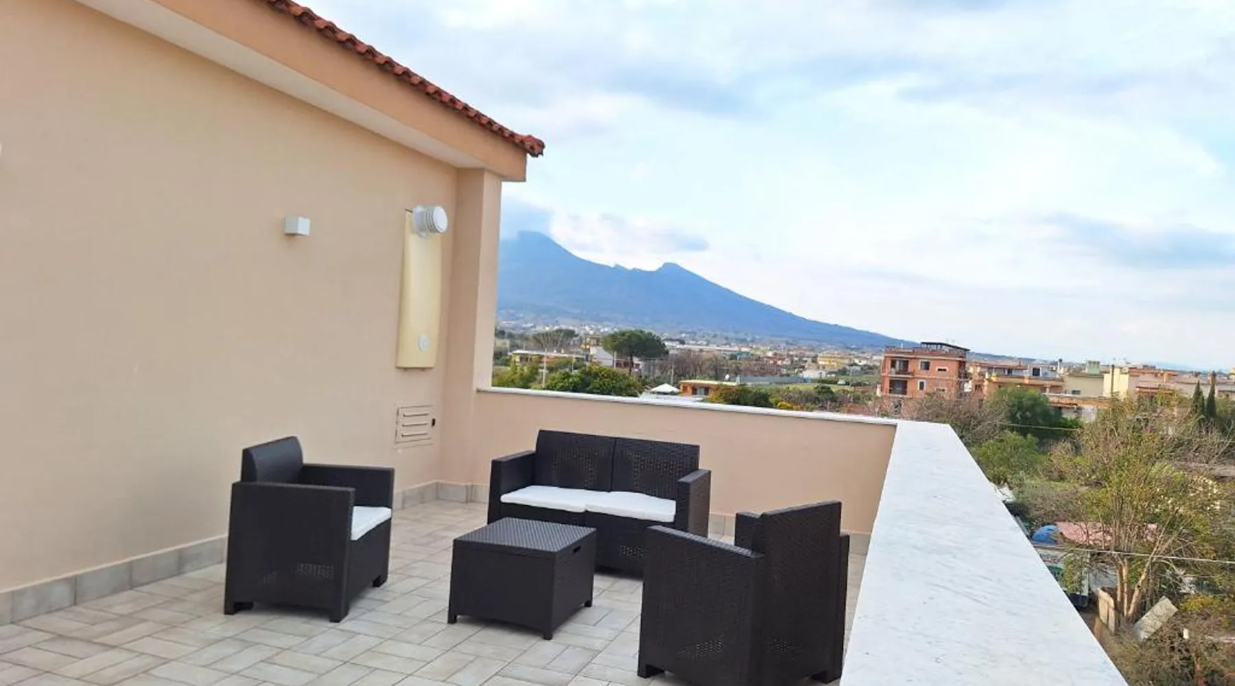Modern Comforts: Mimì Luxury Apartment in Pompei offers a terrace and free WiFi. The apartment includes air-conditioning, a kitchenette, washing machine, and a work desk. Convenient Facilities: Guests enjoy free on-site private parking, a dining area, and a seating space. The terrace provides garden and landmark views, complemented by a sofa bed. Prime Location: Located 19 mi from Naples International Airport, the apartment is near Vesuvius (9.9 mi), Ercolano Ruins (12 mi), and Villa Rufolo (20 mi). Boating is available in the surroundings. Highly rated for its terrace and host. This apartment is consisted of of 1 living room, 1 separate bedroom and 1 bathroom with a shower and free toiletries. In the well-equipped kitchen, guests will find a stovetop, a refrigerator, kitchenware and an oven. The air-conditioned apartment offers a flat-screen TV, a washing machine, a tea and coffee maker, a seating area as well as garden views. The unit offers 4 beds.